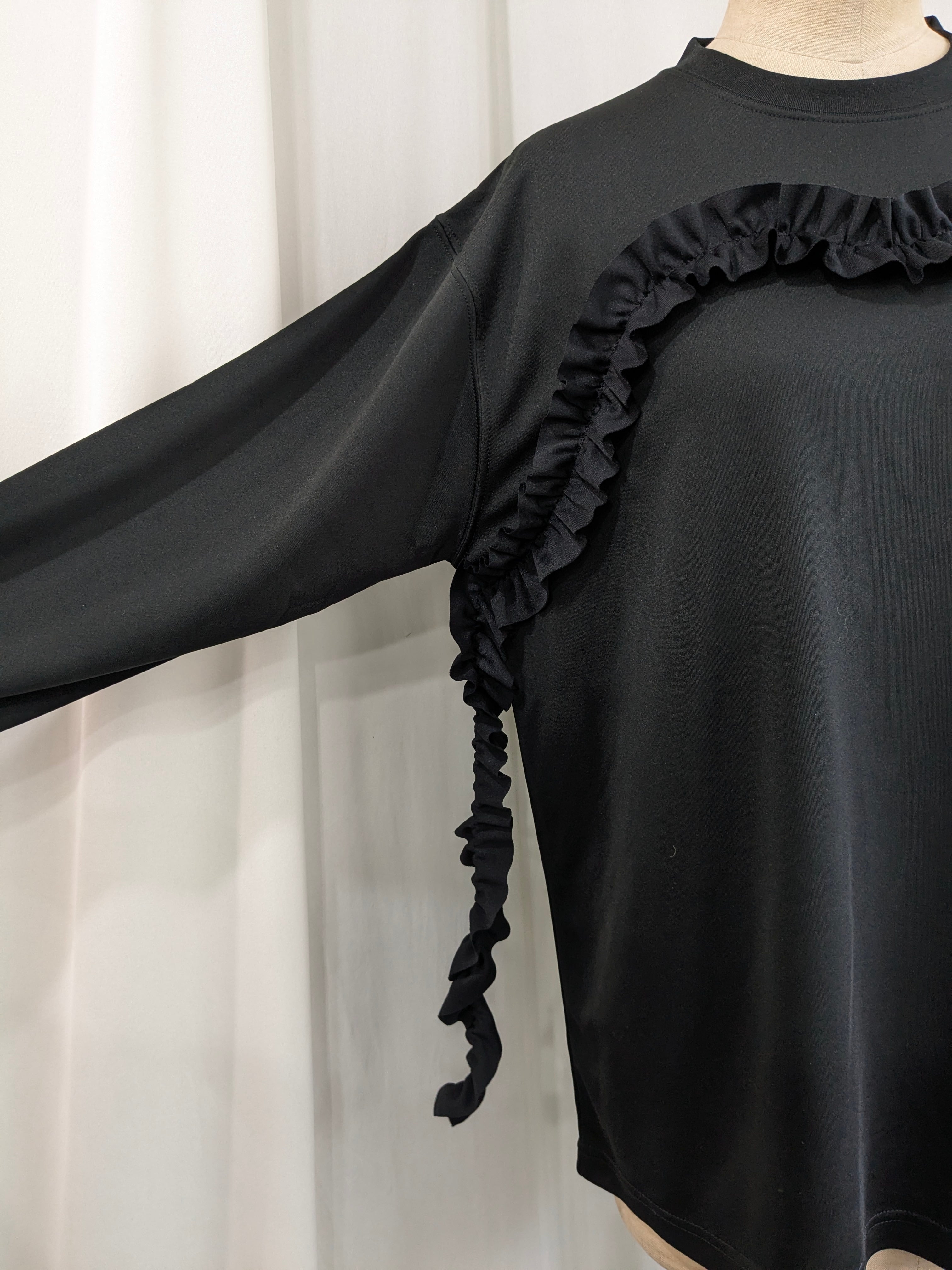 »デザインー速乾性が有り軽いドライタッチ素材のロンティにフリルをあしらった1枚。