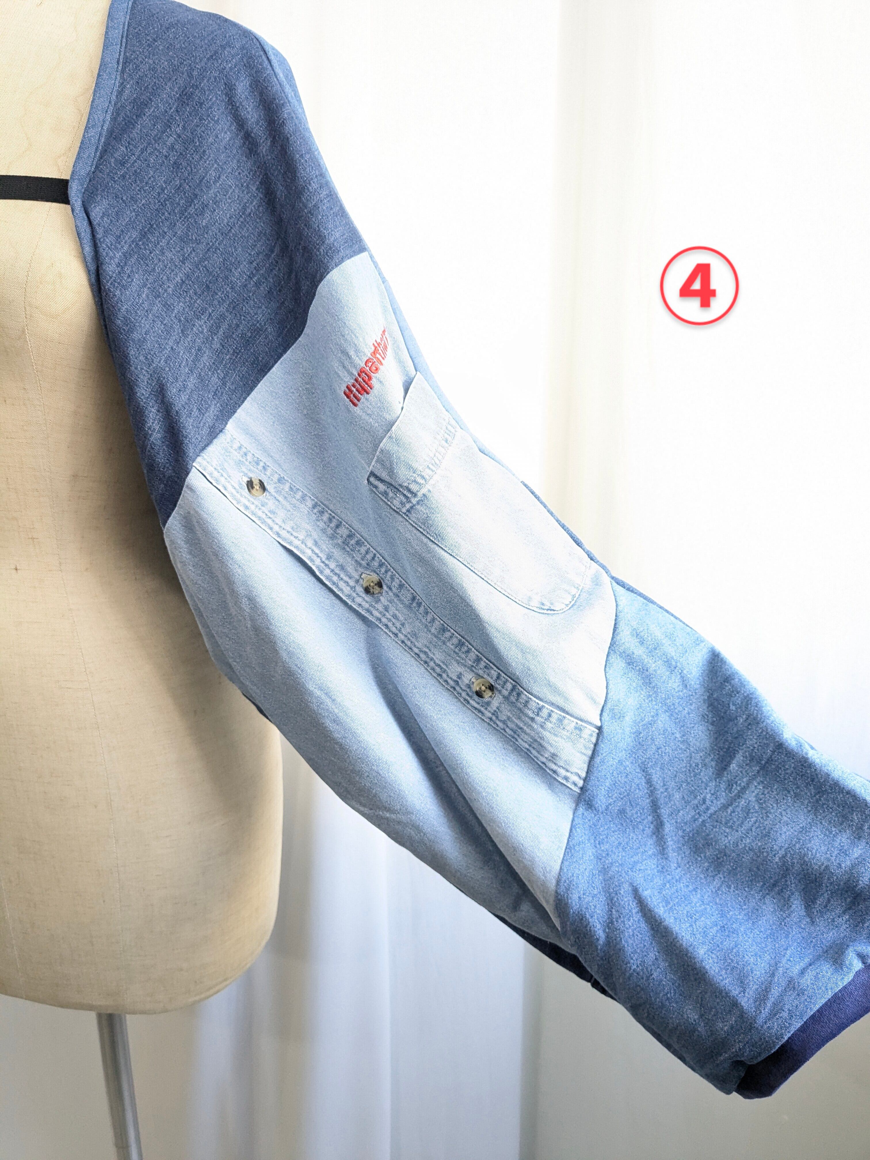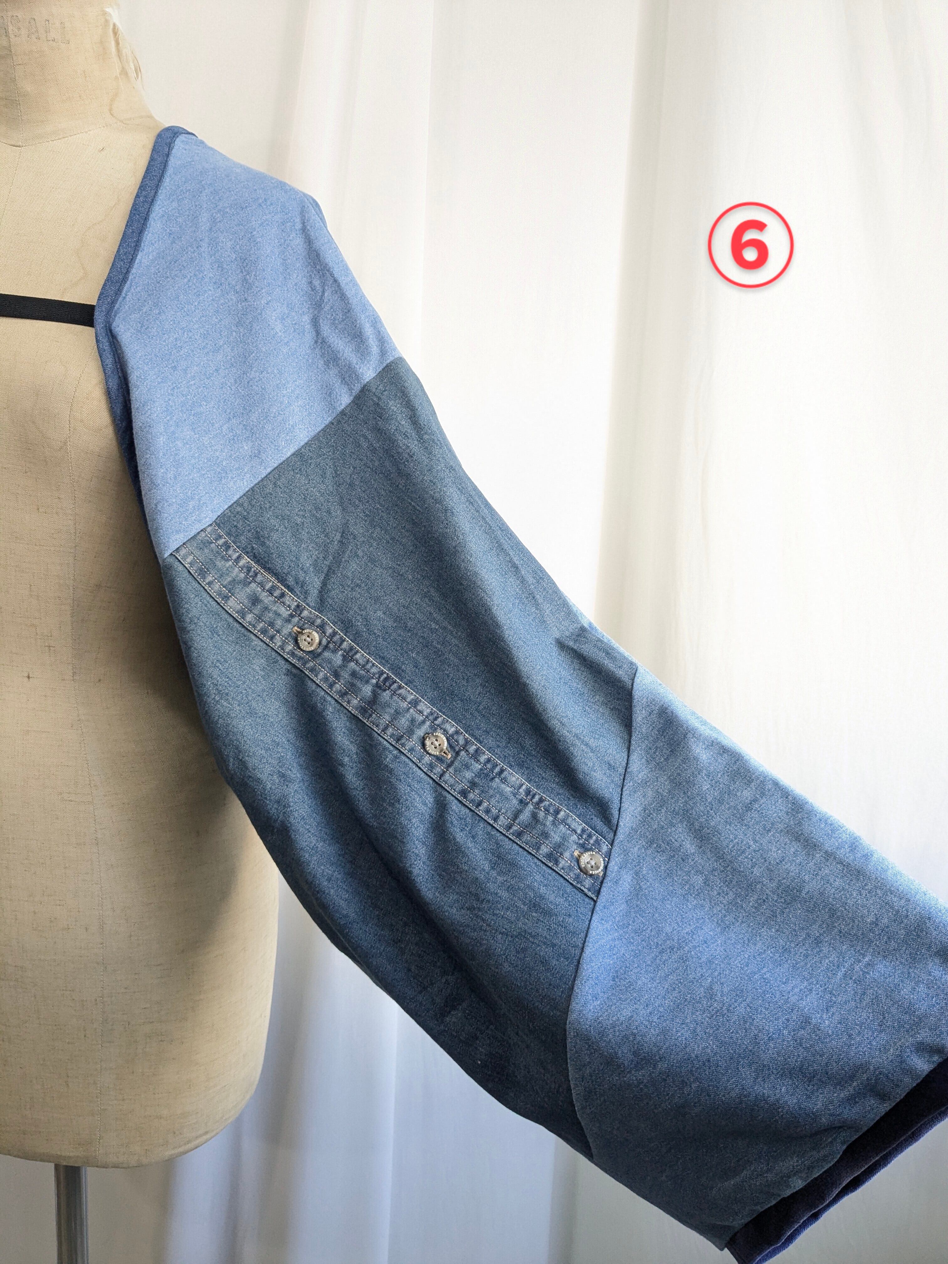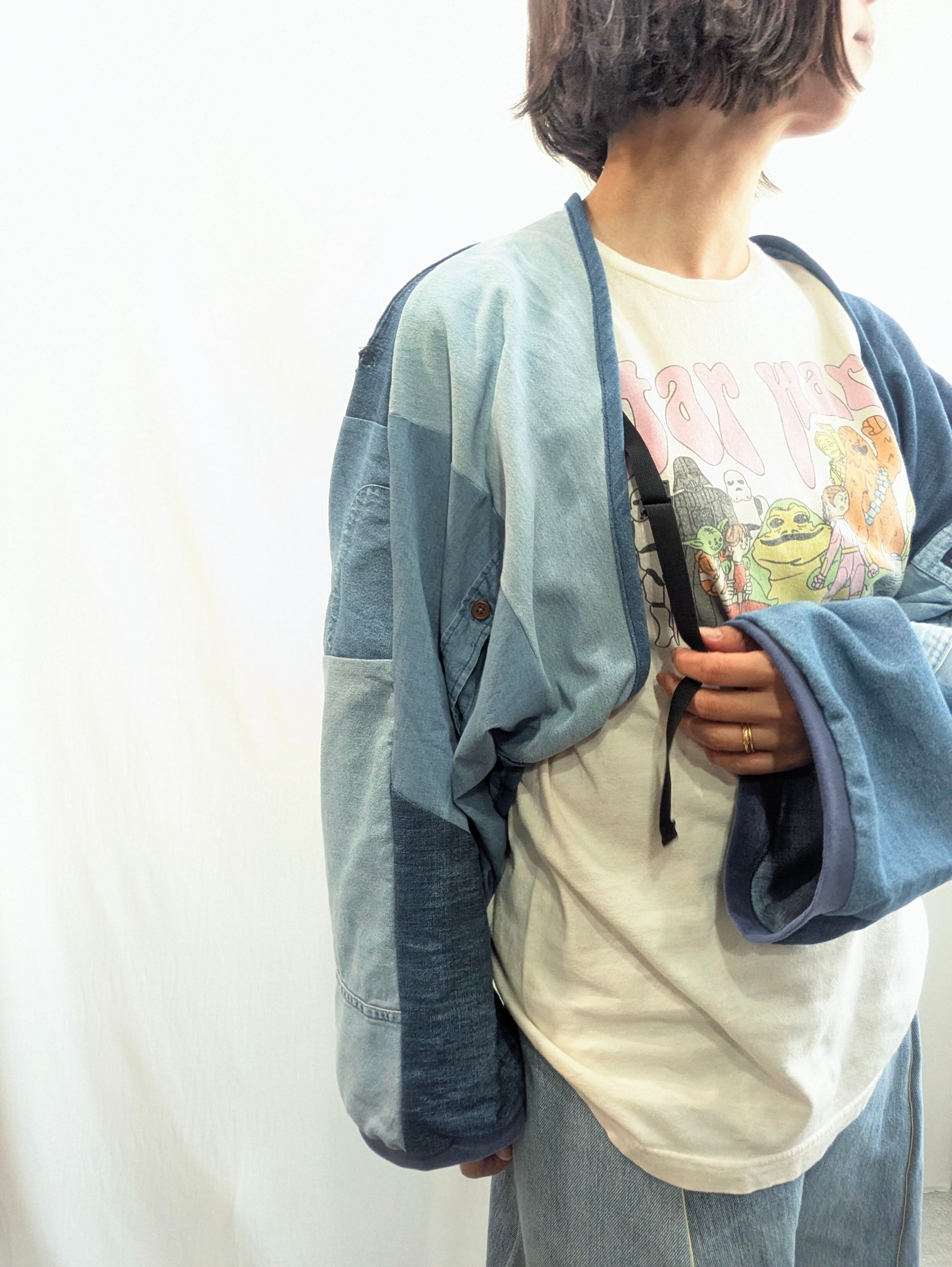 »デザインー古着のダンガリーシャツをリメイクしボレロに仕立てた一点物のアイテムです。古着素材を使用している為、色味や細かいディテールには個体差がありますが、サイズ感は統一されていますのでお好きなディテールをお選びください。袖部分にはたっぷりとゆとりを持たせており。たぽっとしたシルエットが愛らしいアイテムです。