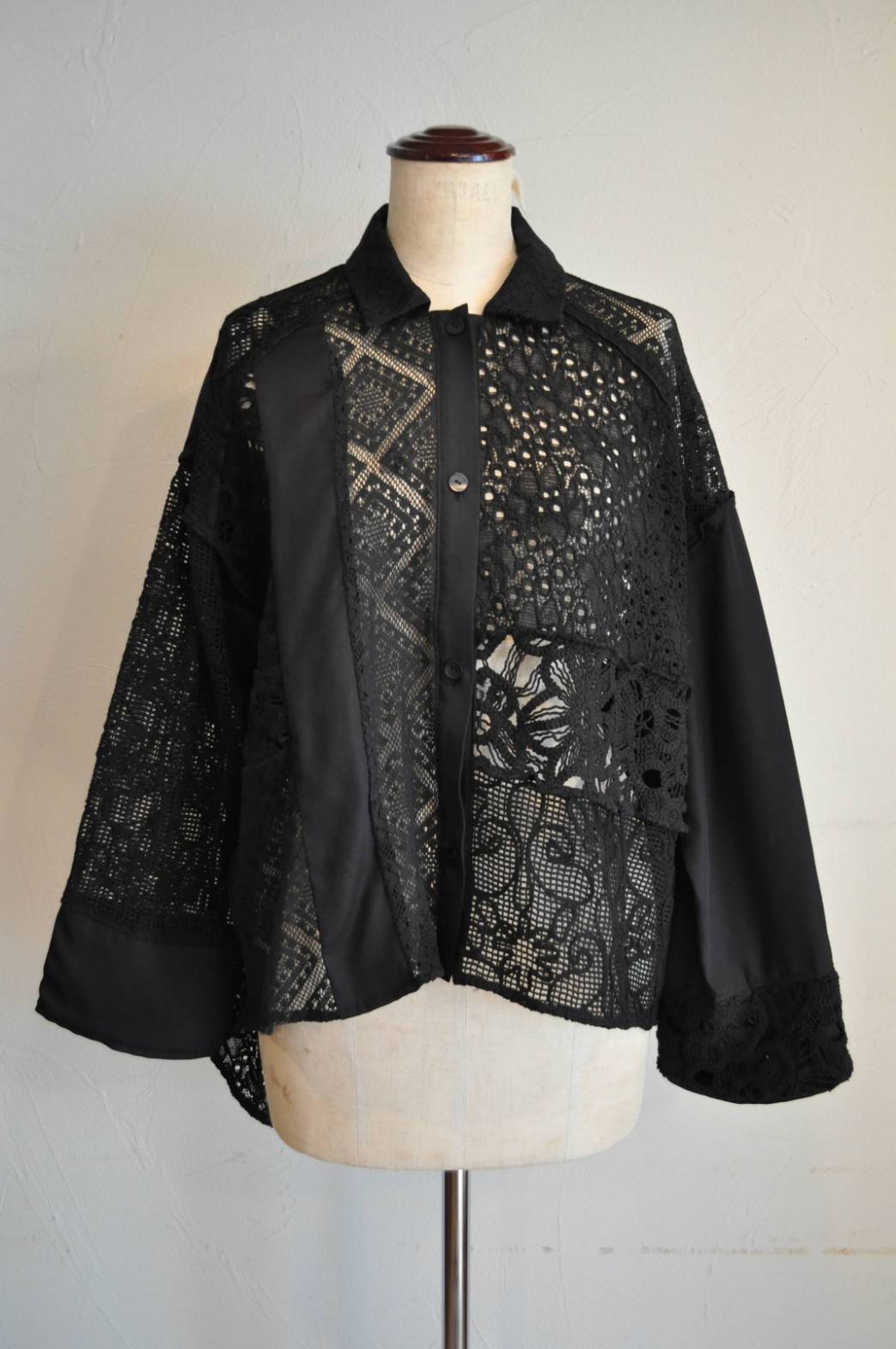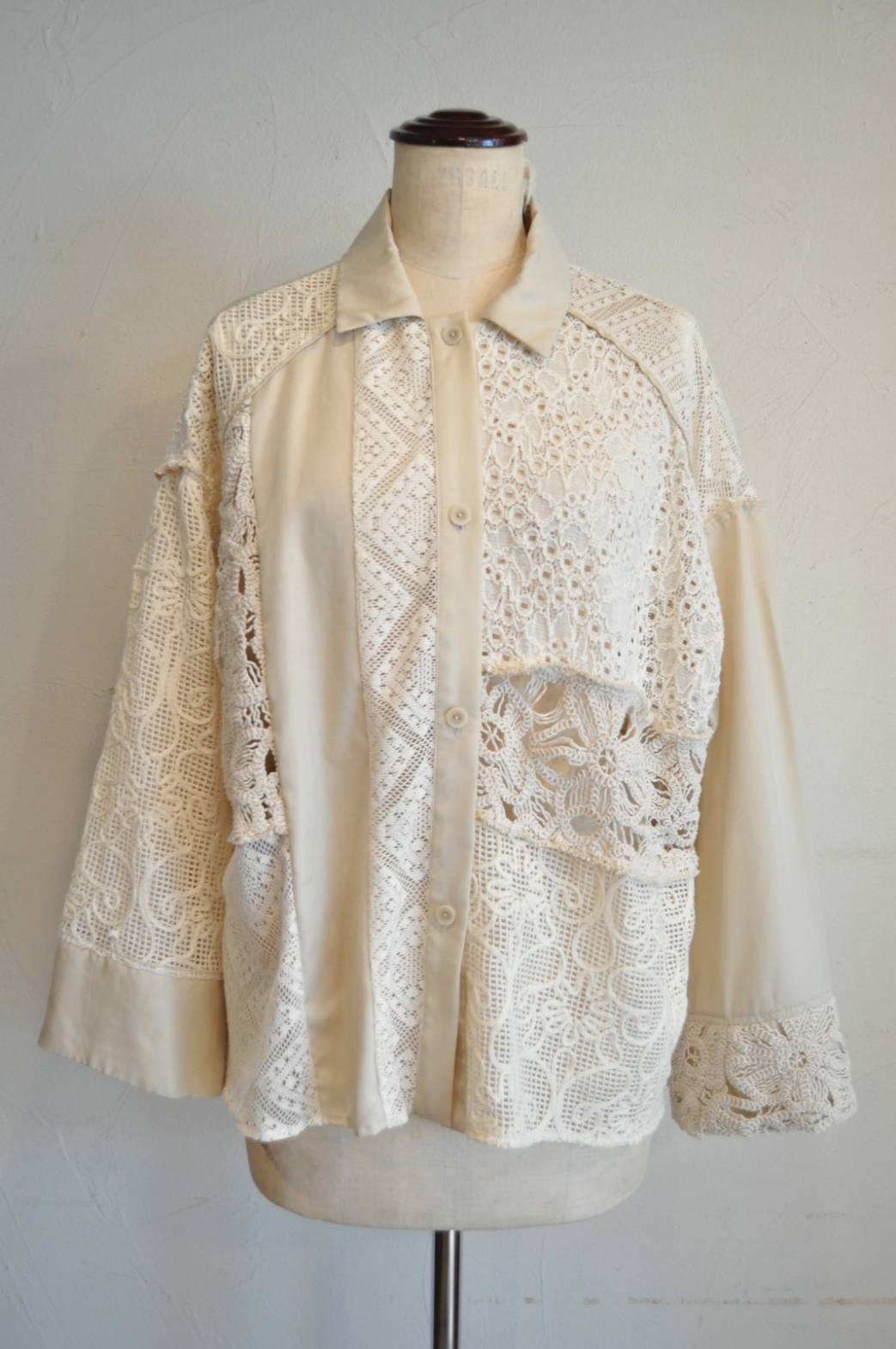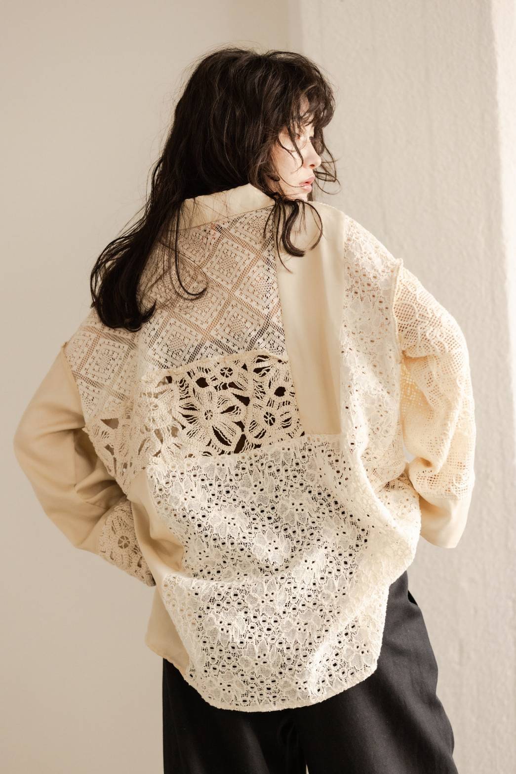 »デザインー異なる厚みや絵柄のレースとサテンを丁寧にパッチワークした特別な1着。繊細で美しいディテールが際立ち、ヴィンテージライクな雰囲気がスタイルを格上げしてくれます。