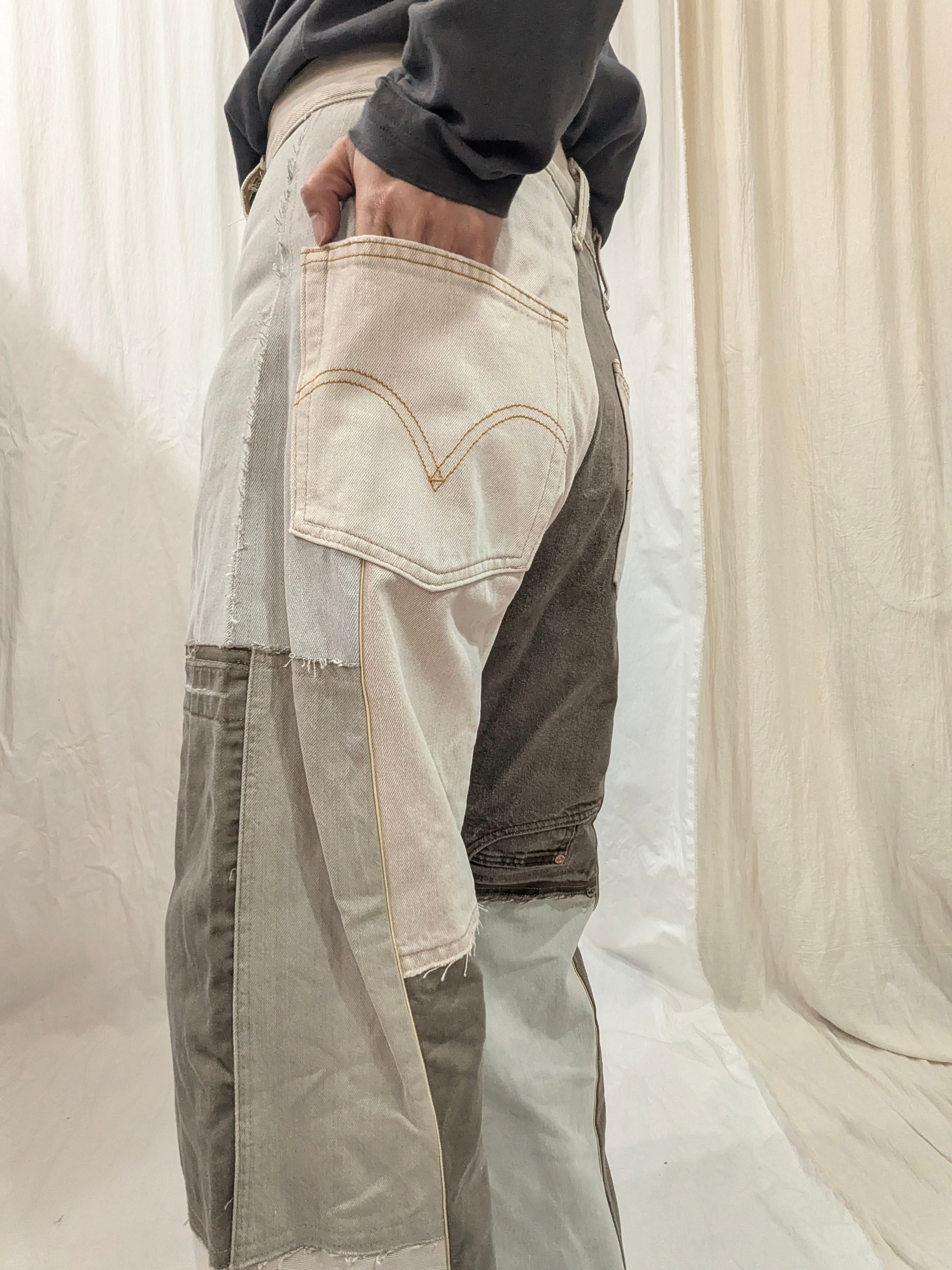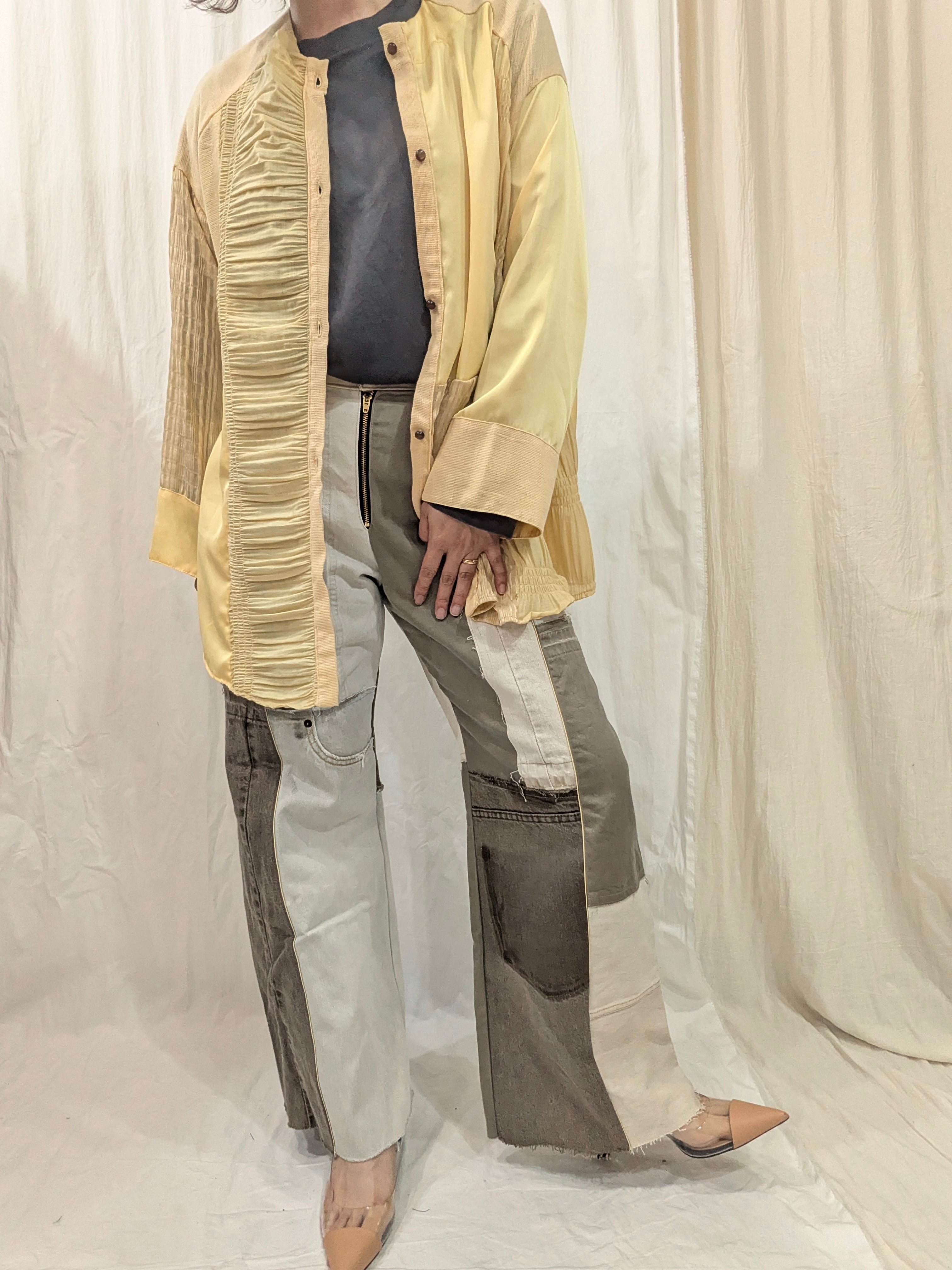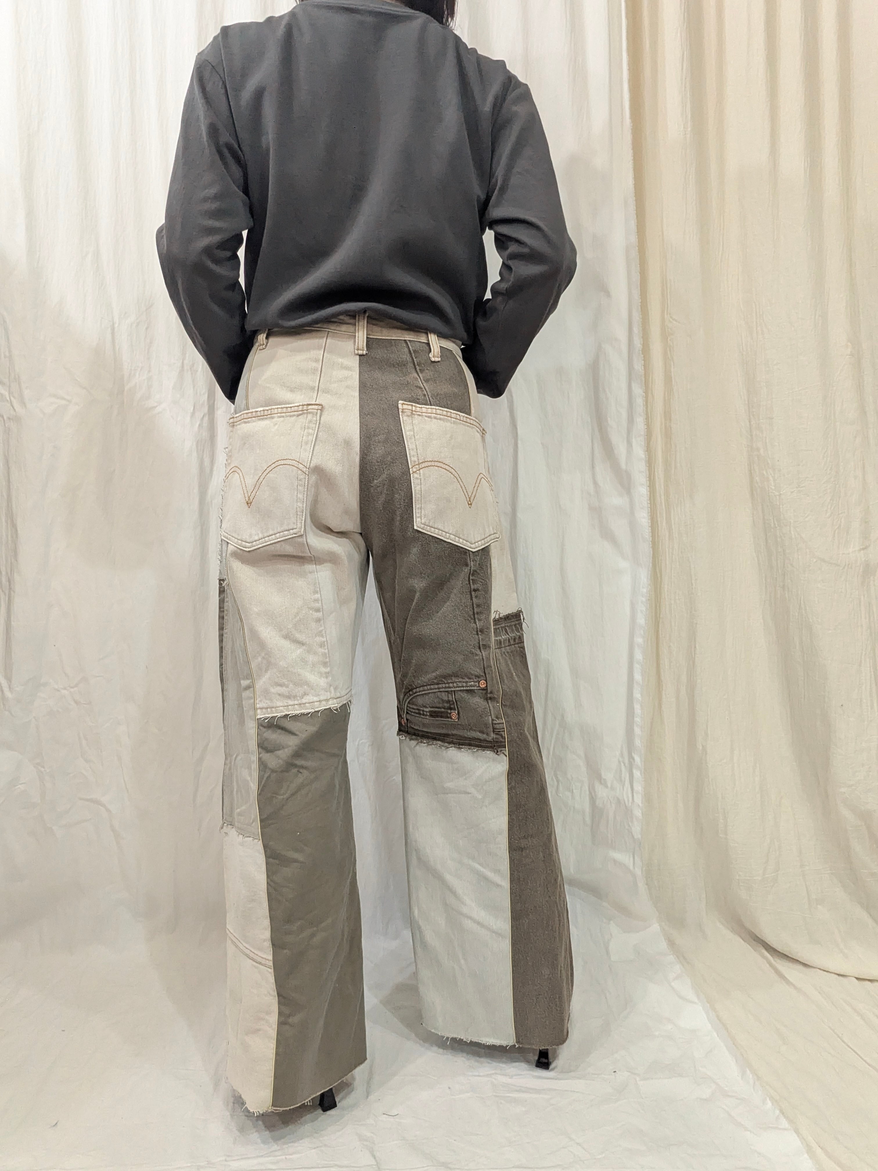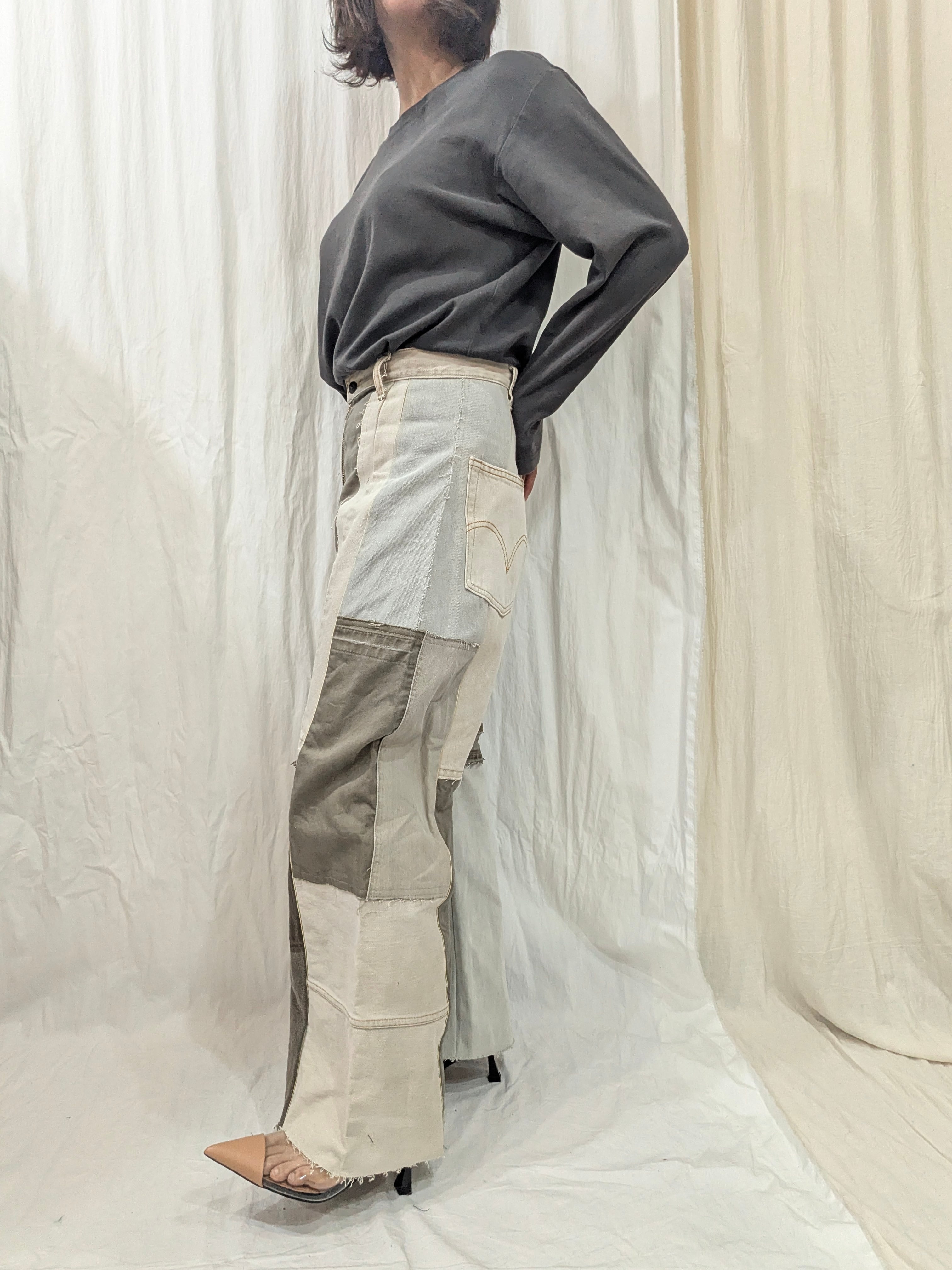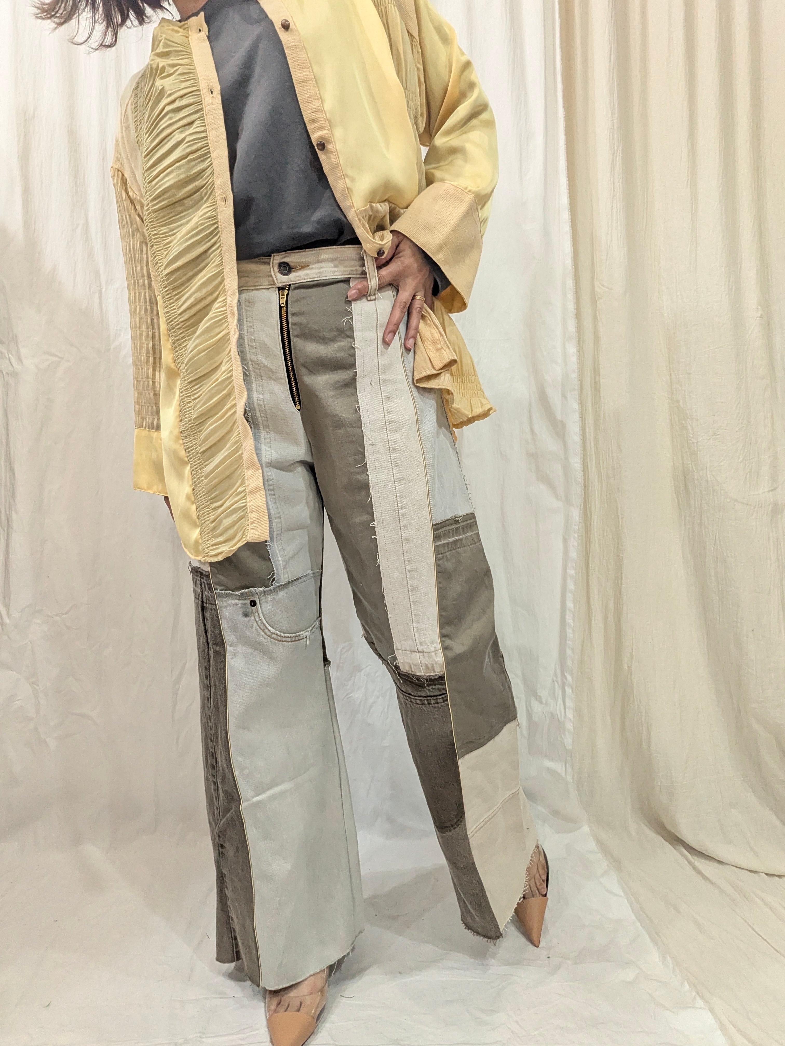 パッチワークの具合は一本一本異なりますので世界で1本のパンツです♪