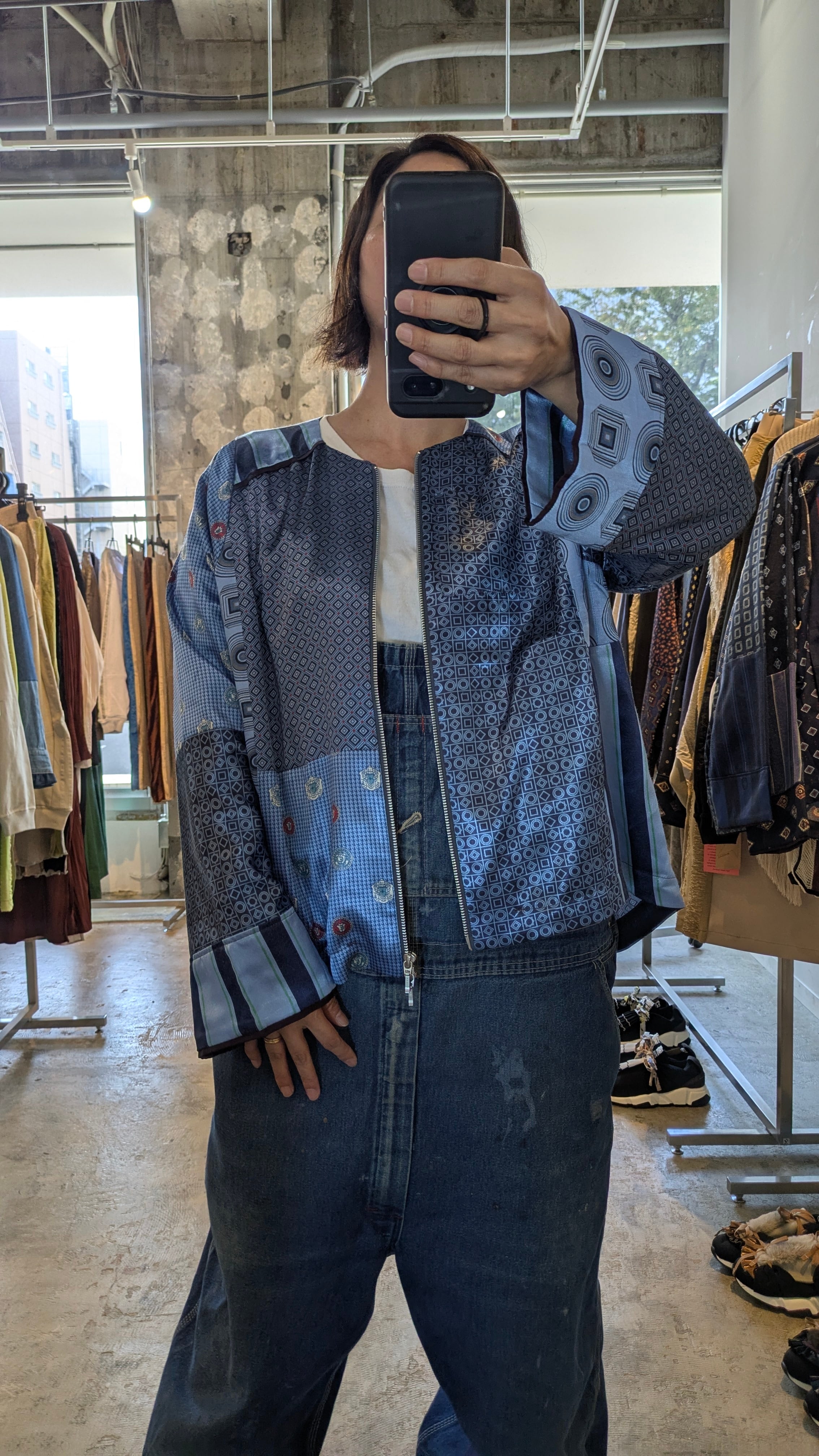 »デザインーヨーロッパの古着パジャマを集め、ブルーのみで再構築したジップジャケットです。