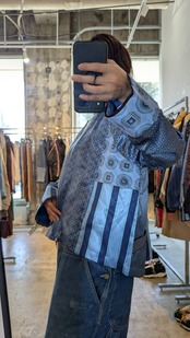 »デザインーヨーロッパの古着パジャマを集め、ブルーのみで再構築したジップジャケットです。