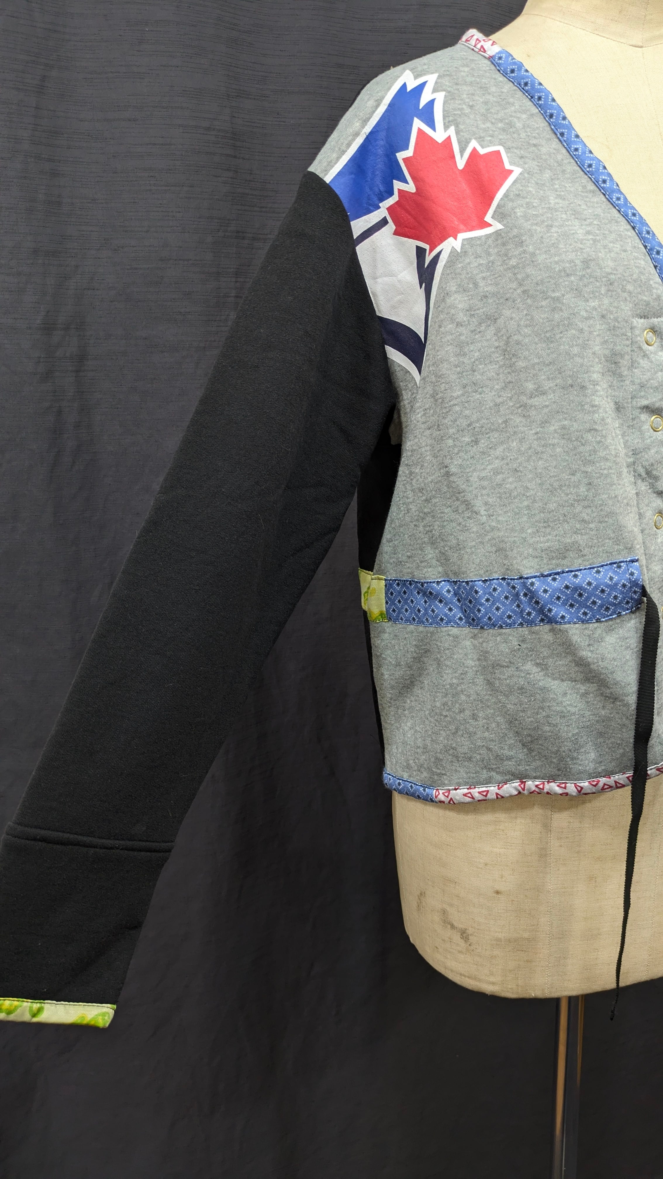 »デザインー古着のスウェットで再構築したカーディガンタイプのスウェットです。