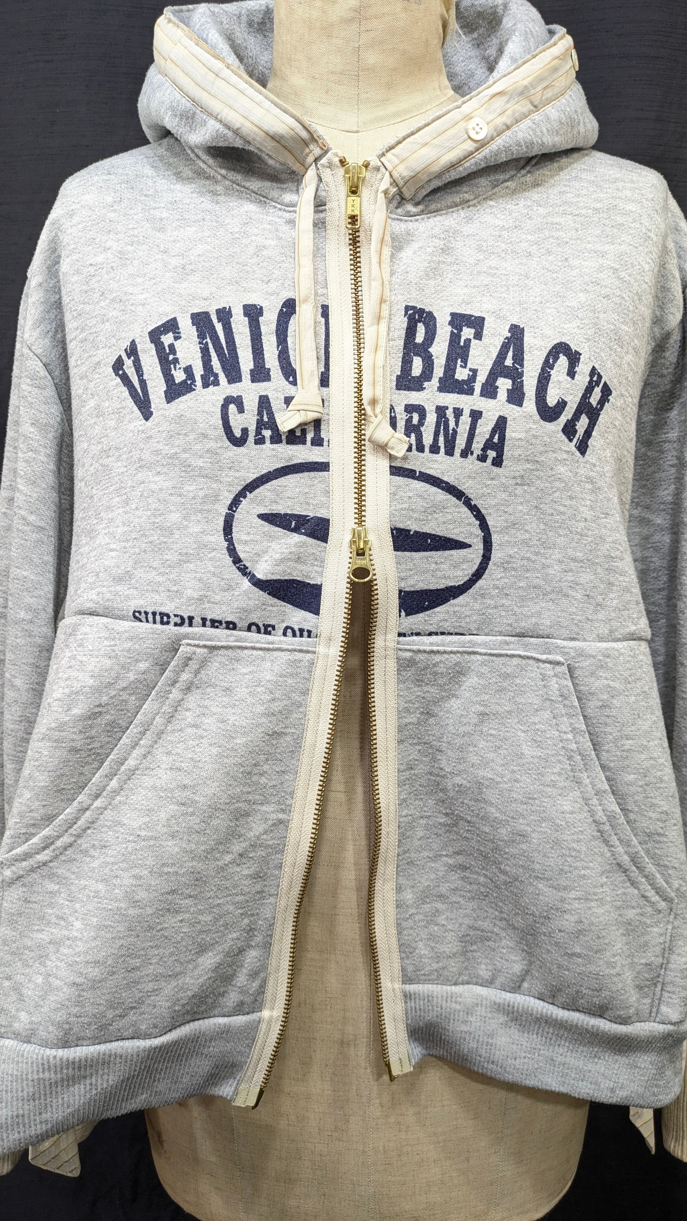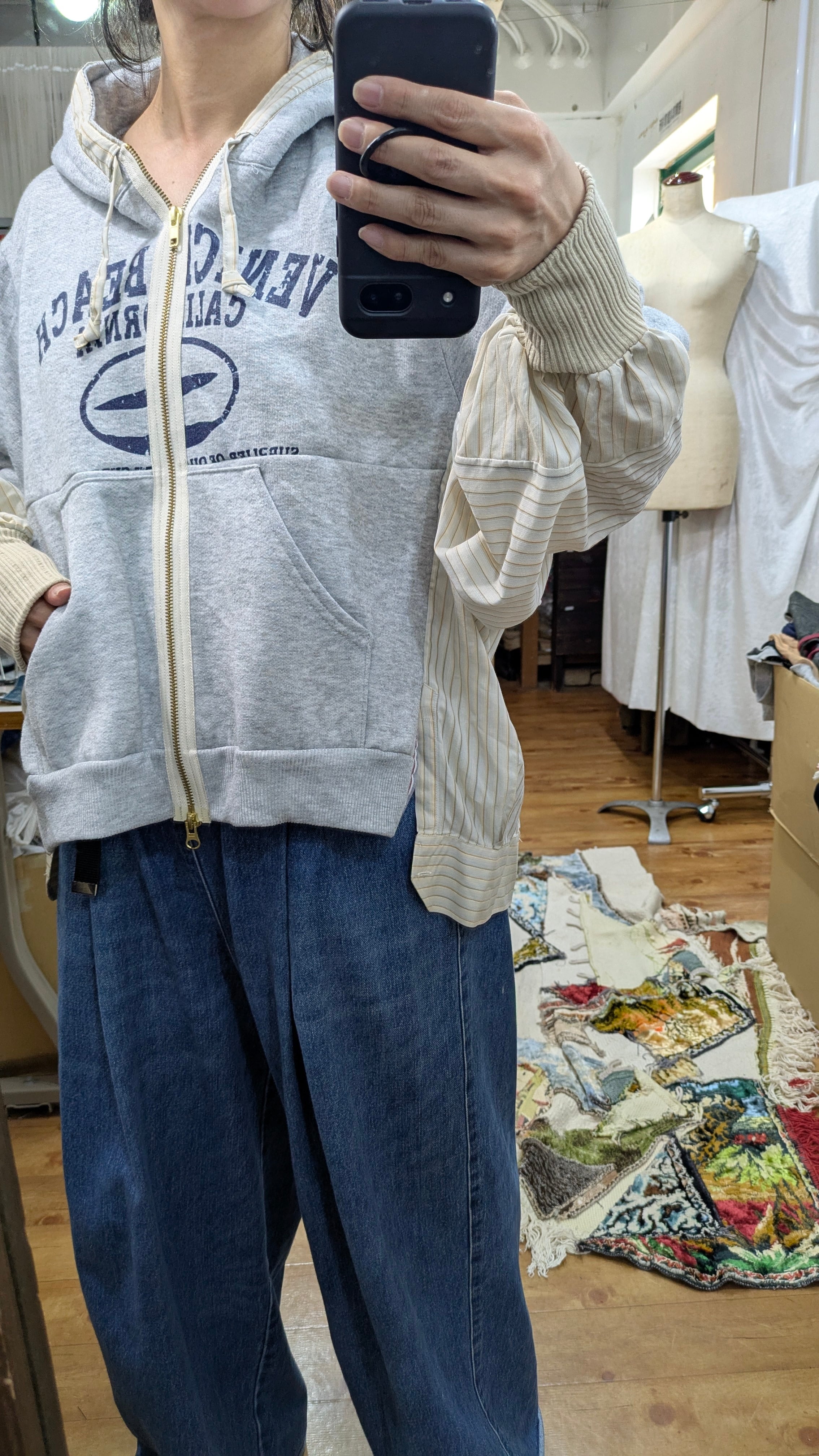 »デザインー古着のパーカーとシャツをドッキングしたジップパーカーです。