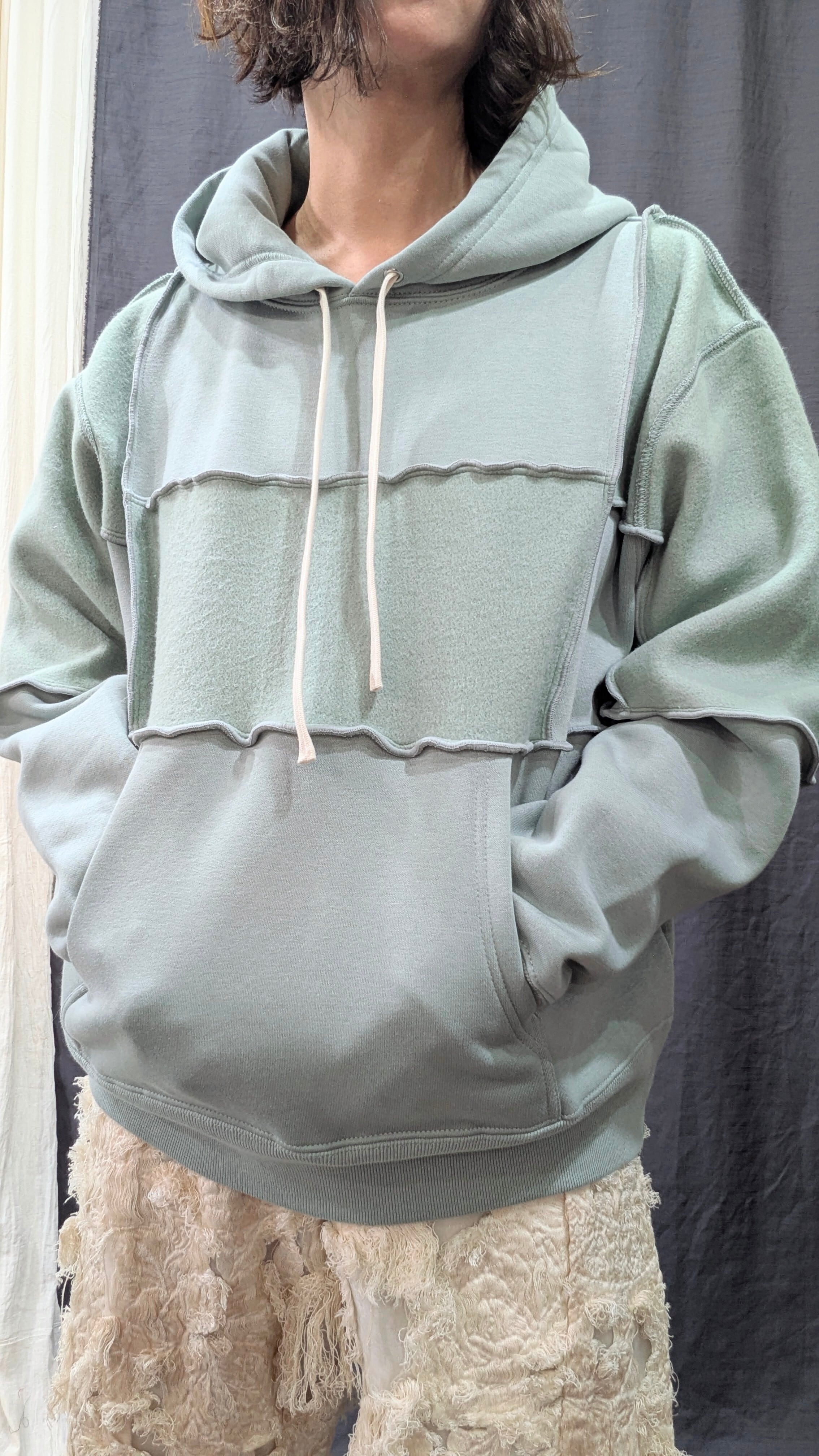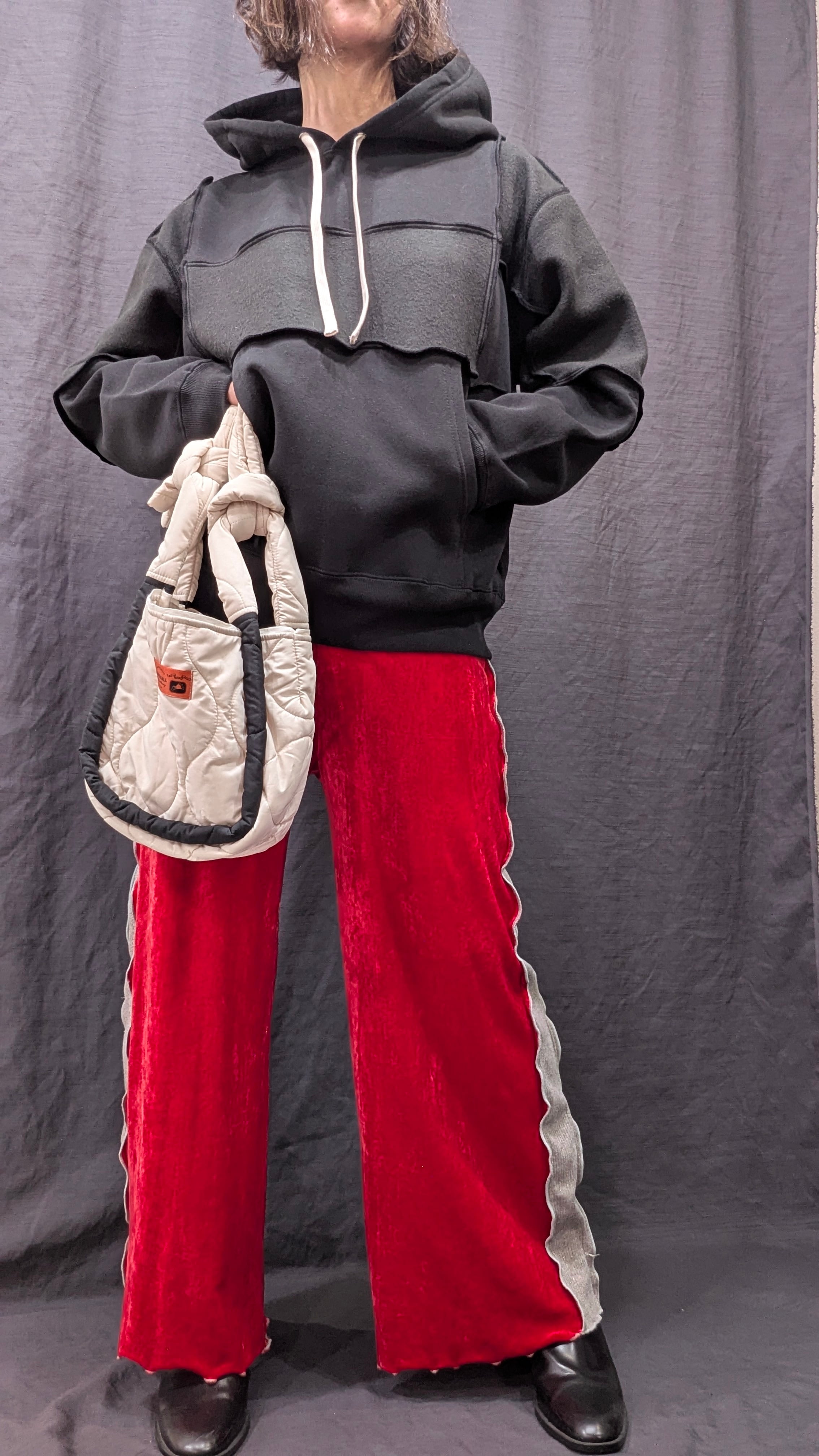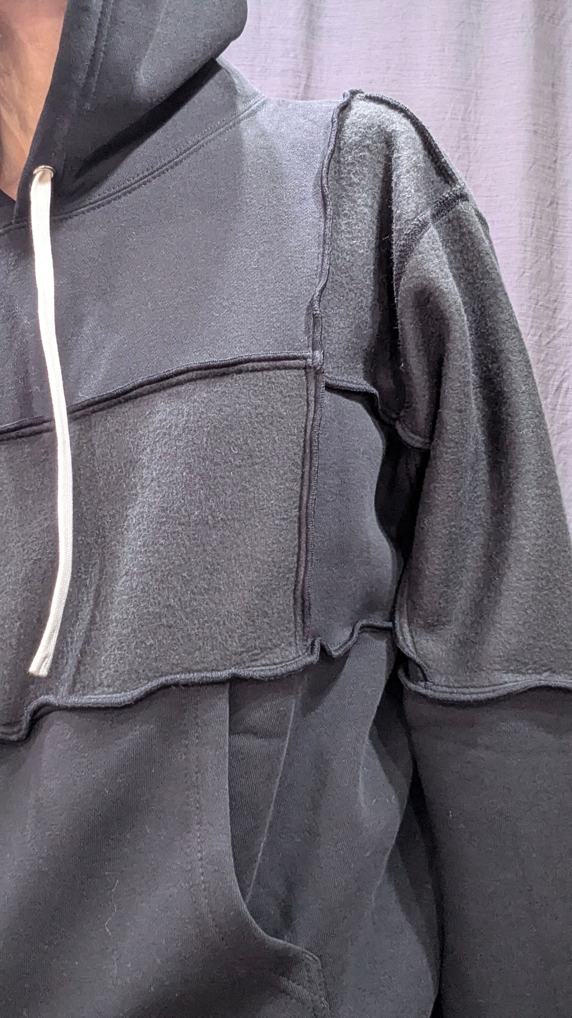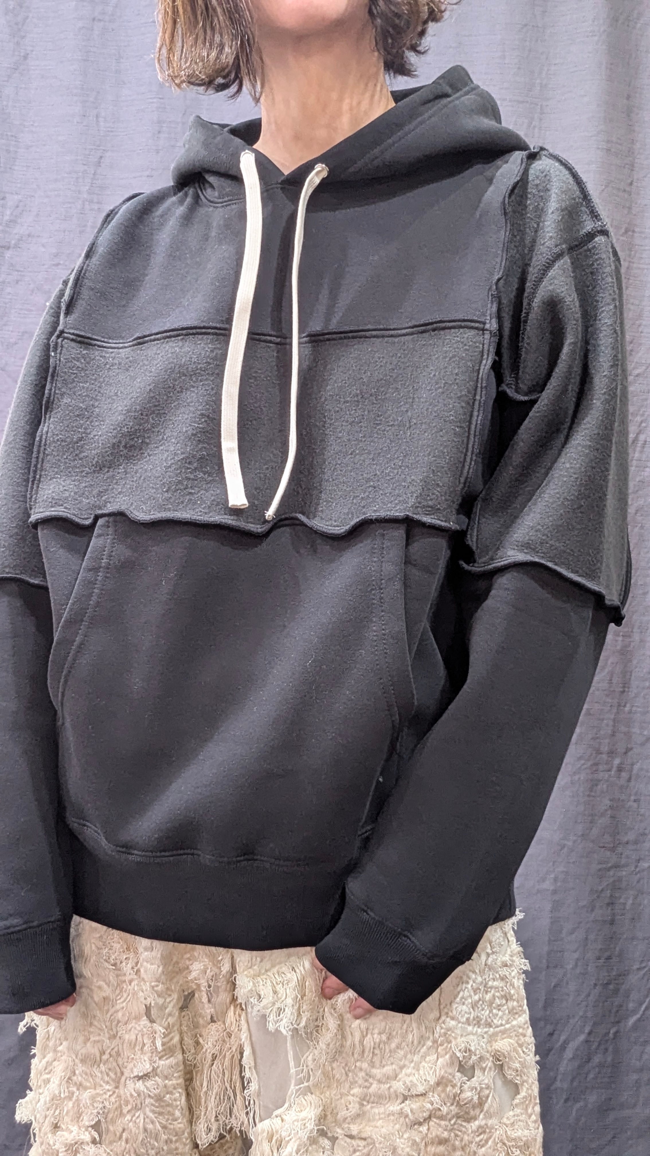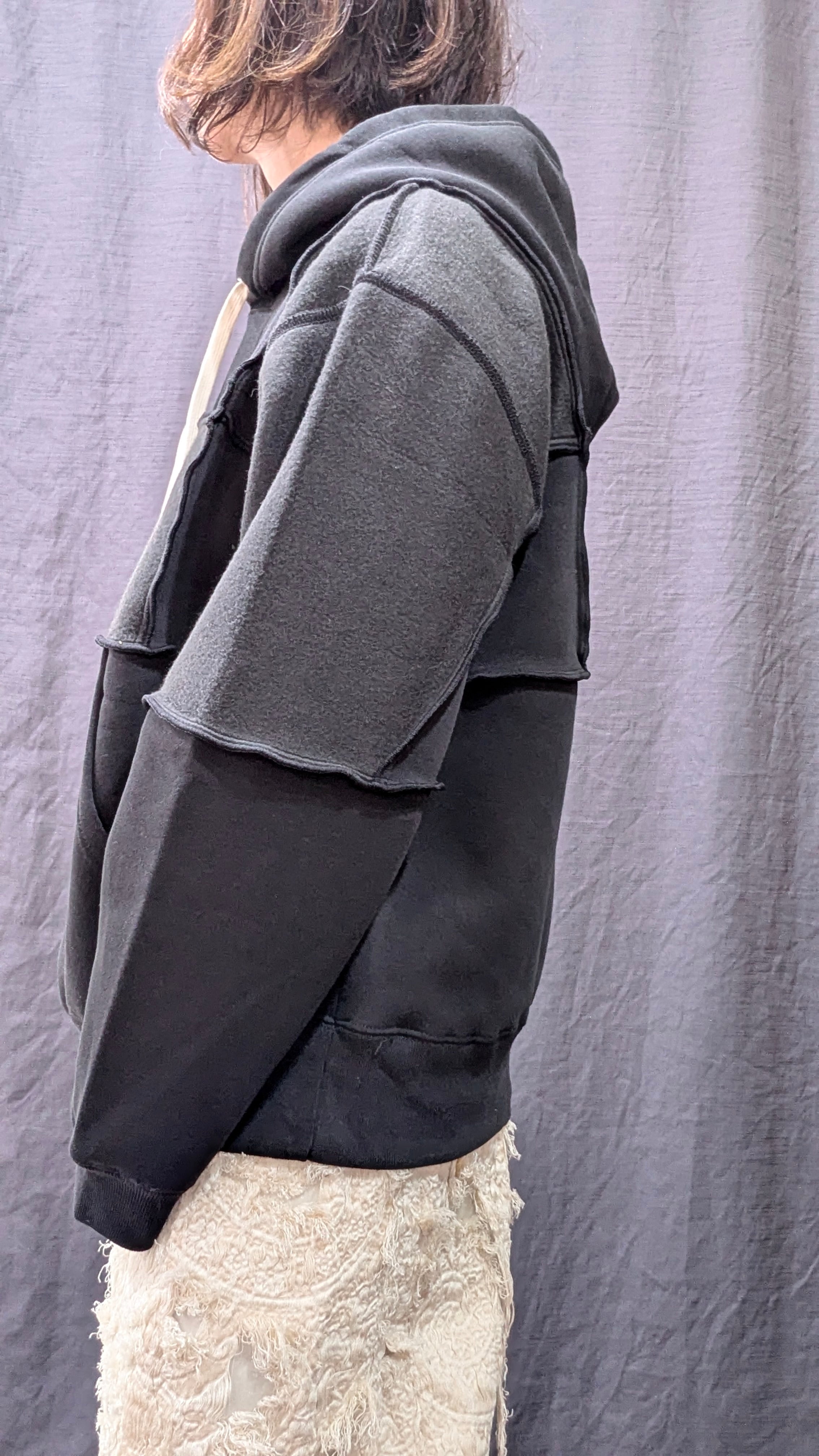 »デザインー裏起毛のパーカーをカットしてパネル化し、裏と表を交互に再構築したアイテムです。