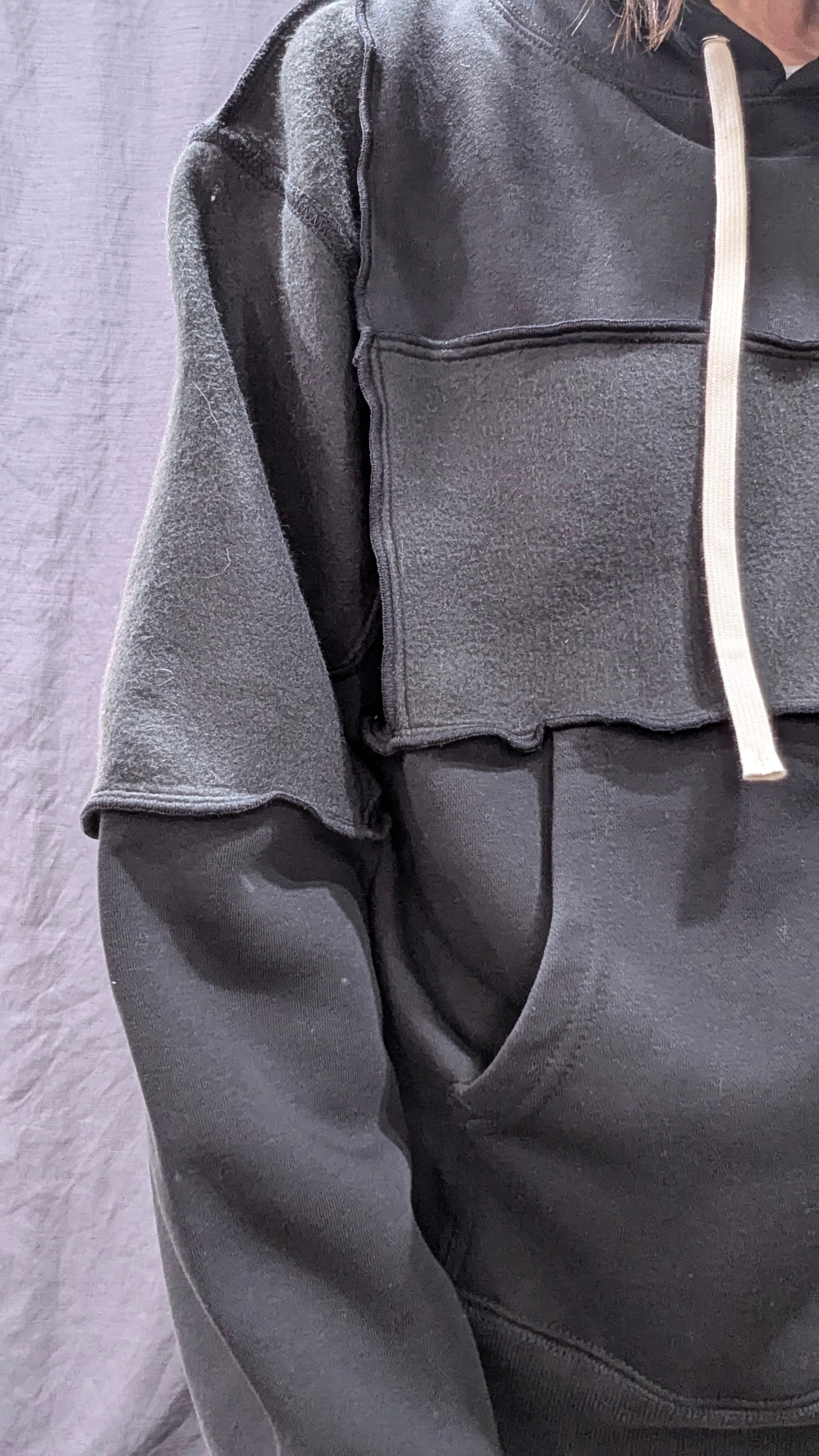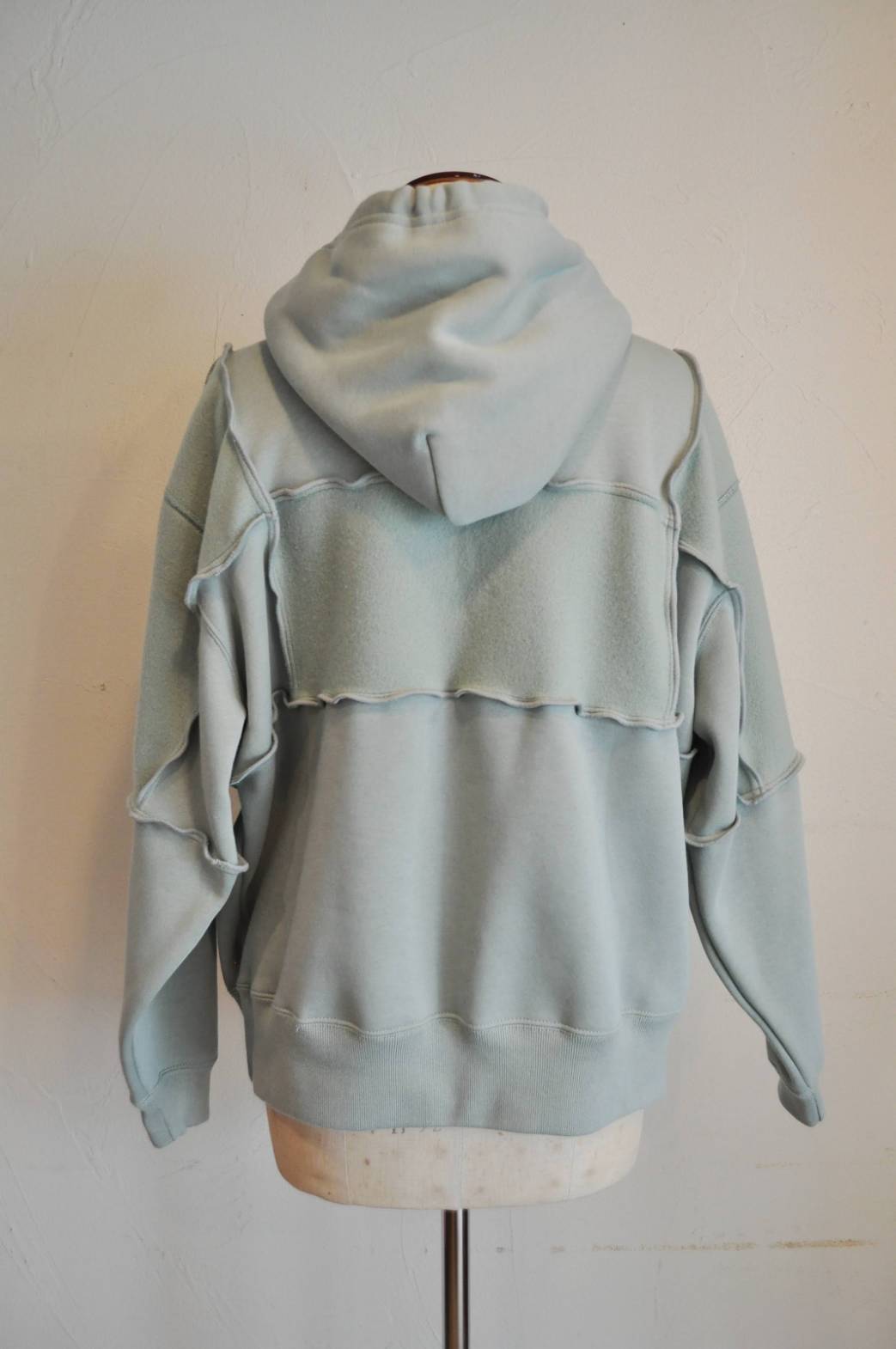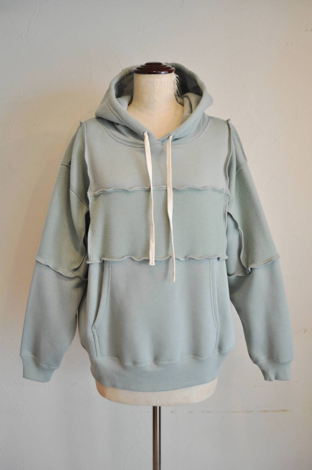 あえて表に縫い代を出し、ウェーブさせることで立体的になったパーカーです。