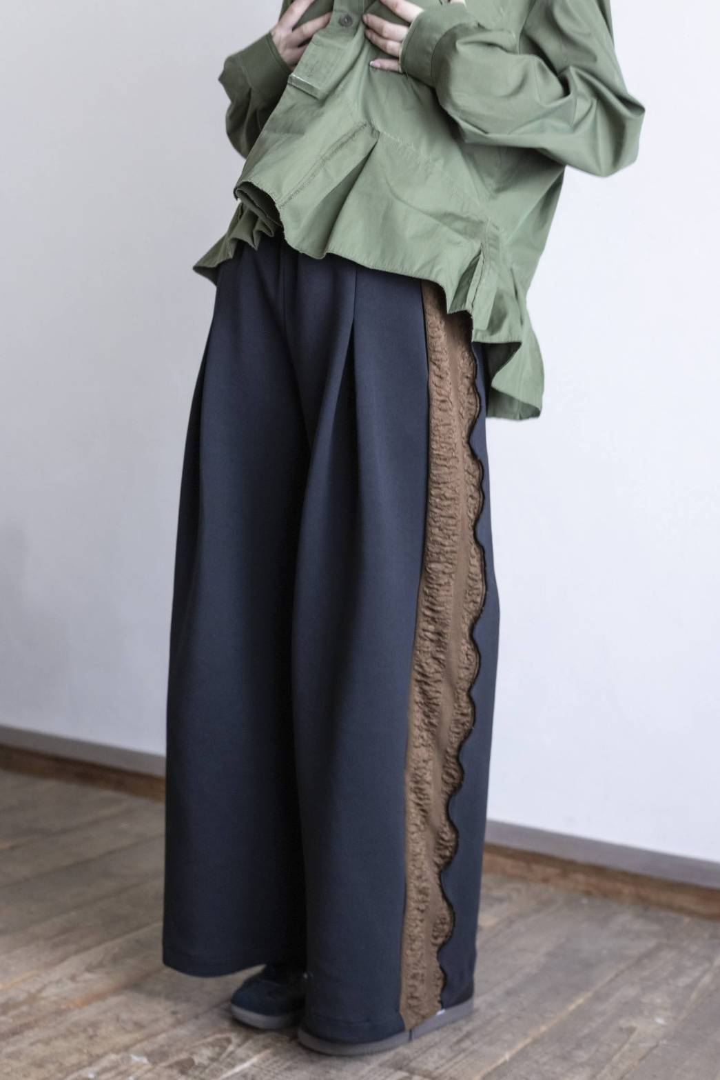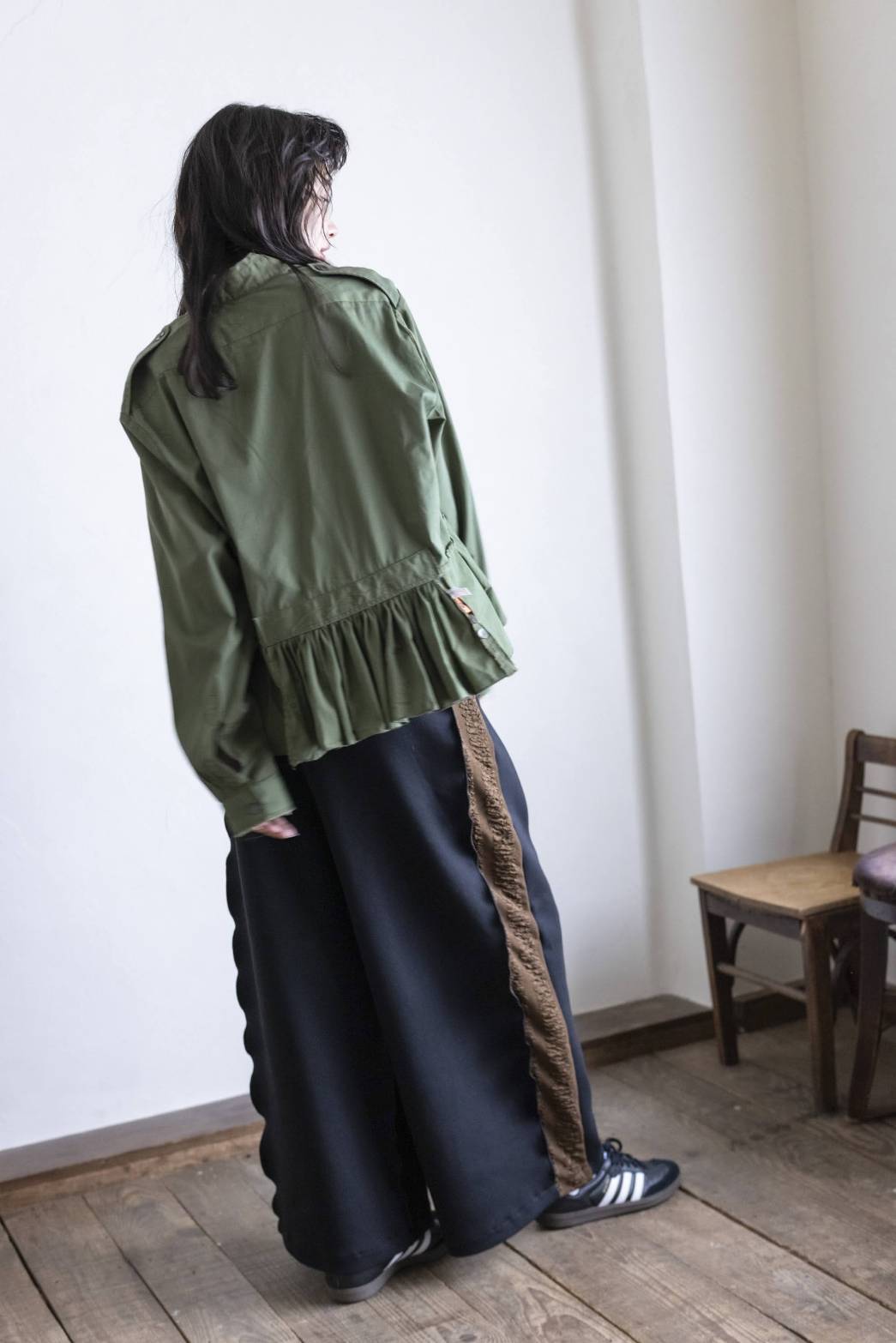 後のギャザー部分はスリット仕様になっている事で動きが生まれ、デザインのアクセントに。