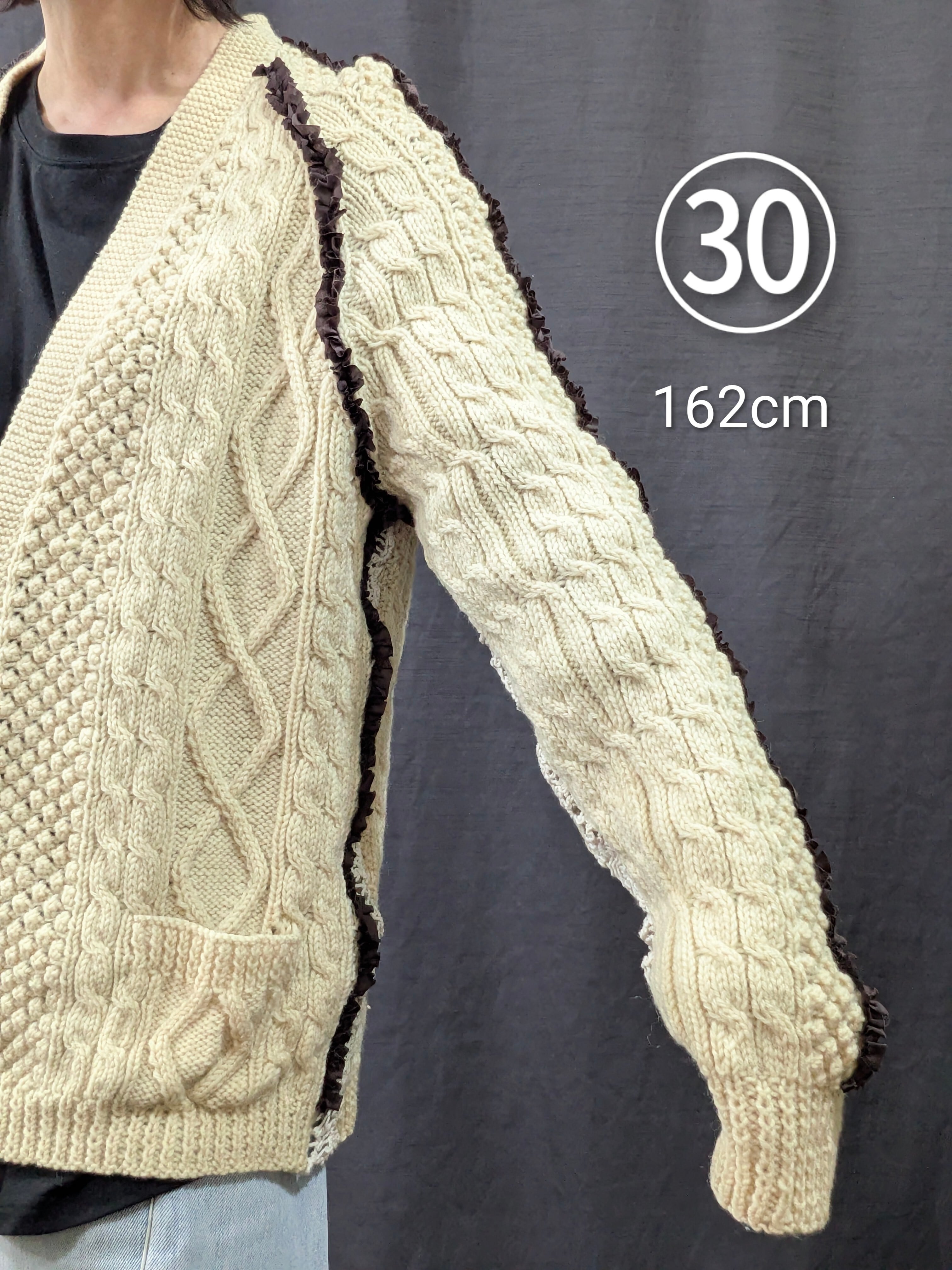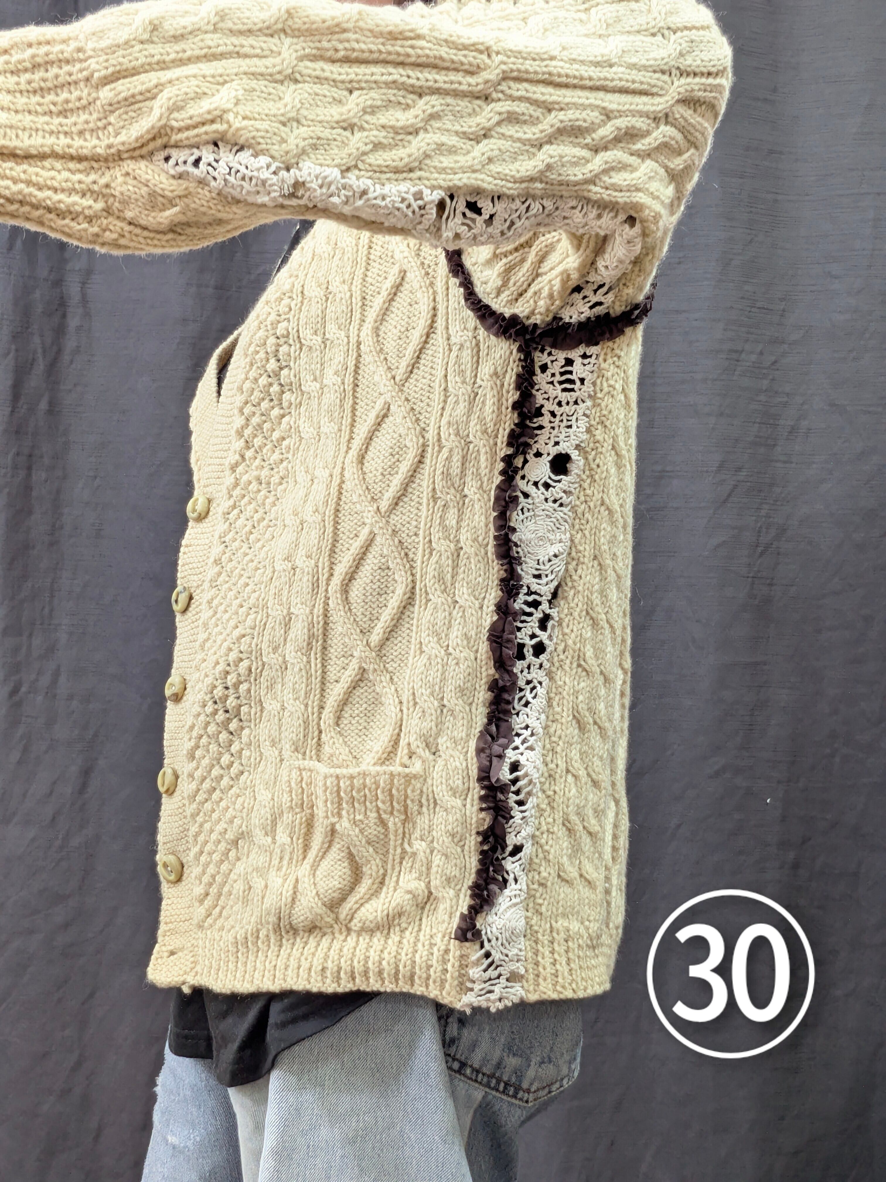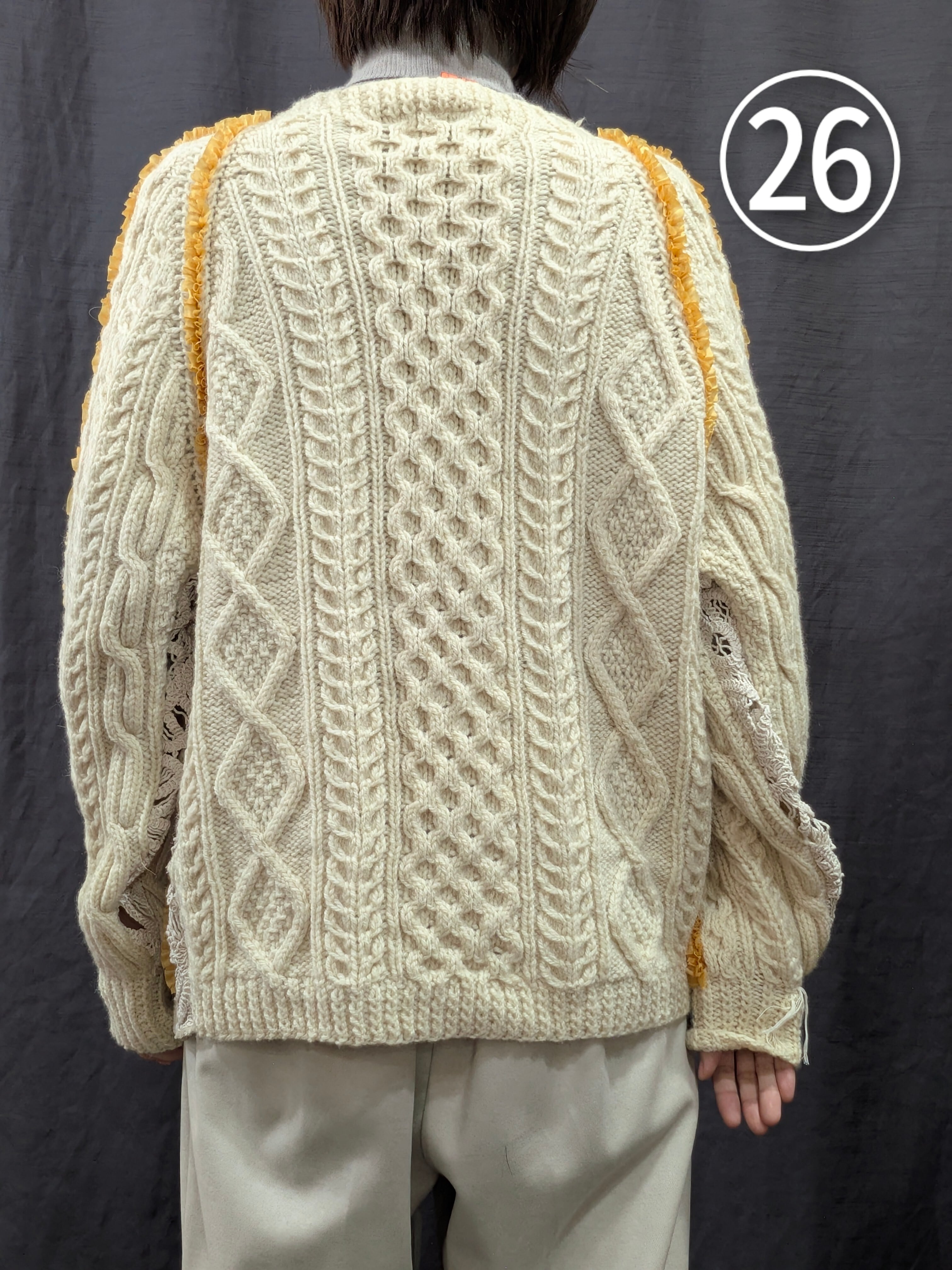 »デザインー古着のフィッシャーマンセーターのシームラインにフリルをあしらいました。
