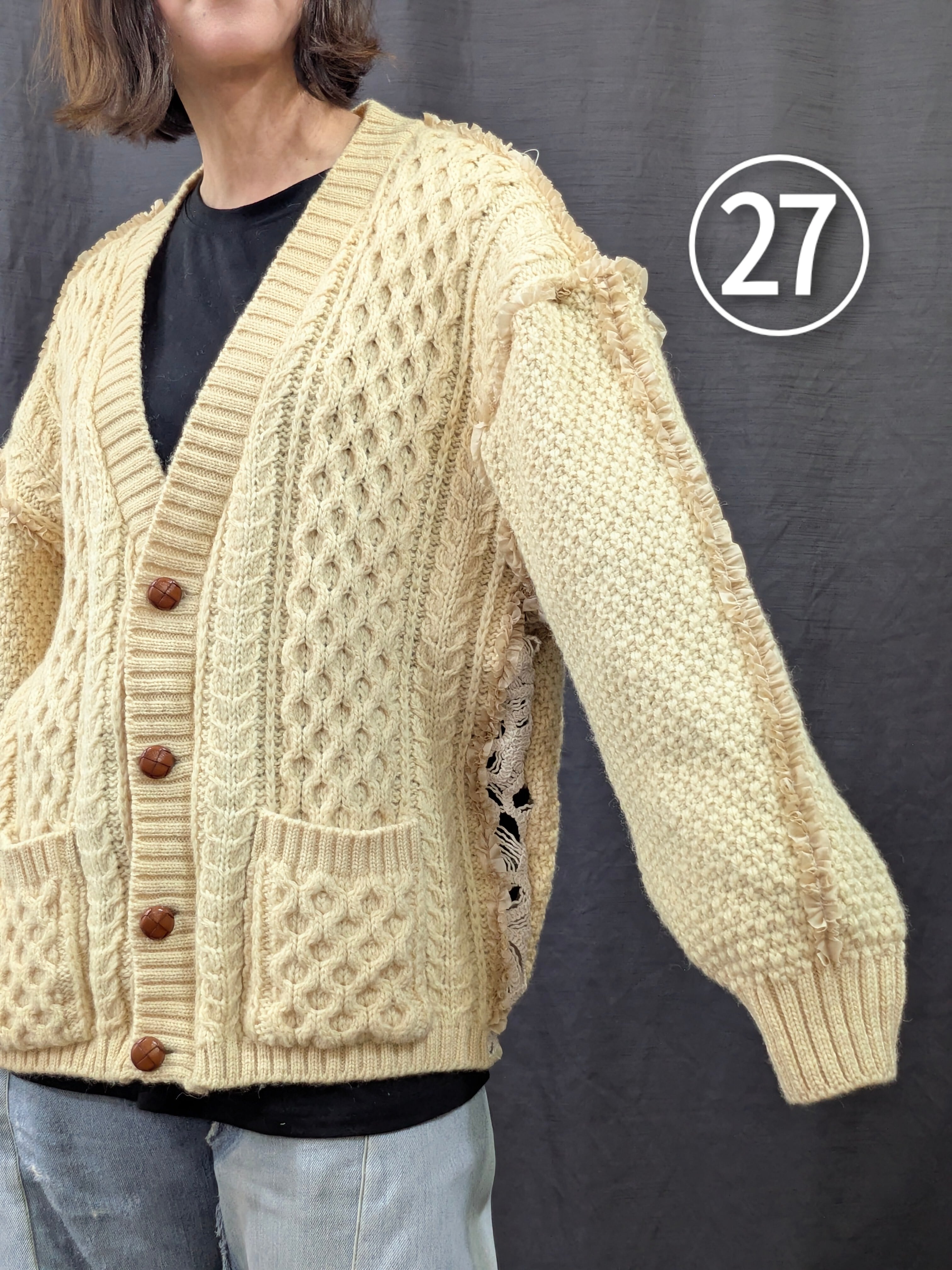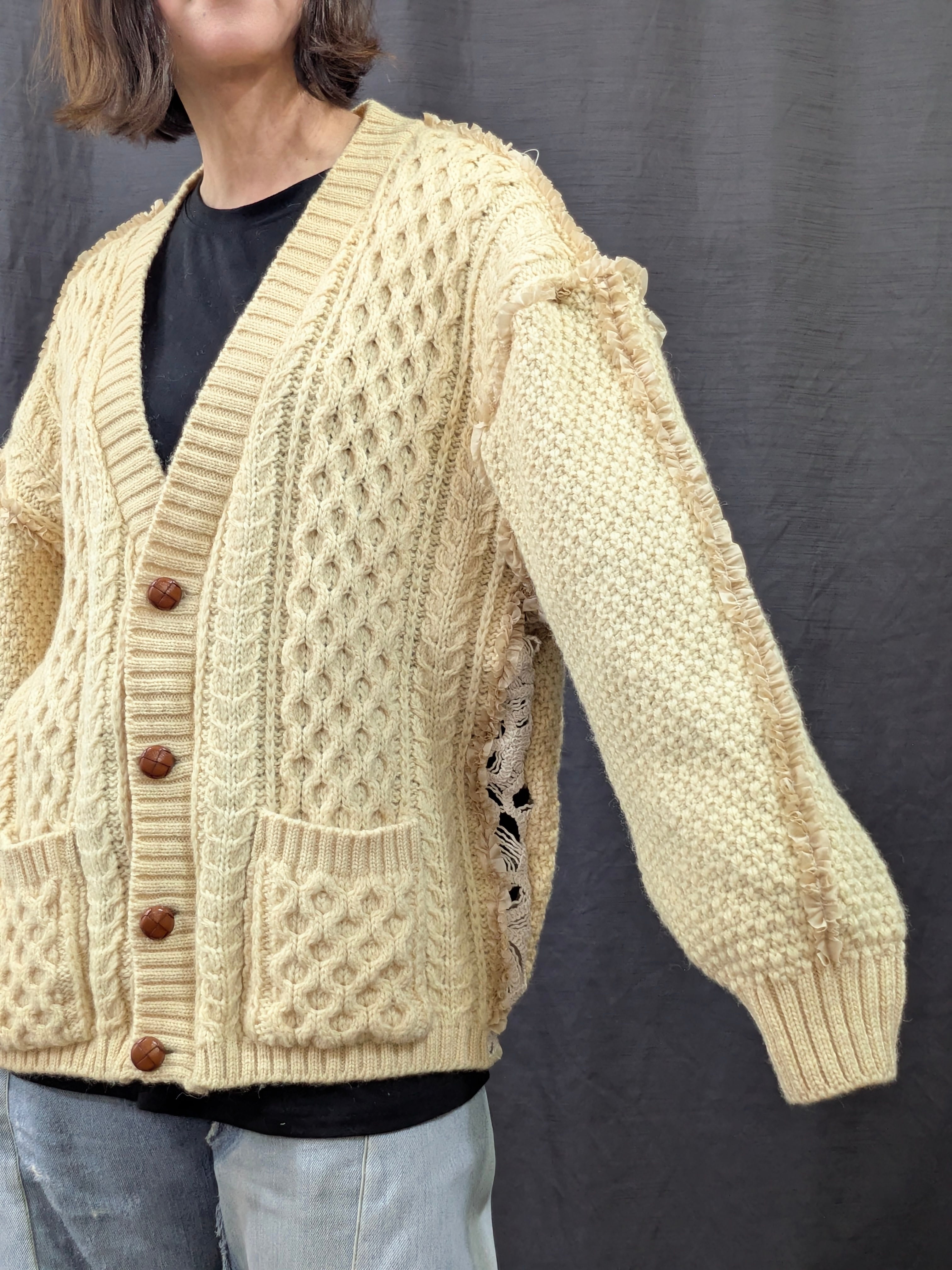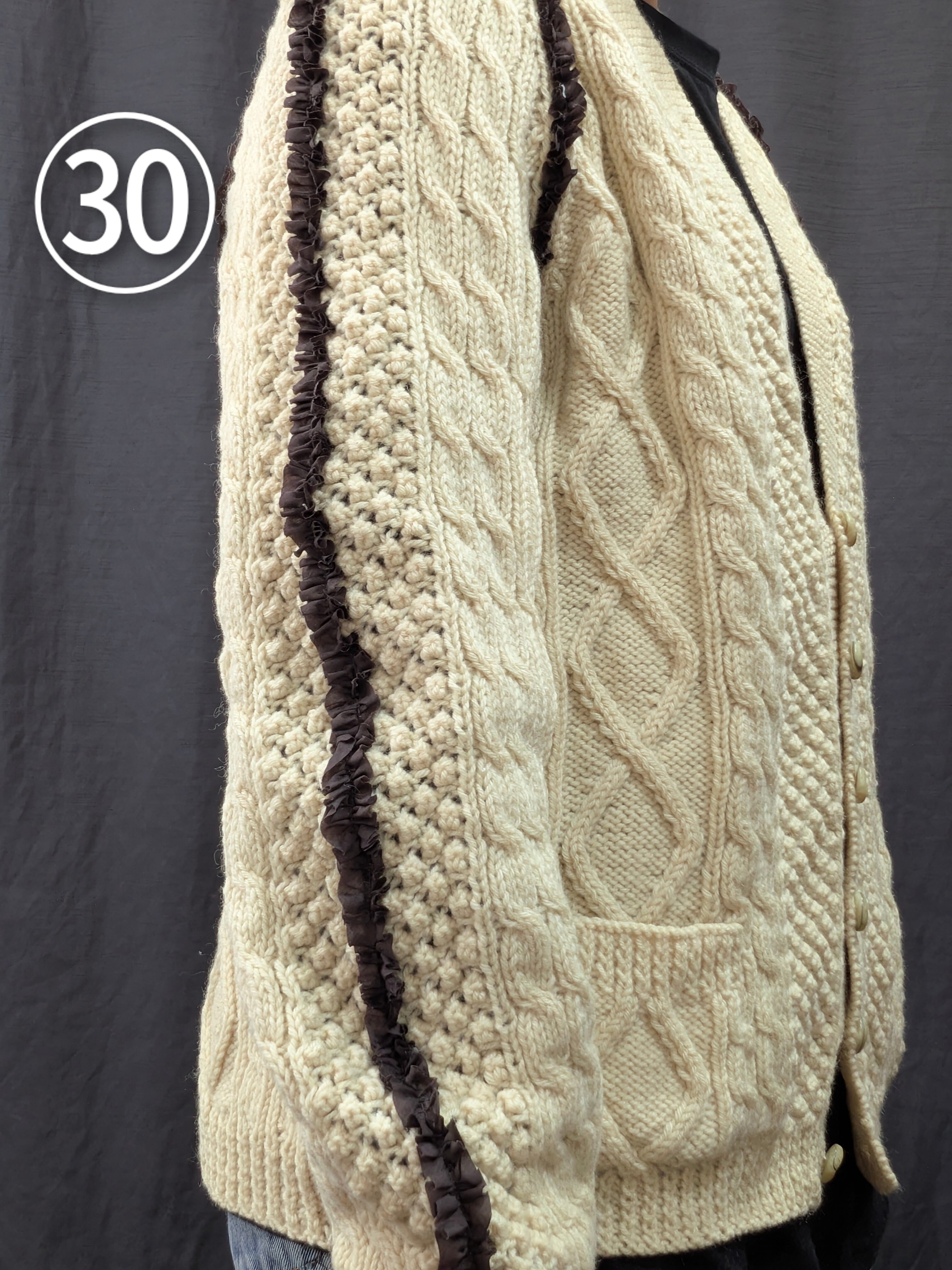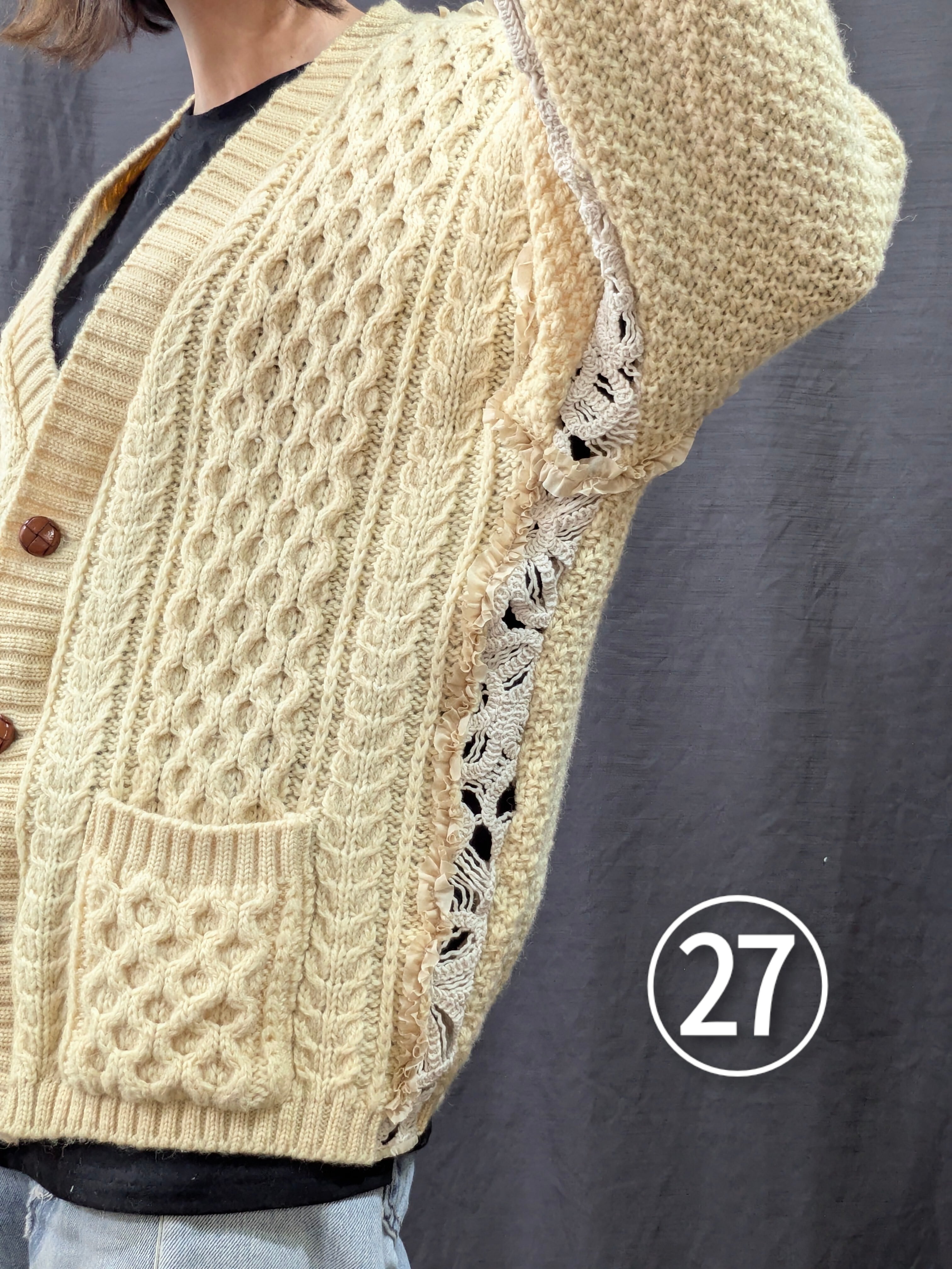 »デザインー古着のフィッシャーマンセーターのシームラインにフリルをあしらいました。