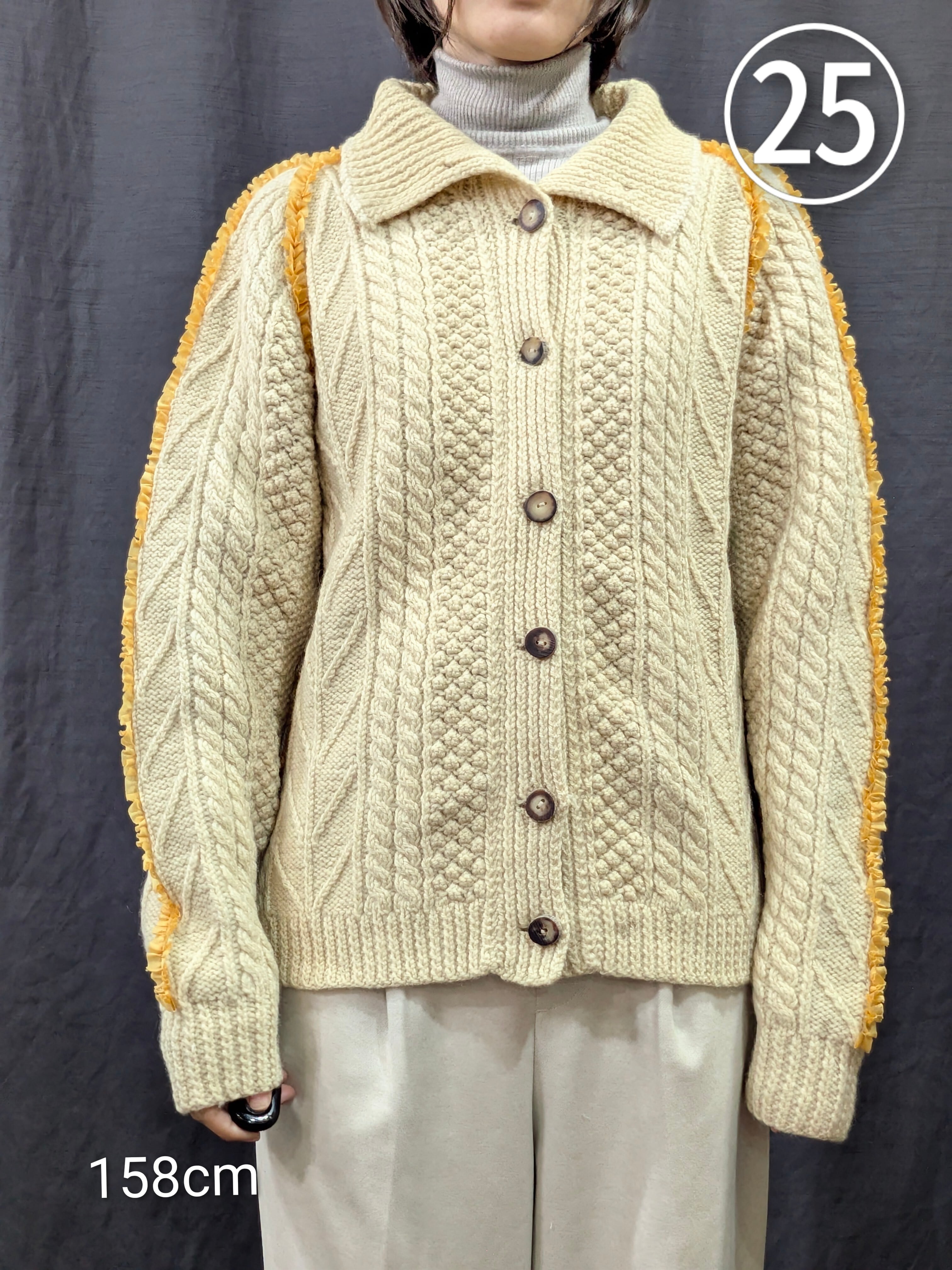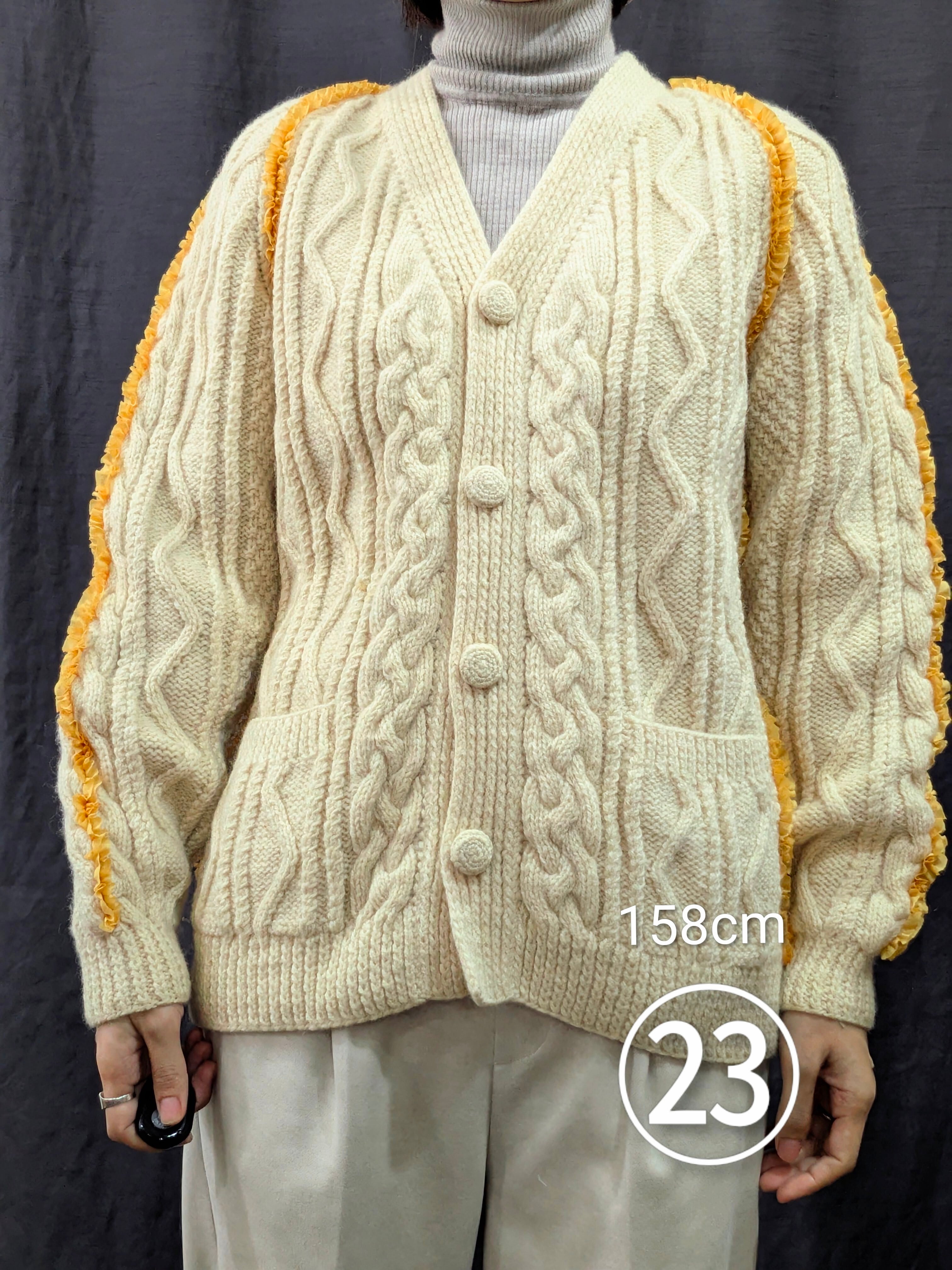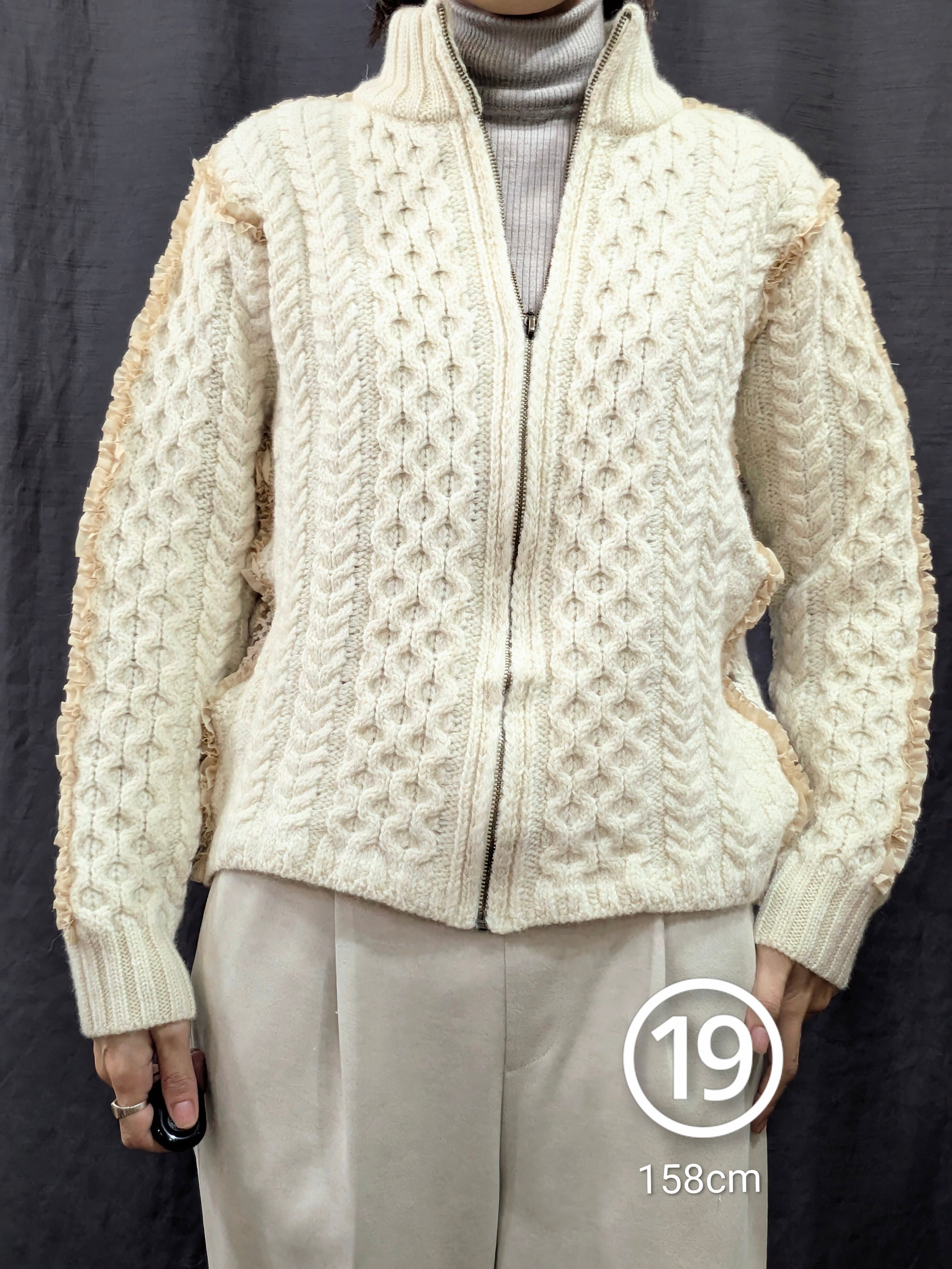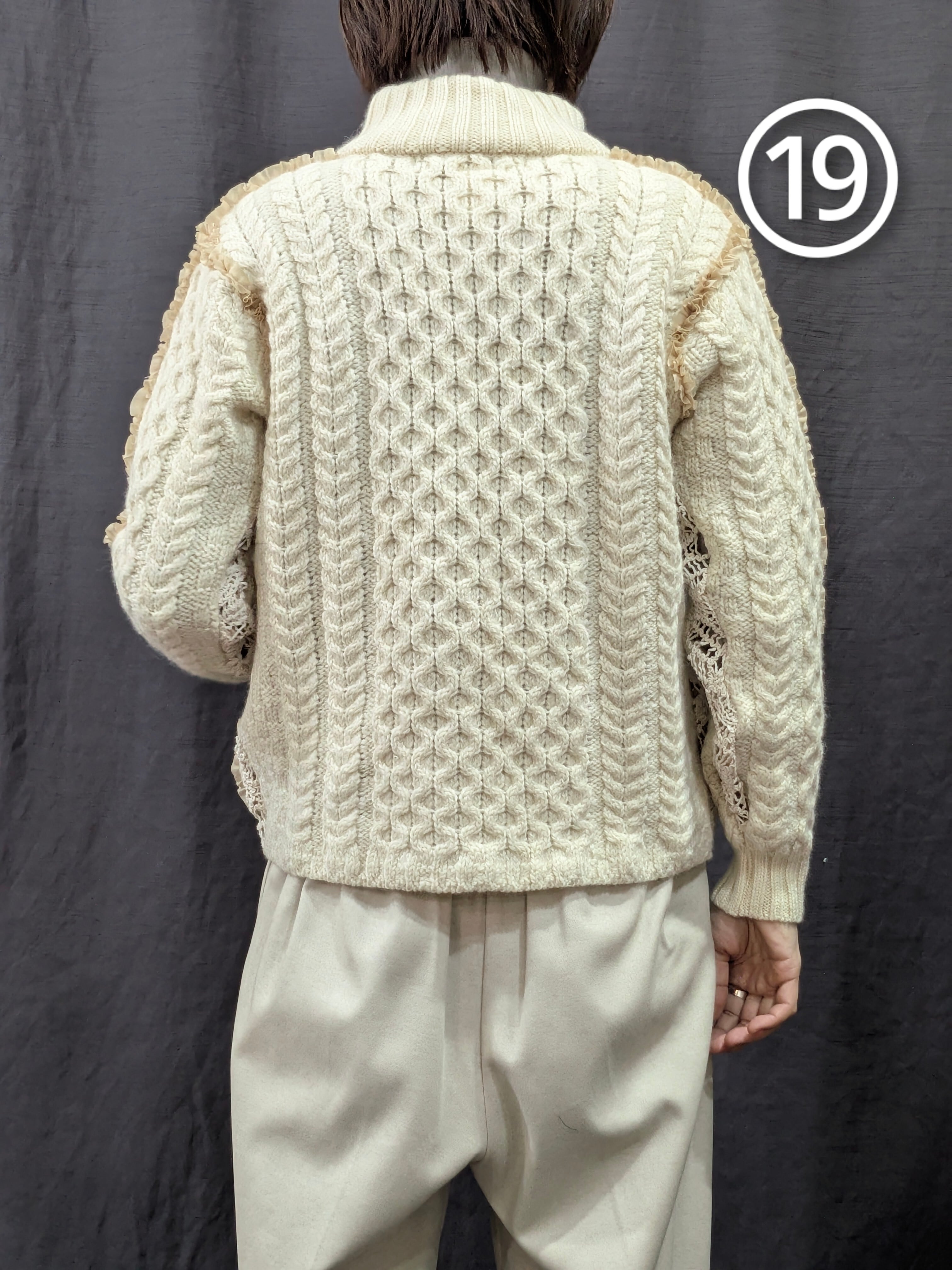 »デザインー古着のフィッシャーマンセーターのシームラインにフリルをあしらいました。