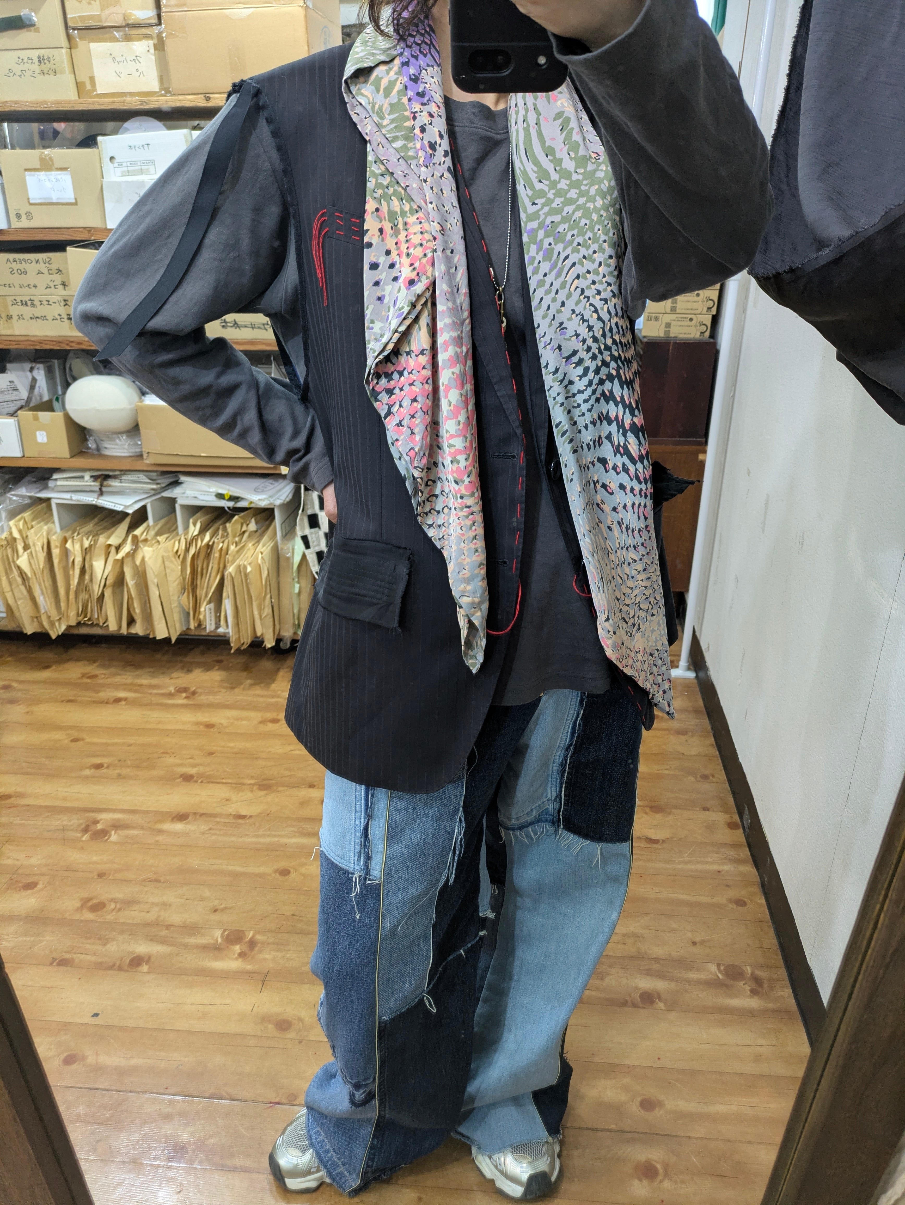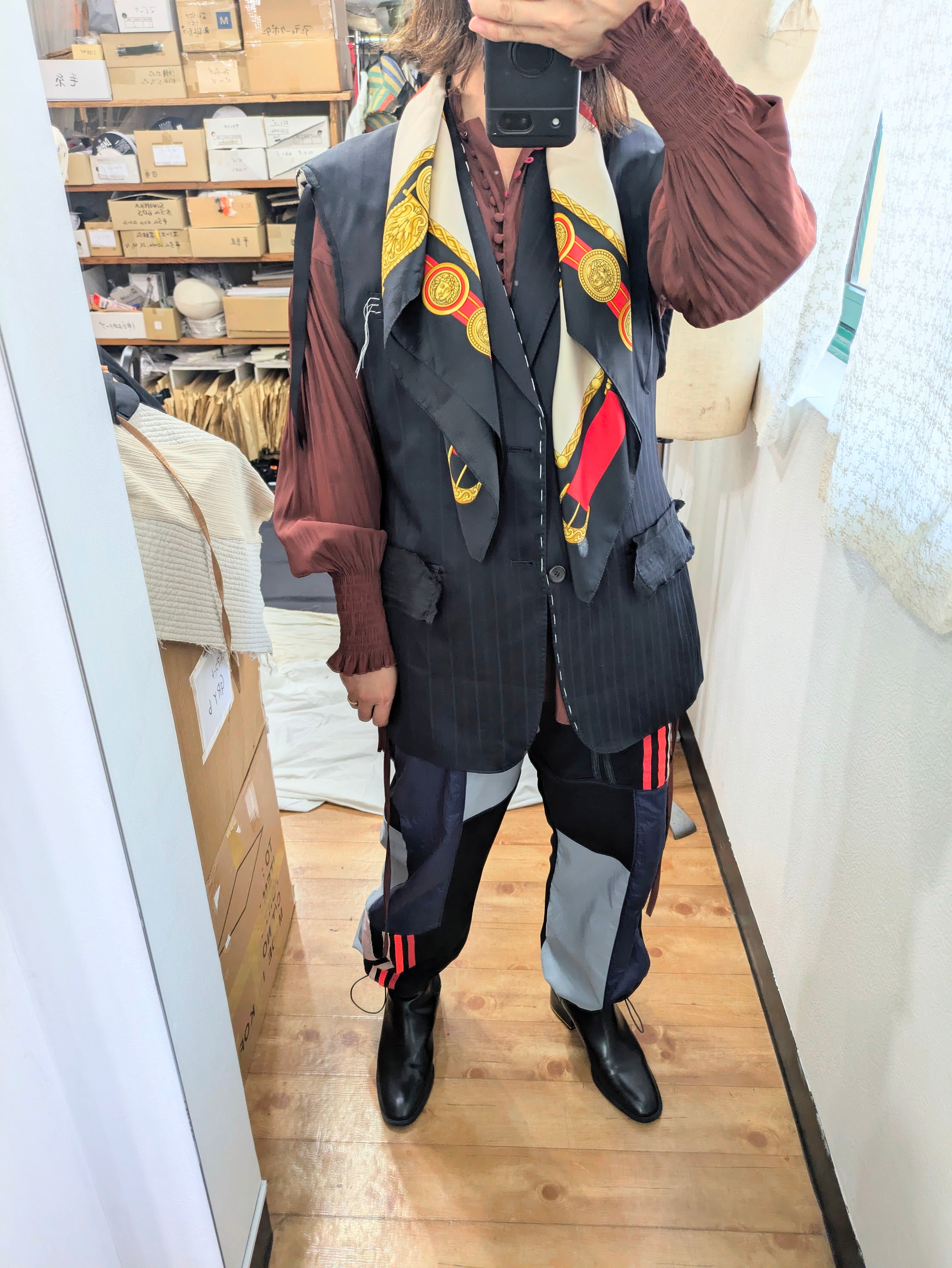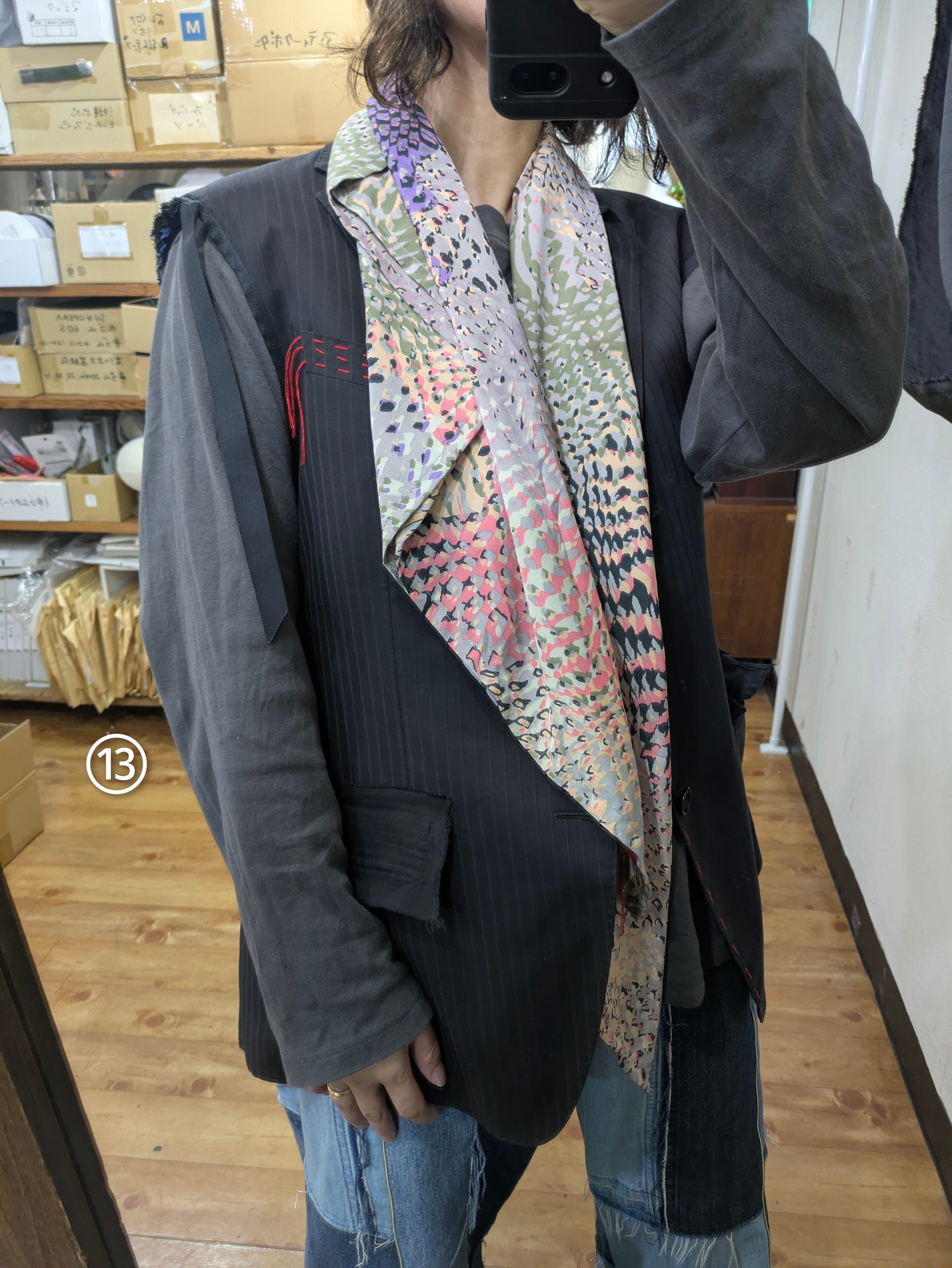 まるでお仕立て途中の様なカスタムで古着のスカーフが付属になっており着脱も可能です!