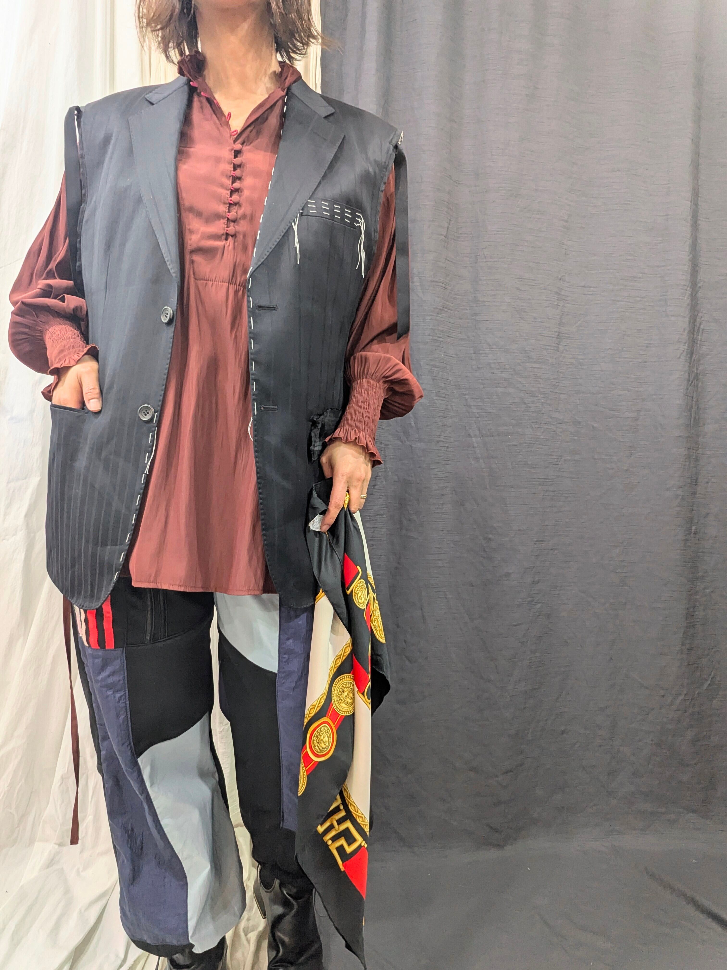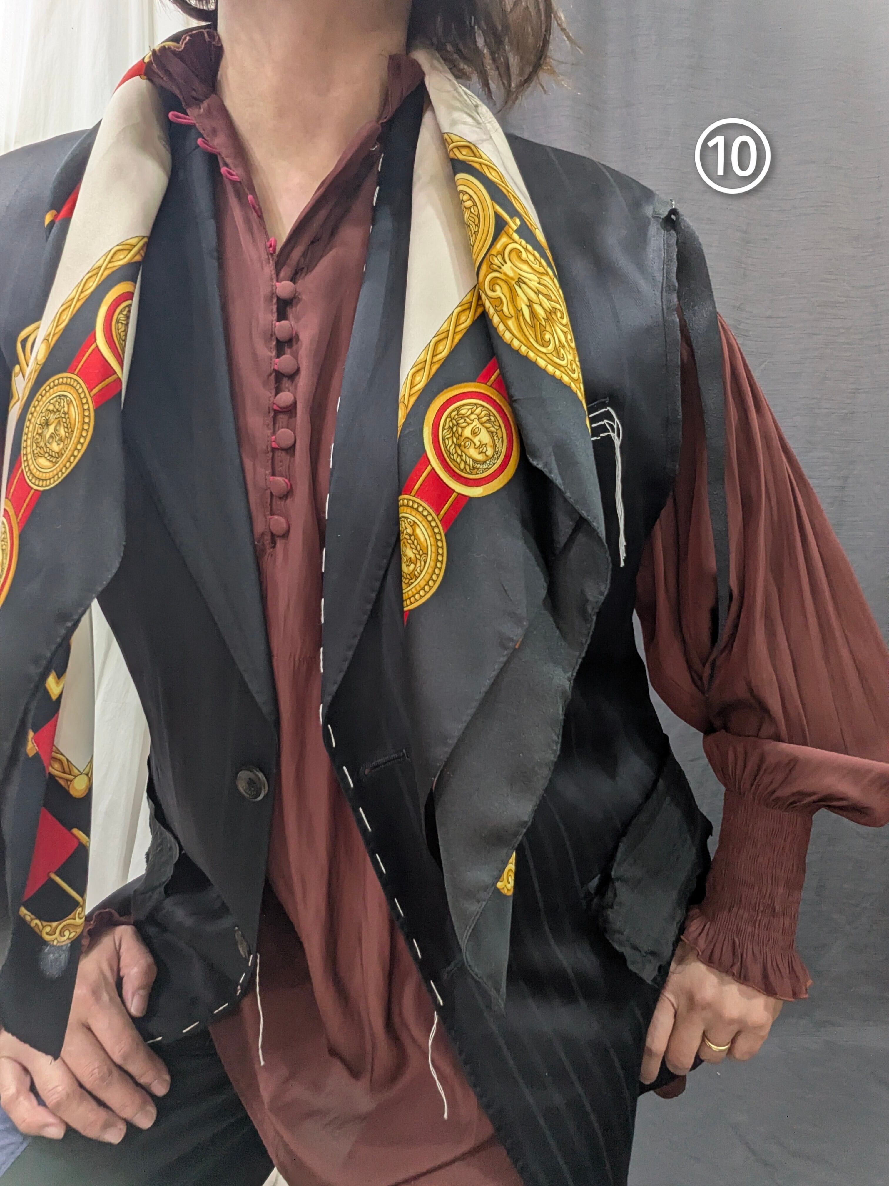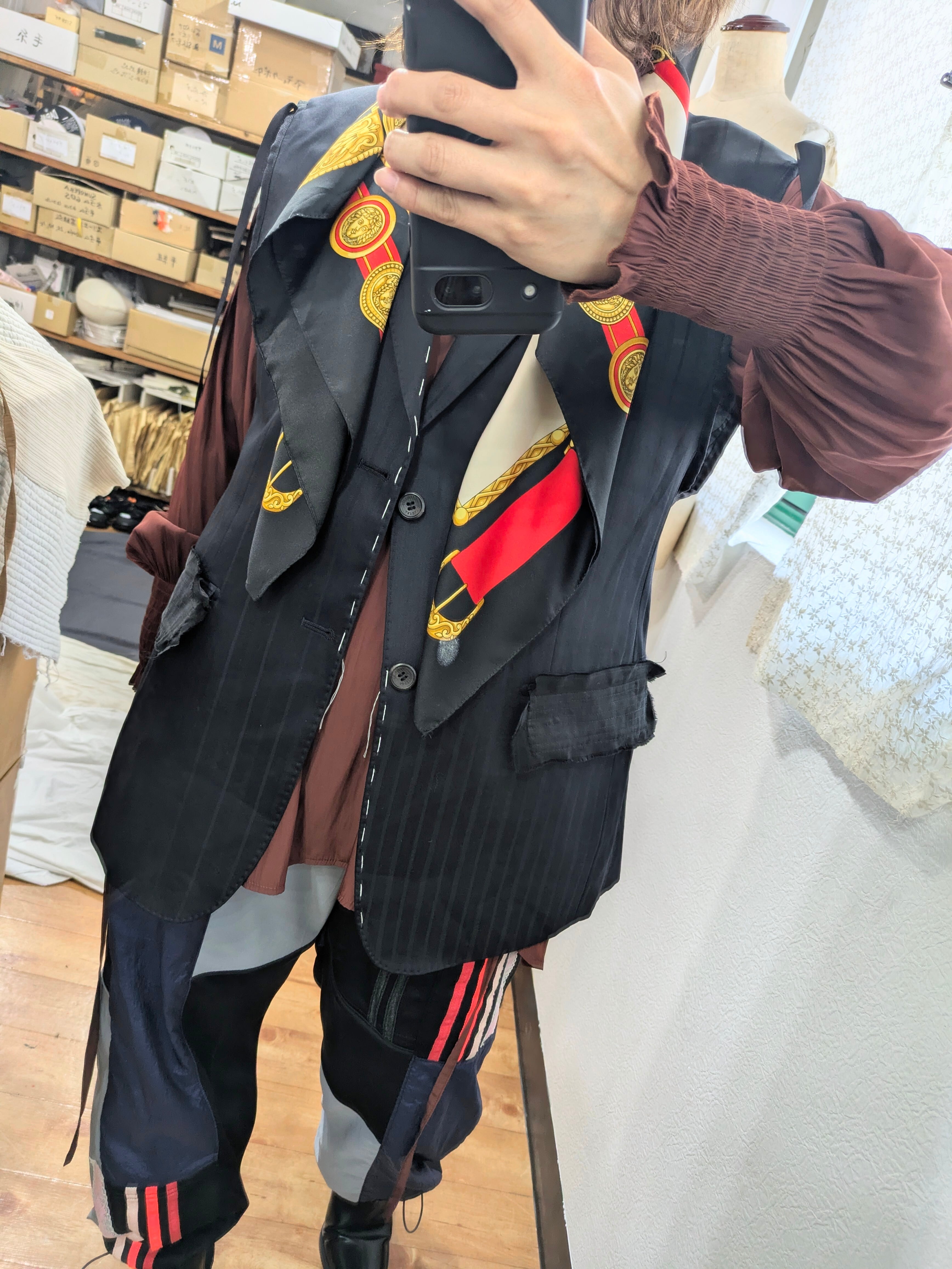 まるでお仕立て途中の様なカスタムで古着のスカーフが付属になっており着脱も可能です!