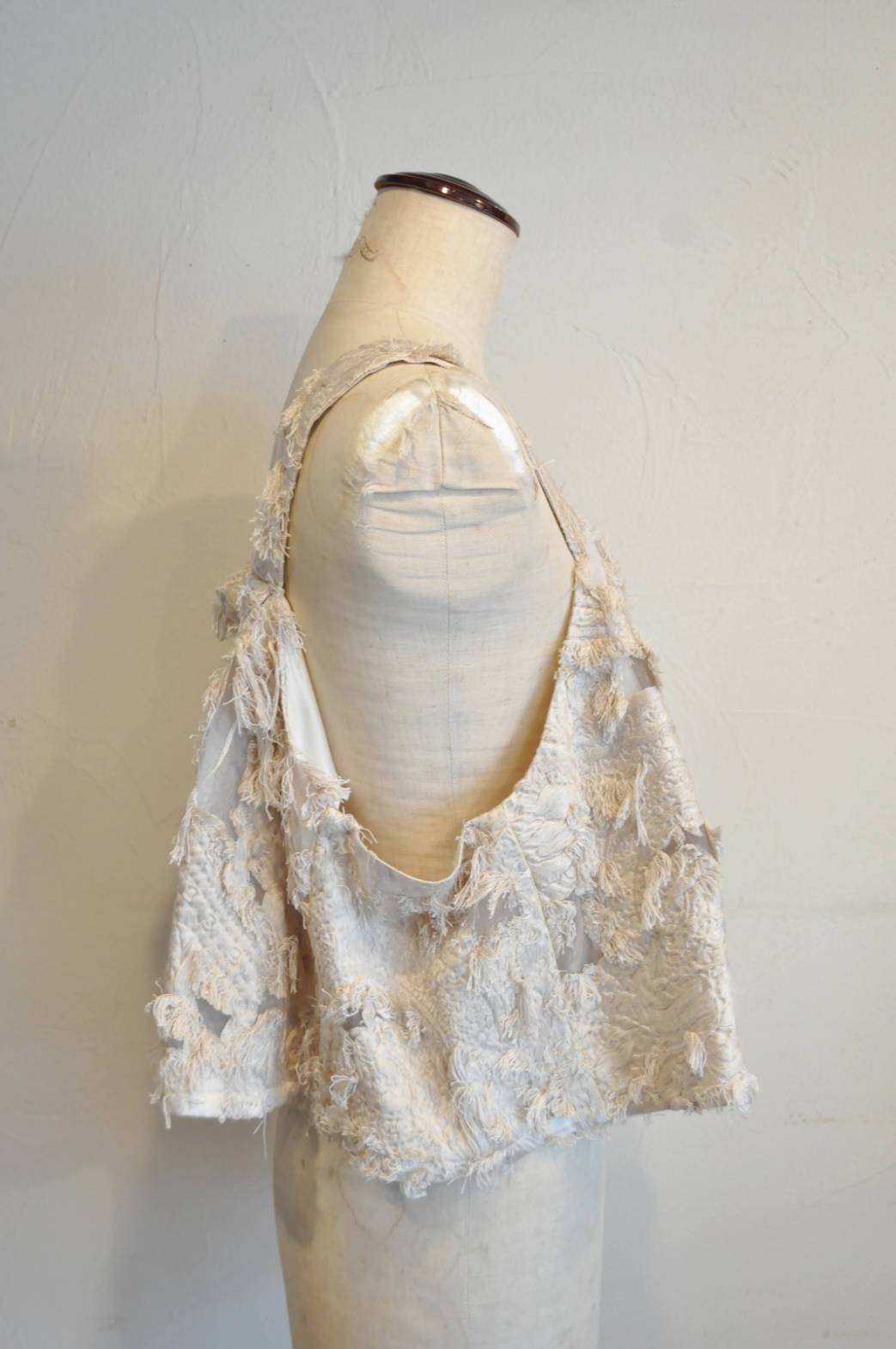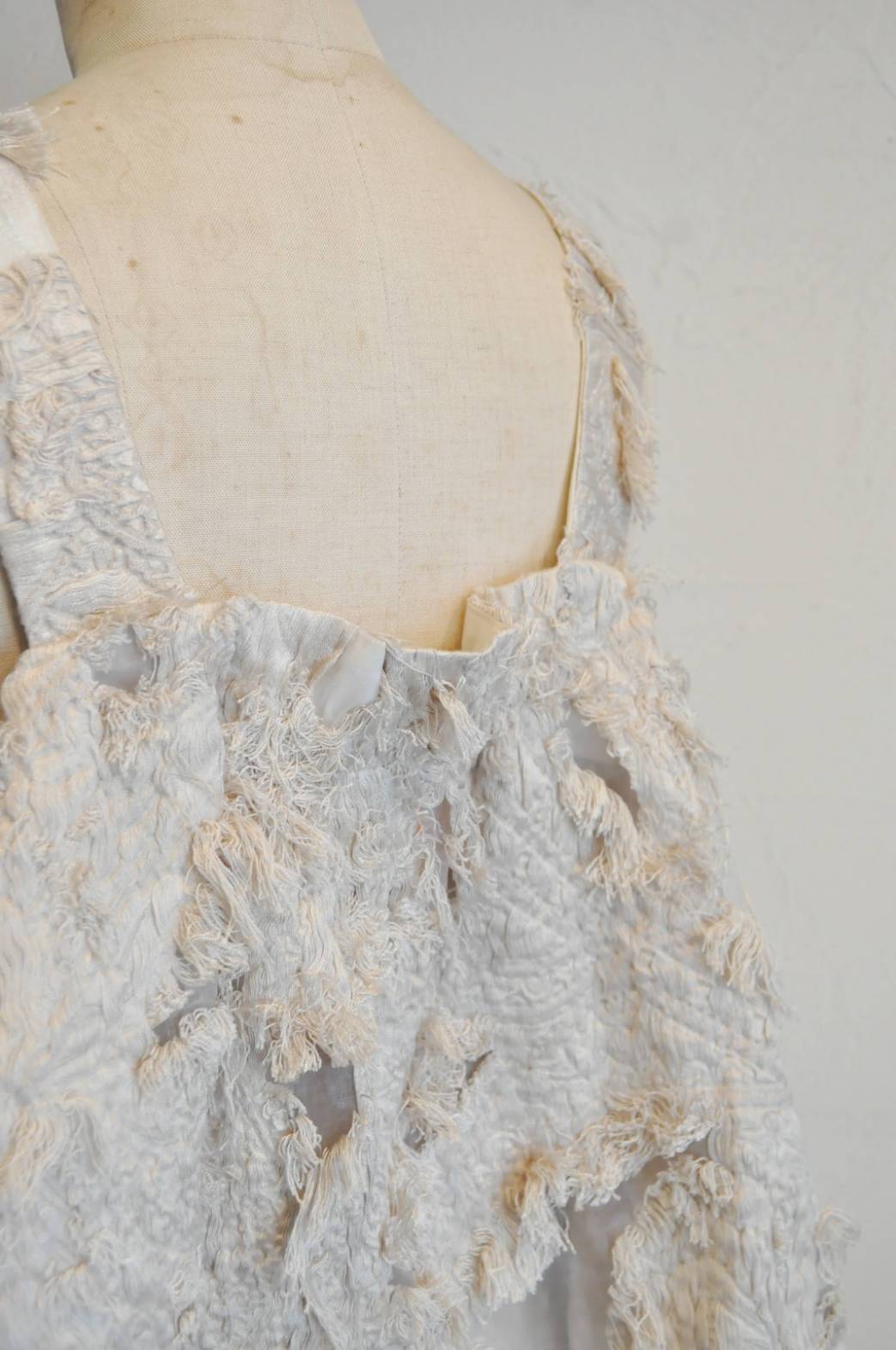 »デザインーオーガンジージャガードの繊細で立体感のあるファブリックが特徴のオーバーキャミソール。ティシャツやブラウスの上に重ねて、シンプルなコーディネートに華やかさをプラス出来ます。バックにはゴムが入っており着脱もしやすいです。