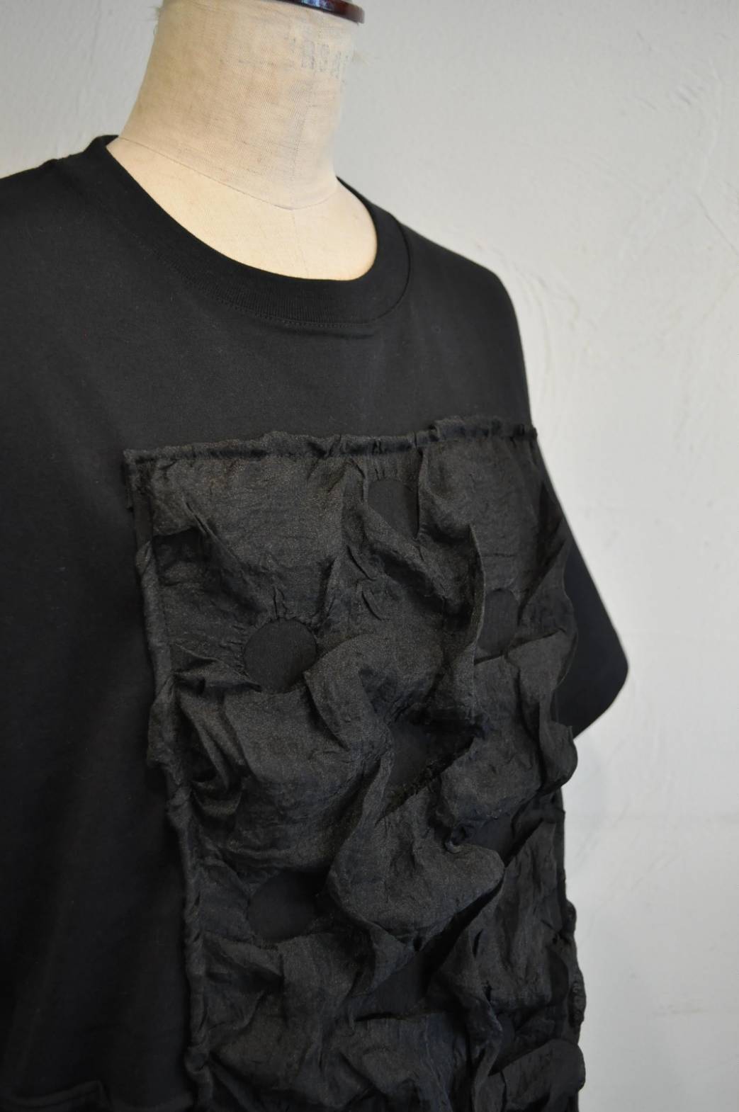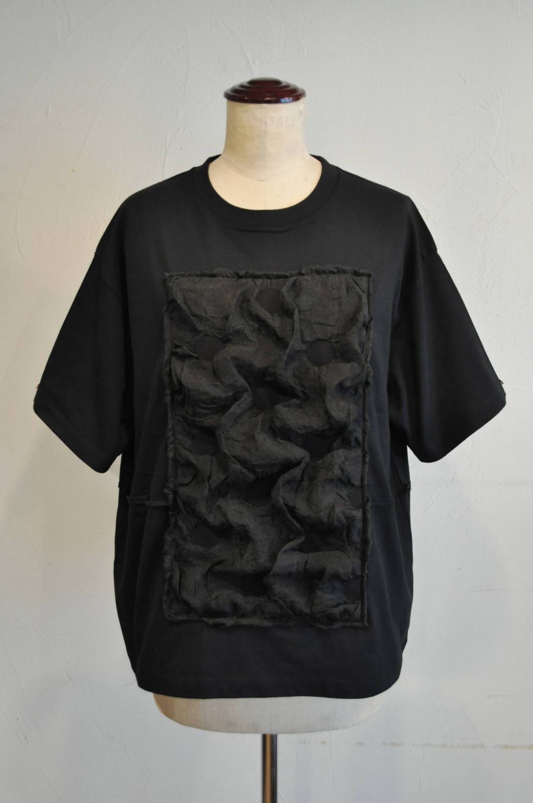 もこもこフラワーパネルティシャツblk/blk【リハーズオール】mokomoko flower panel tee【rehersall】