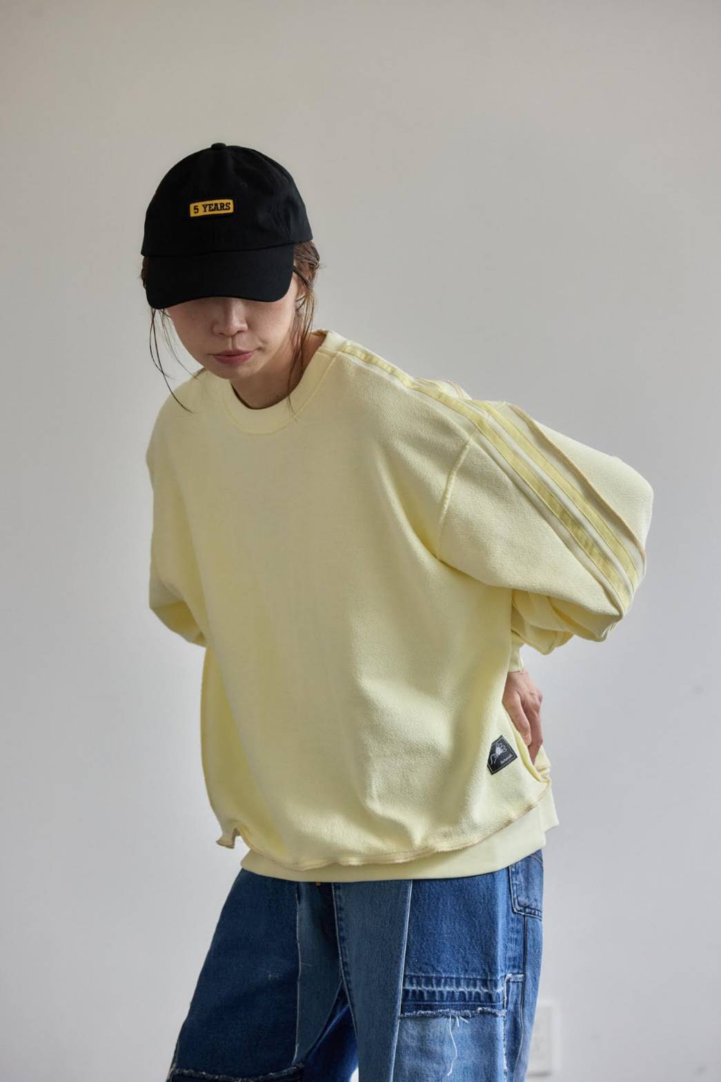 パイルラインスリーブスウェットYEL【リハーズオール】pile line sleeve sweat【rehersall】