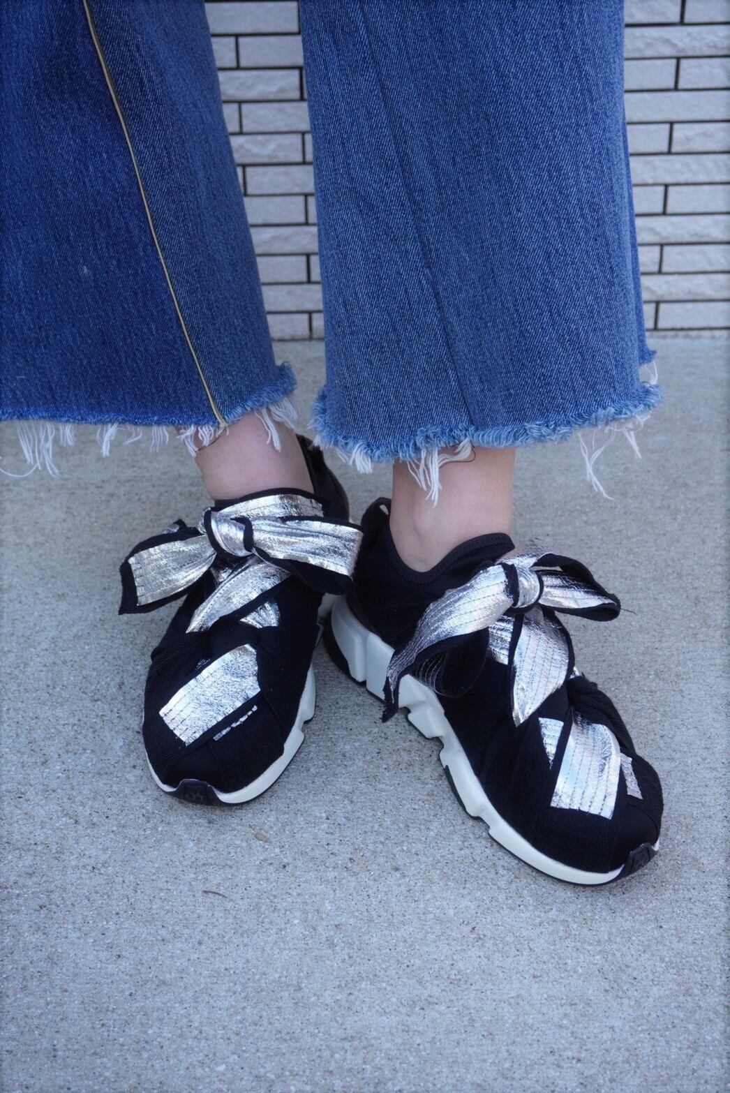 WAKEARI ALLEYメタリックリボンスニーカー SIL【リハーズオール】metallic ribbon sneakers SIL【rehersall】