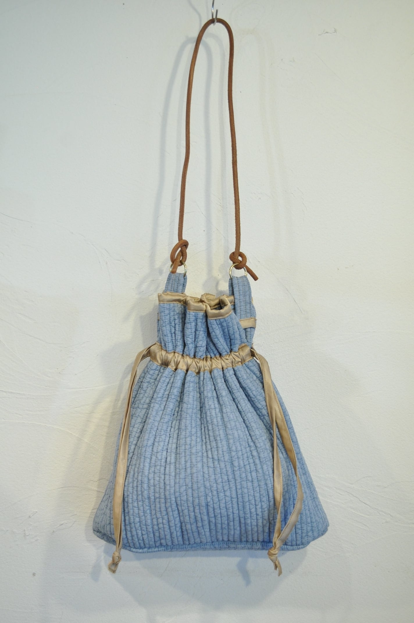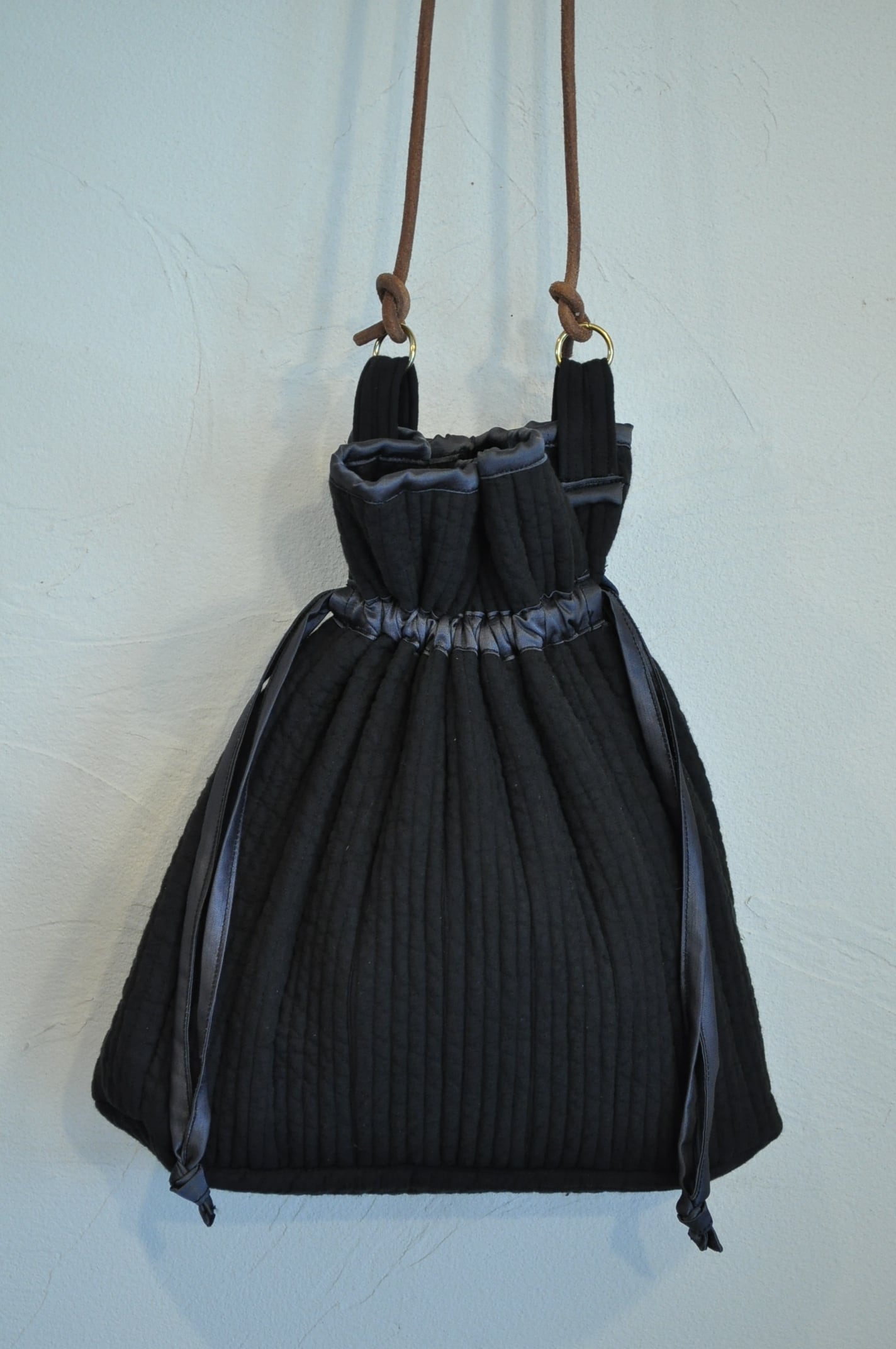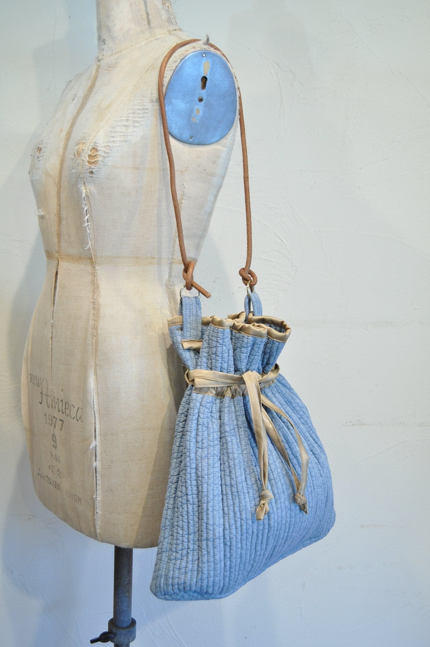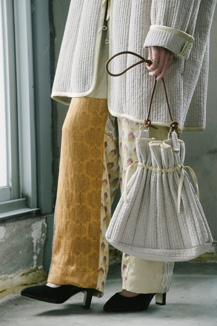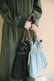 韓国の市場でよく見かけるインテリア様のファブリックを用いて作ったバッグです。絞ると貝のようなシルエットになることから名付けました。