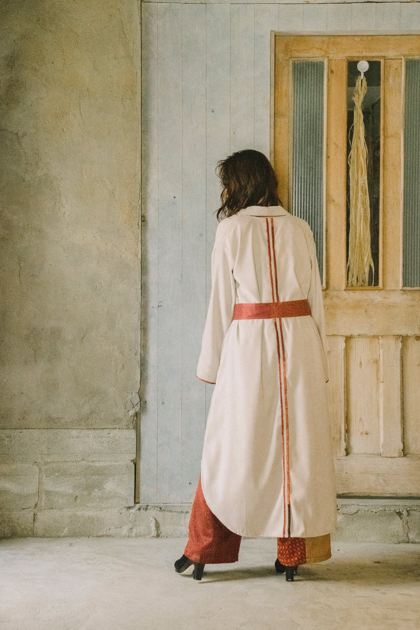堅苦しさのない女性らしいウエスタンワンピースコートです。