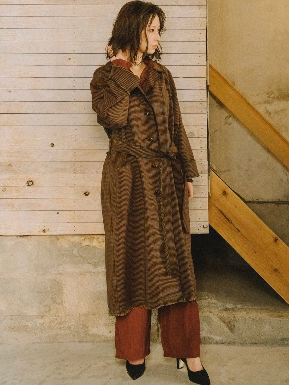 チェックツイードロングコート【リハーズオール】check tweed long coat【RehersalL】