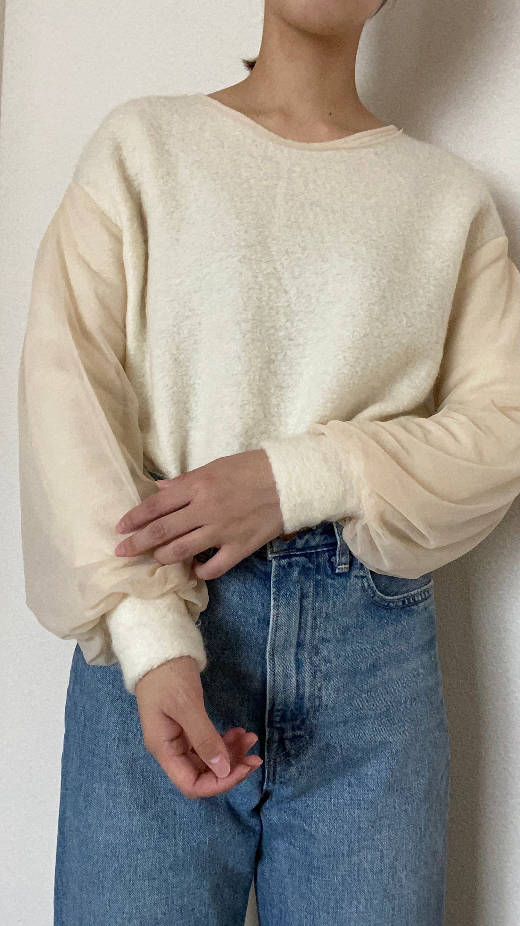 シャギーニット×オーガンジーTOPS【リハーズオール】Shaggy knit× Organdy TOPS【RehersalL】