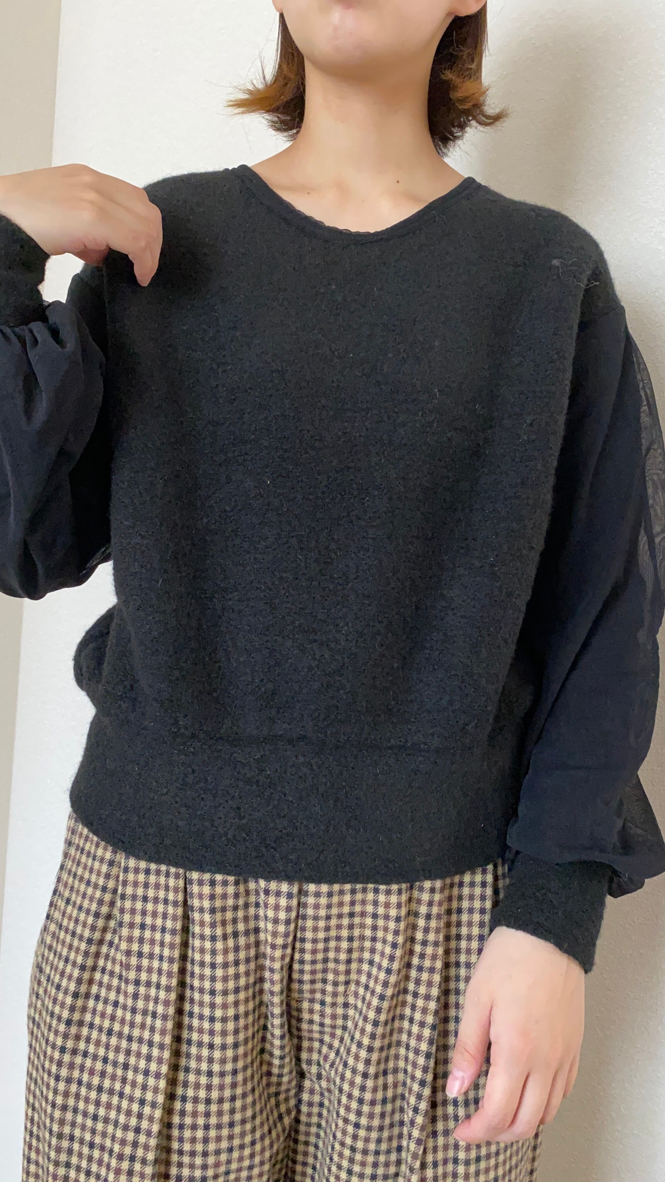 商品名:シャギーニット×オーガンジーTOPS【リハーズオール】Shaggy knit× Organdy TOPS【RehersalL】