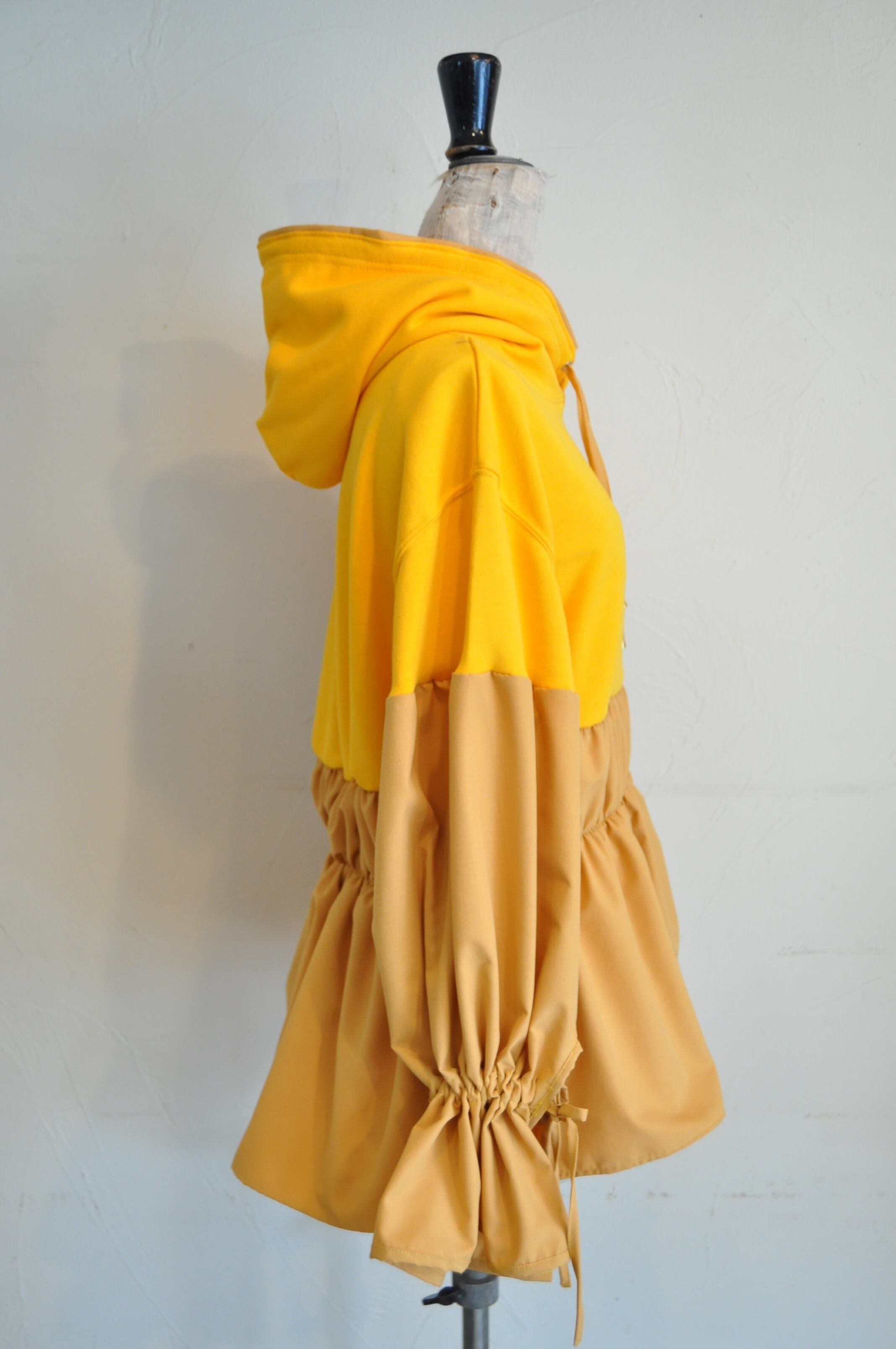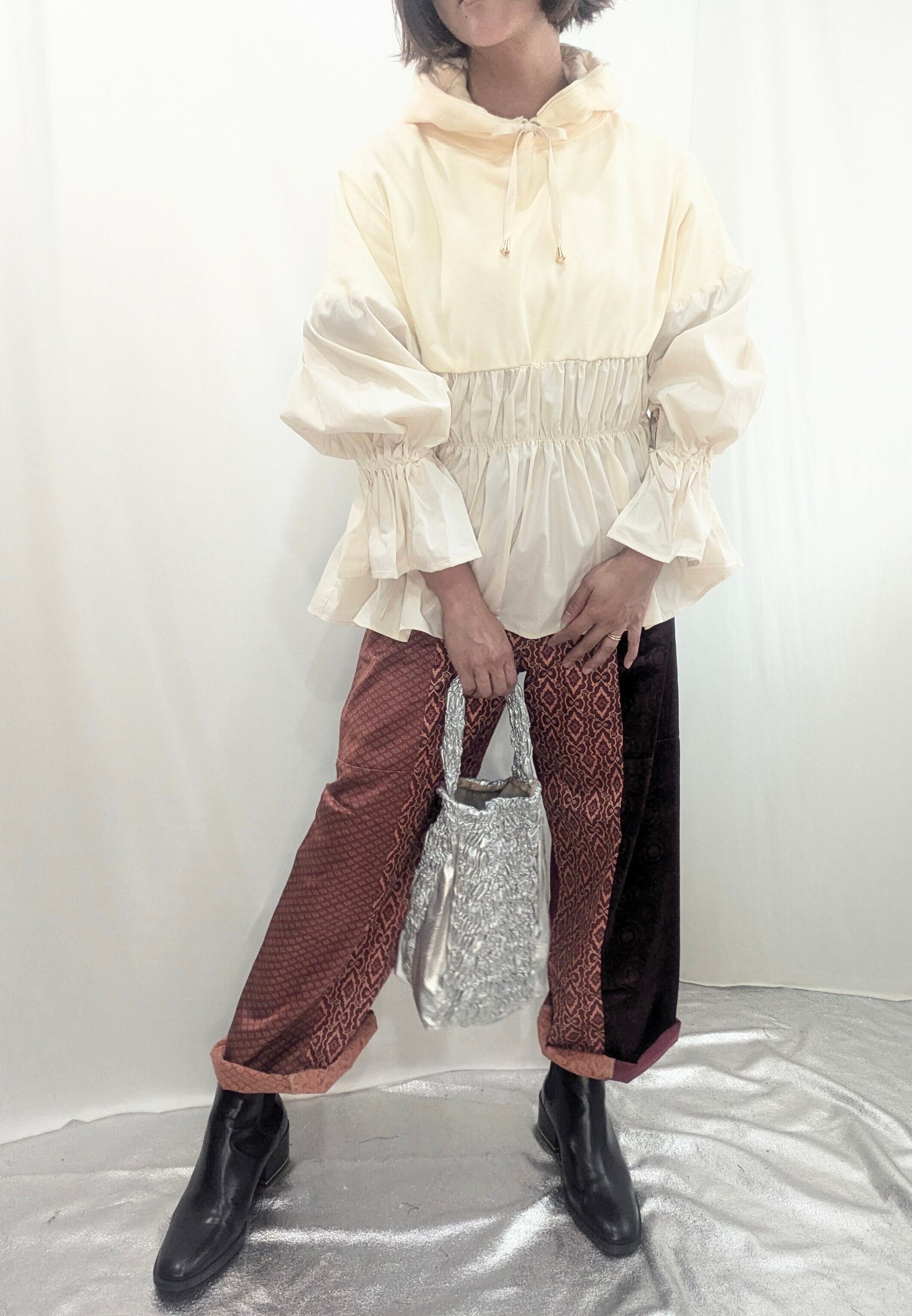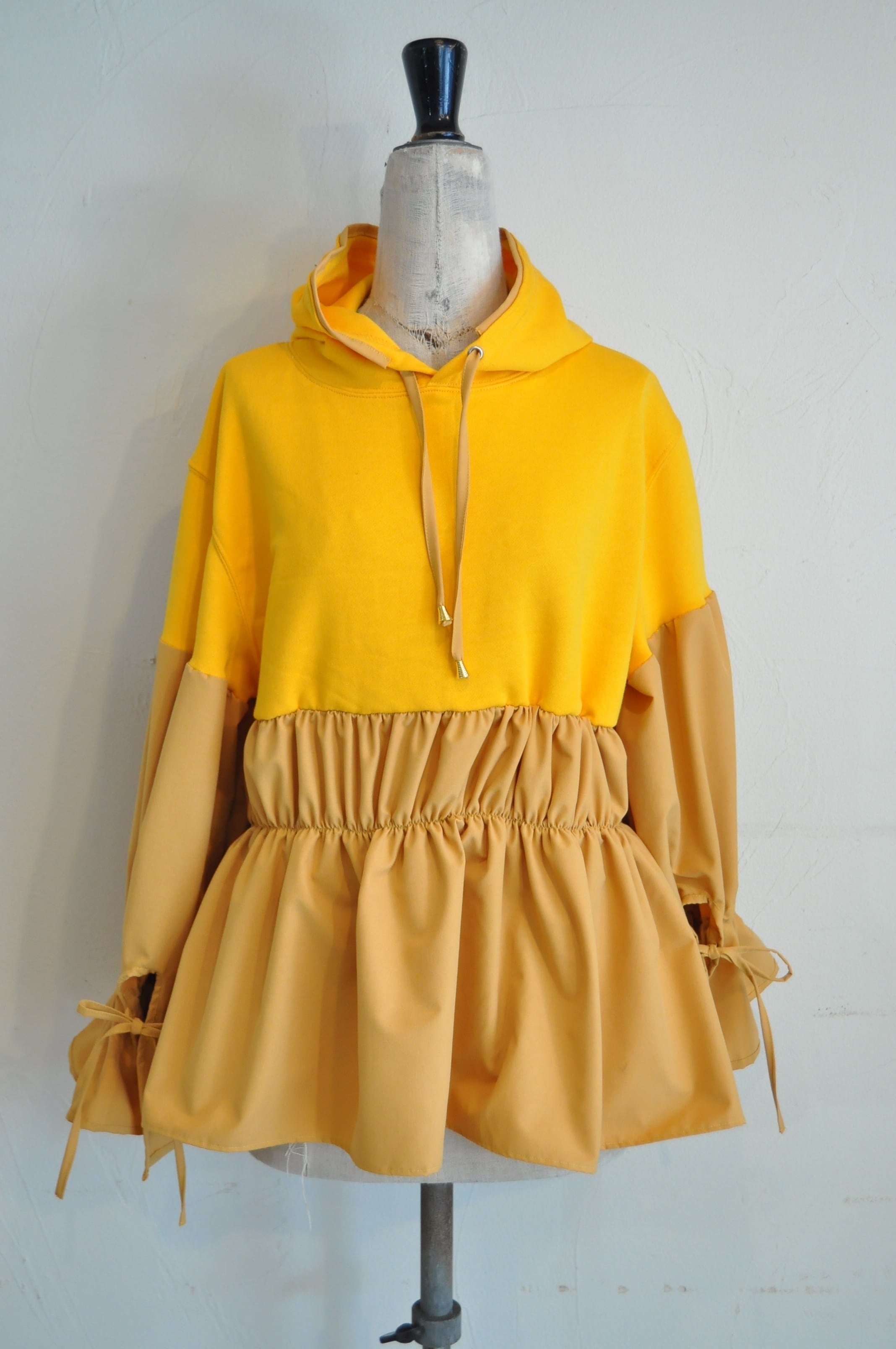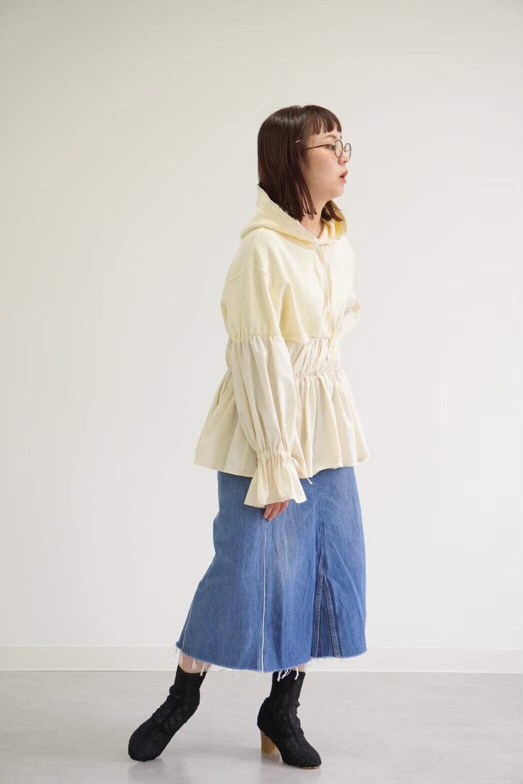 厚みのあるパーカーと高密度のタイプライターを掛け合わせたスウェットブラウスです。