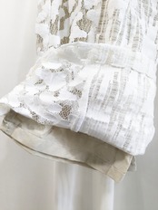 葉のモチーフや樹木の幹の模様モチーフのレースを使用した総レースのパンツです。裏地付き、ポケット付き。ウエストベルトとゴム仕様です。