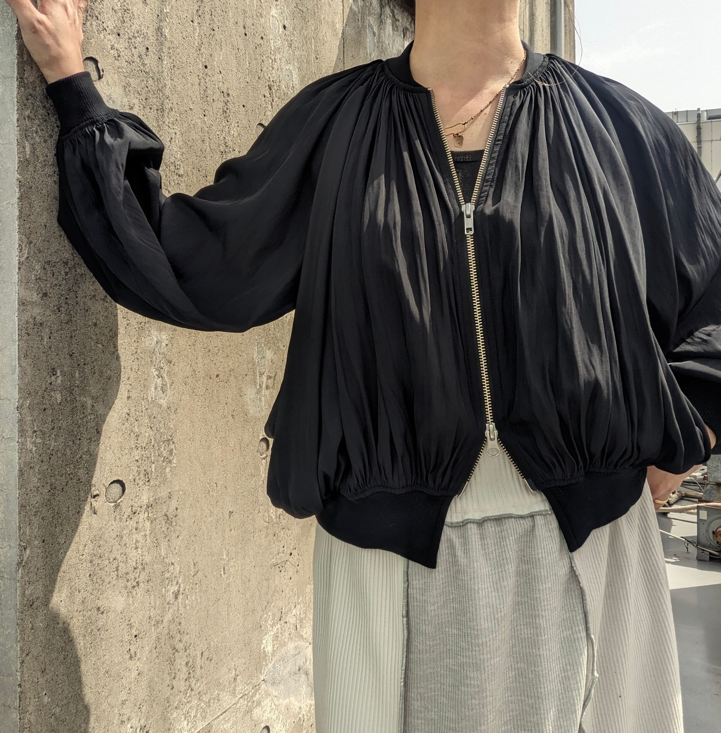 ビジュー生地でサラサラした質感の大人素材のブルゾンです。