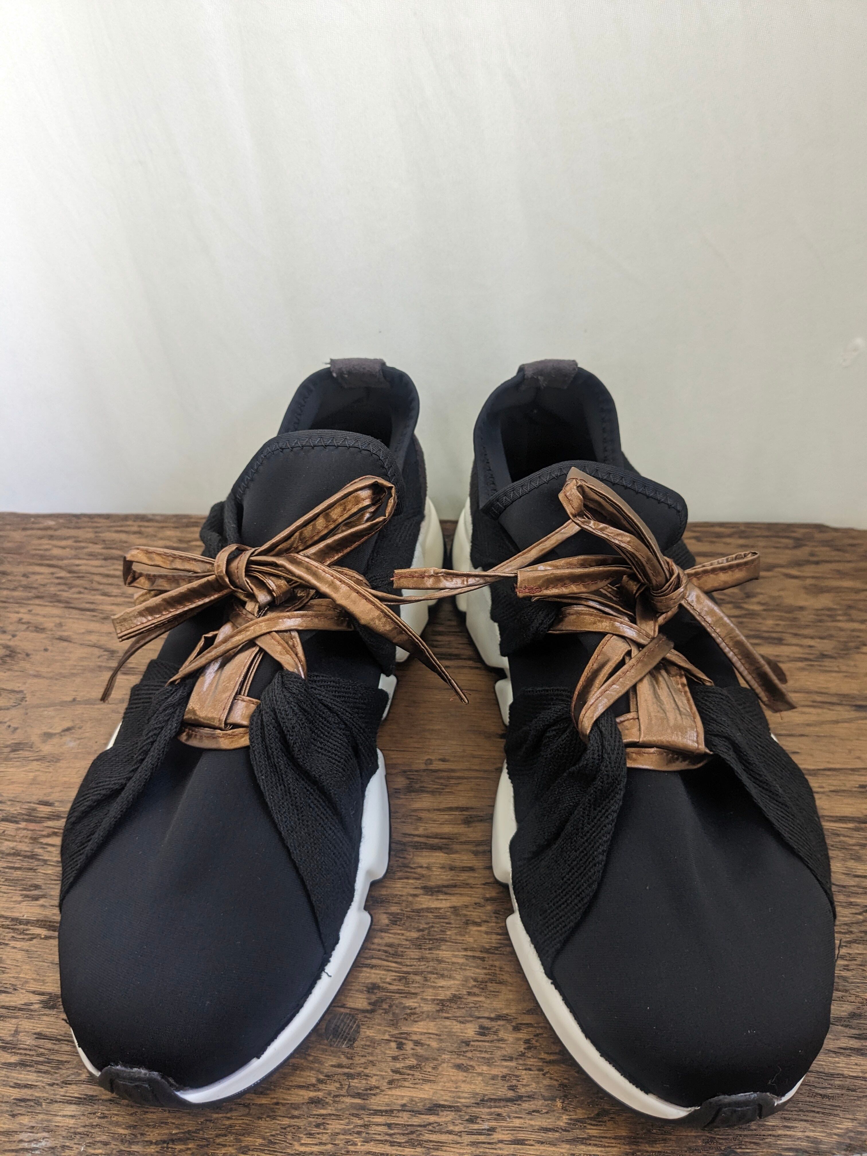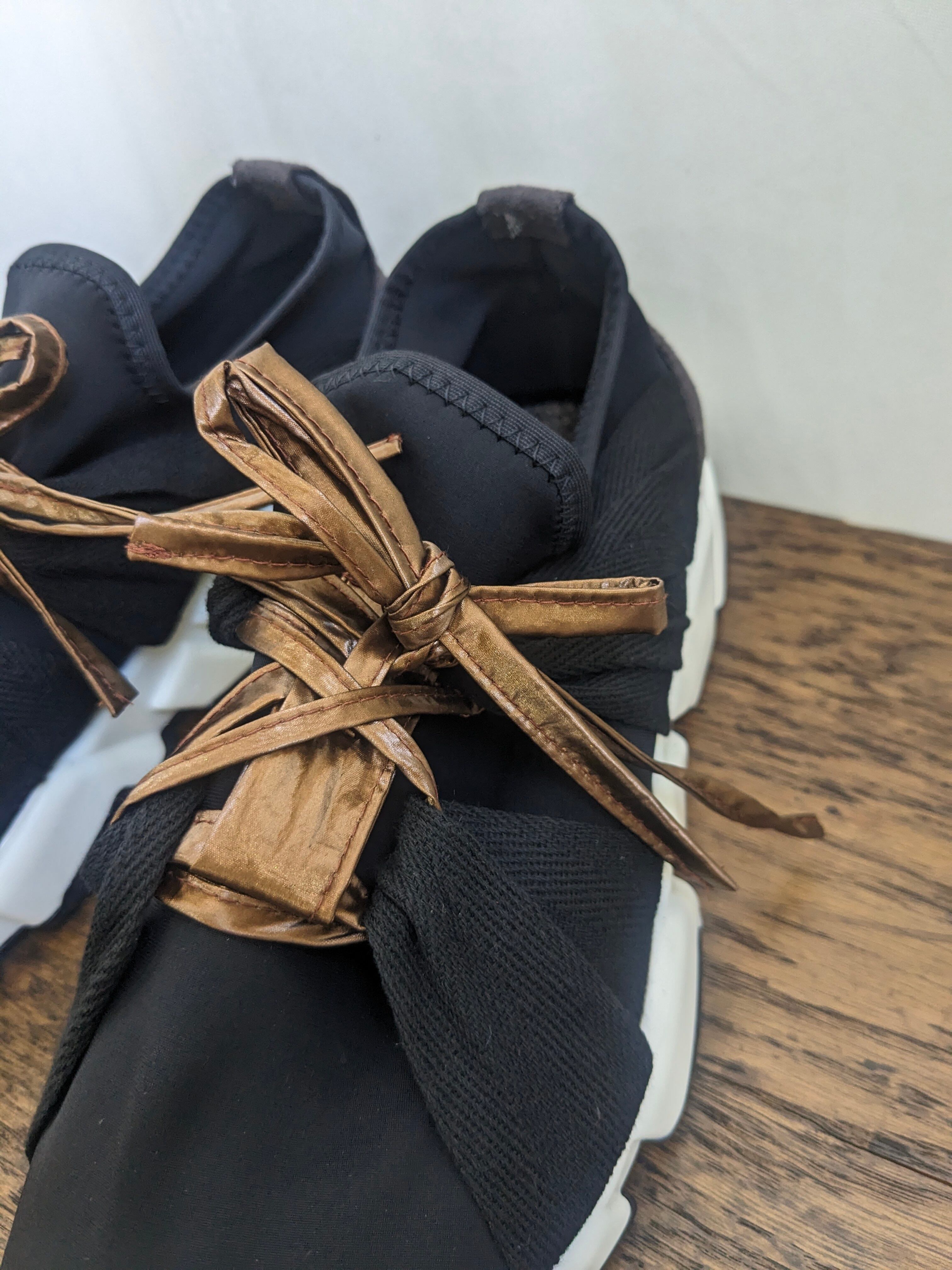 微光沢のメタリック素材が付いたリボンスニーカーが登場です!