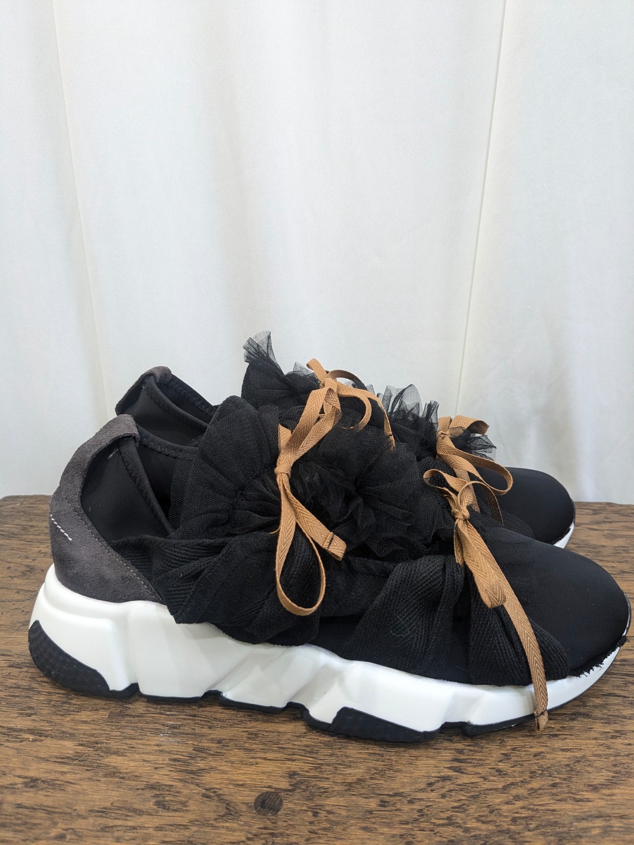 チュール生地で作ったモチーフが飾りのスニーカーです。