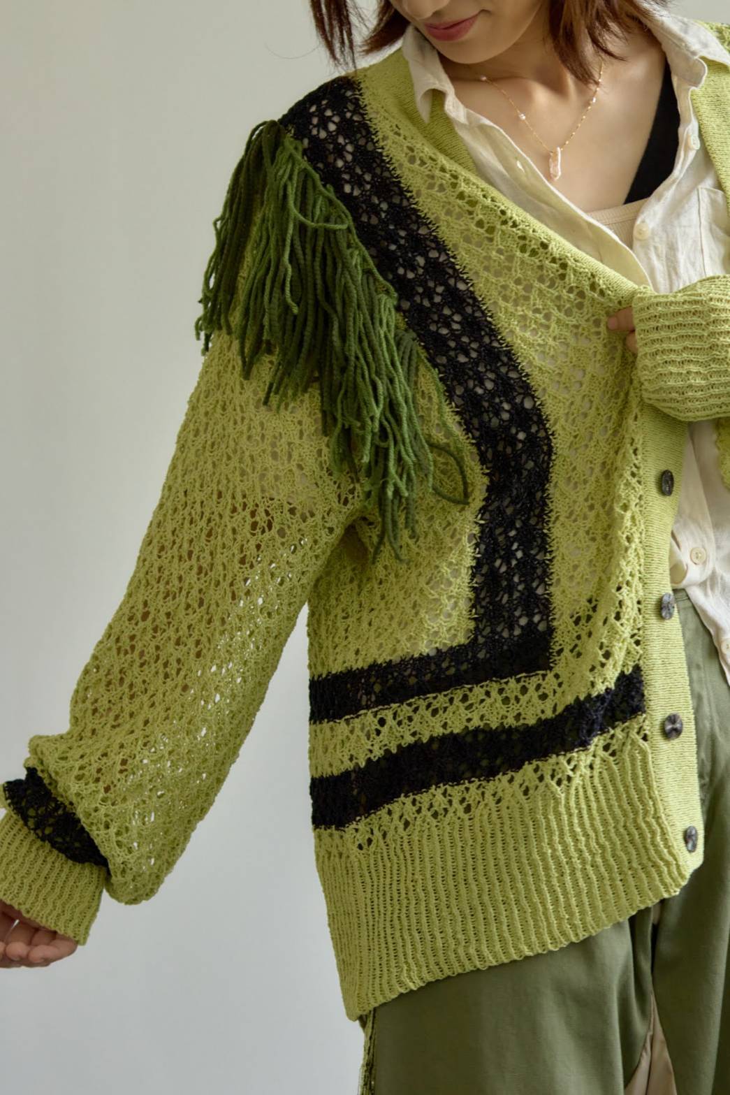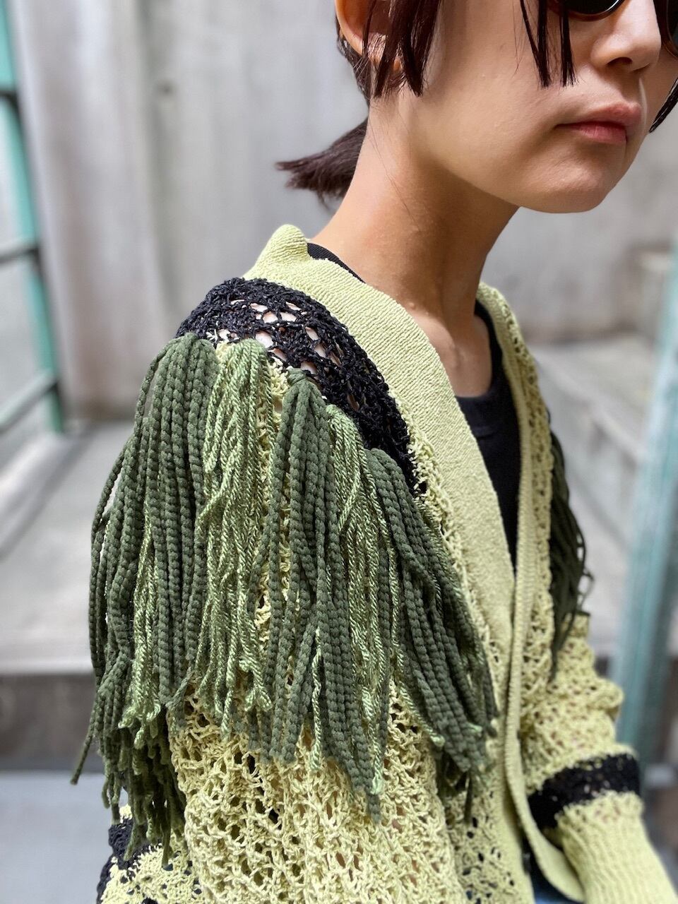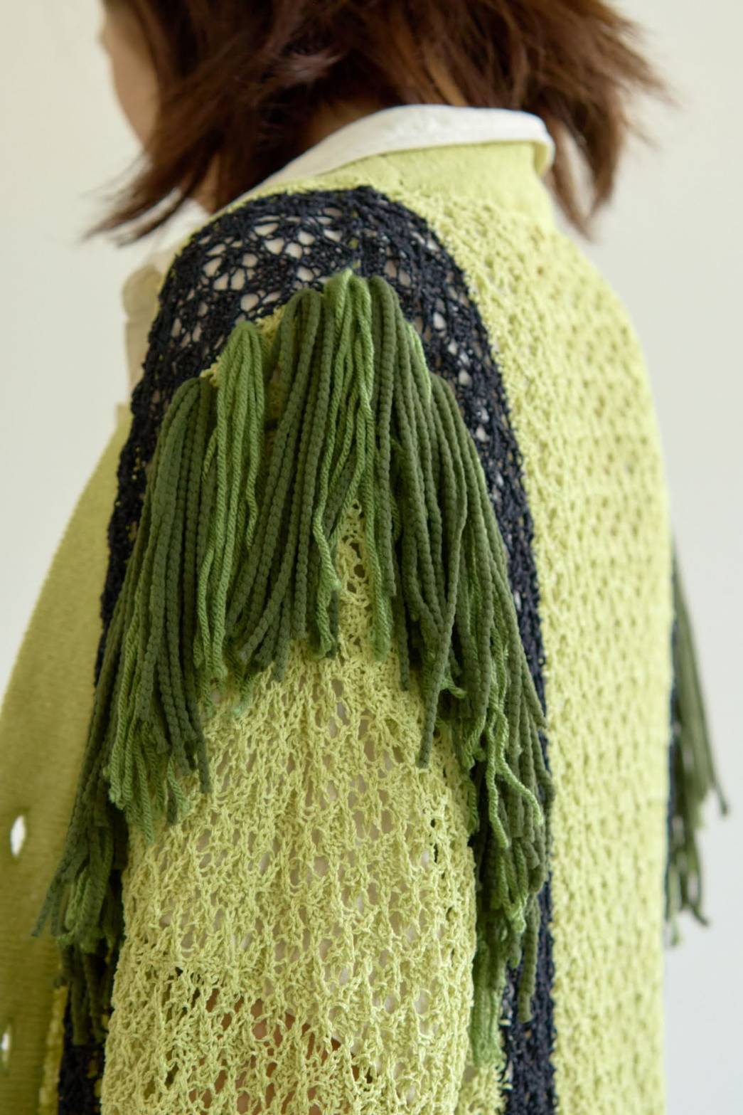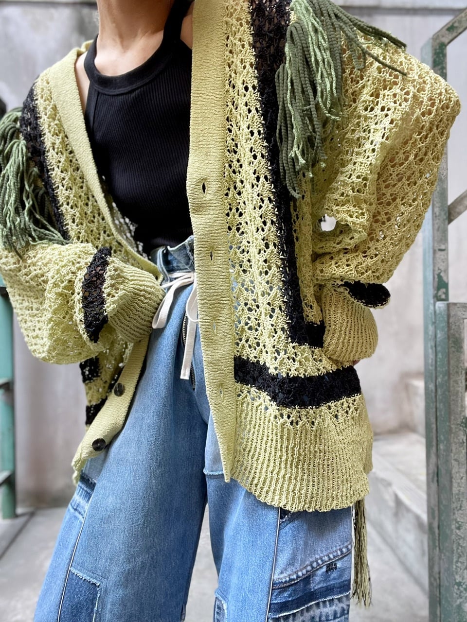 柔らかな和紙混の糸を贅沢に使用した、ハイクオリティなニットカーディガンです。ドライタッチで肌触りが心地良く、季節の変わり目にぴったりの一枚です。ボリューミーなフリンジがポイントで、一枚で着るだけでおしゃれ度がグッとUPします。