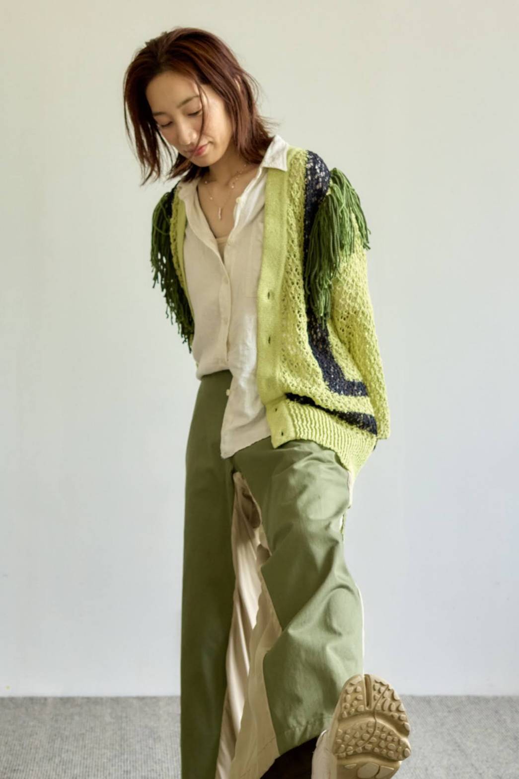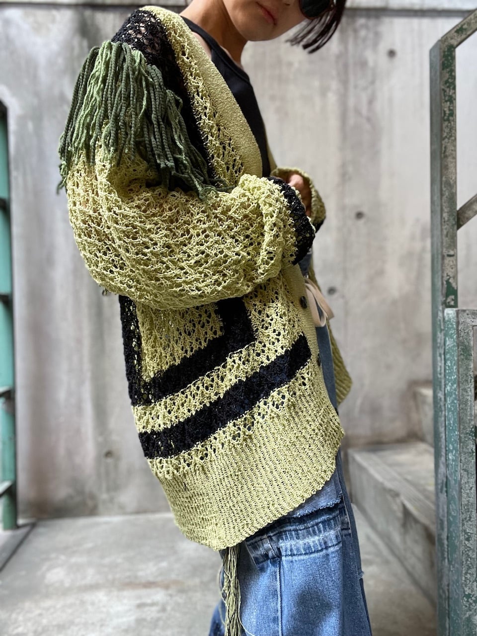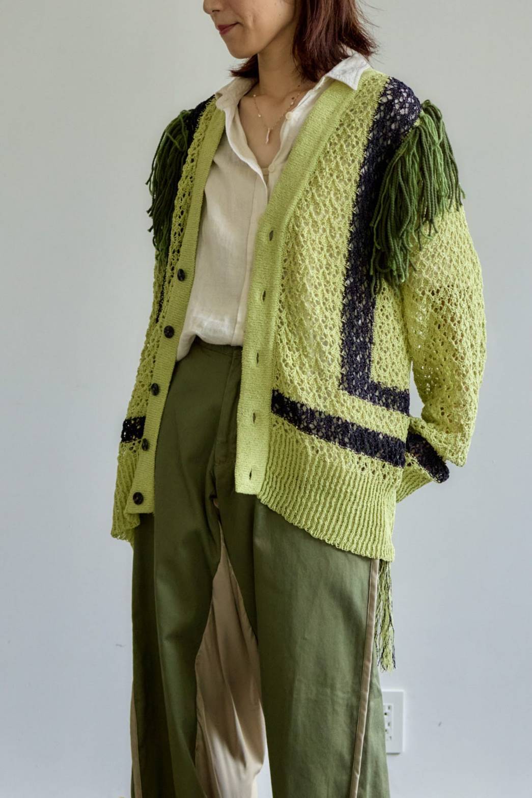 柔らかな和紙混の糸を贅沢に使用した、ハイクオリティなニットカーディガンです。ドライタッチで肌触りが心地良く、季節の変わり目にぴったりの一枚です。ボリューミーなフリンジがポイントで、一枚で着るだけでおしゃれ度がグッとUPします。