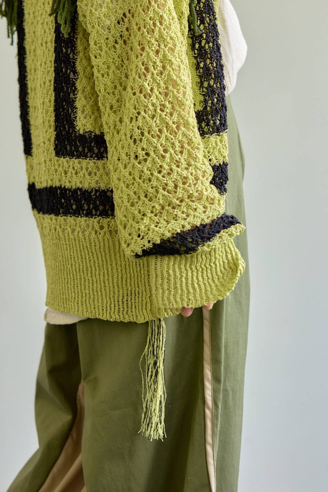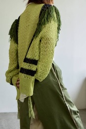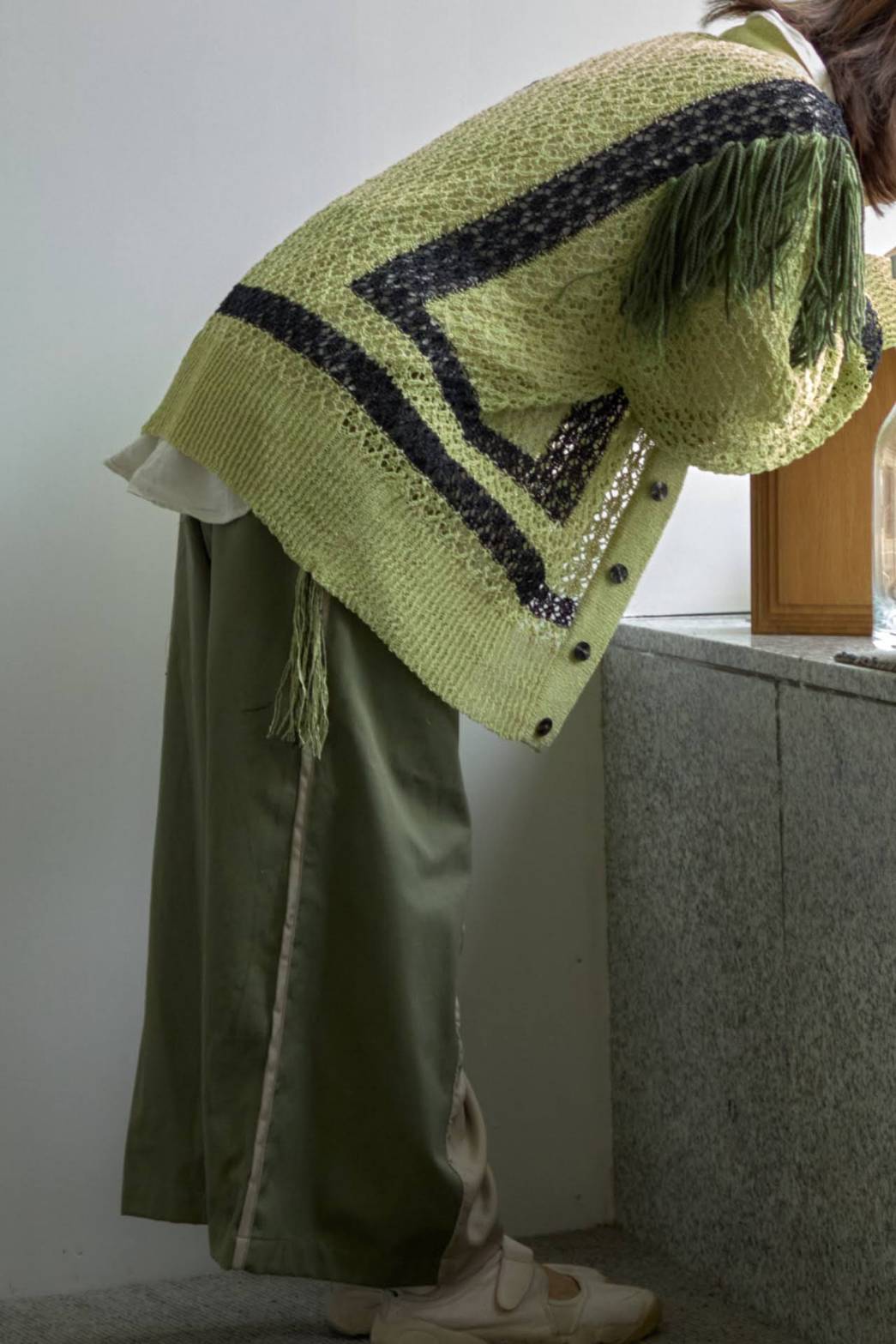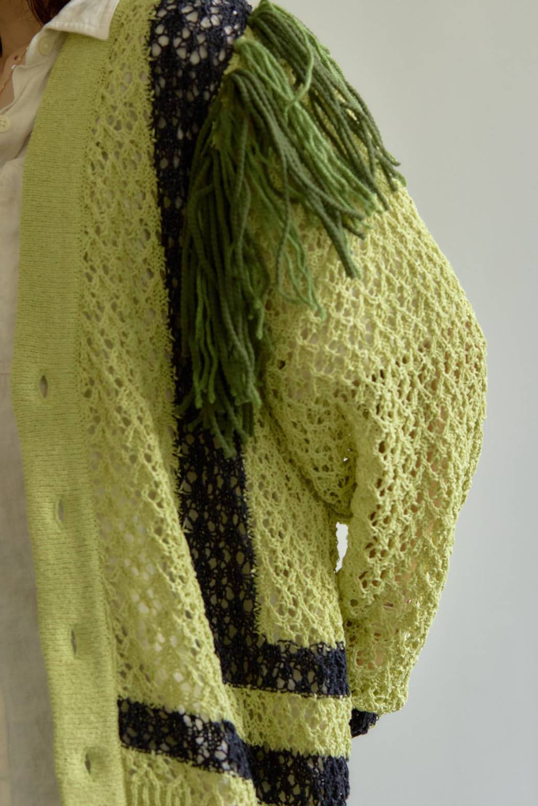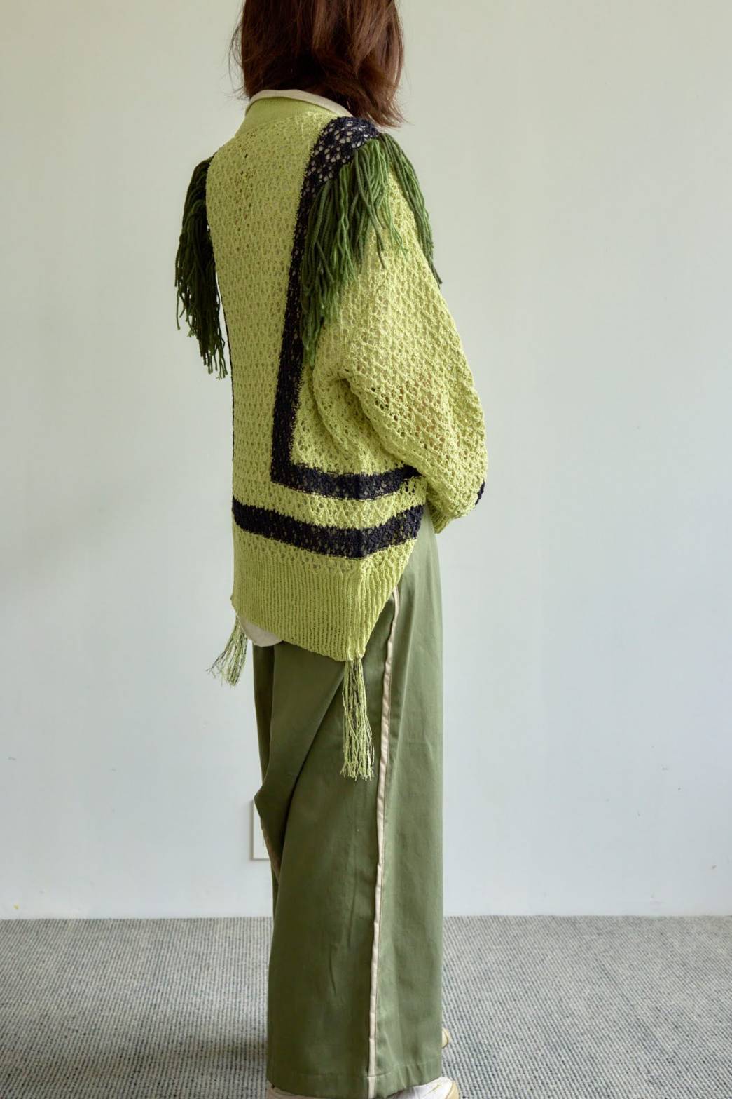 柔らかな和紙混の糸を贅沢に使用した、ハイクオリティなニットカーディガンです。ドライタッチで肌触りが心地良く、季節の変わり目にぴったりの一枚です。ボリューミーなフリンジがポイントで、一枚で着るだけでおしゃれ度がグッとUPします。