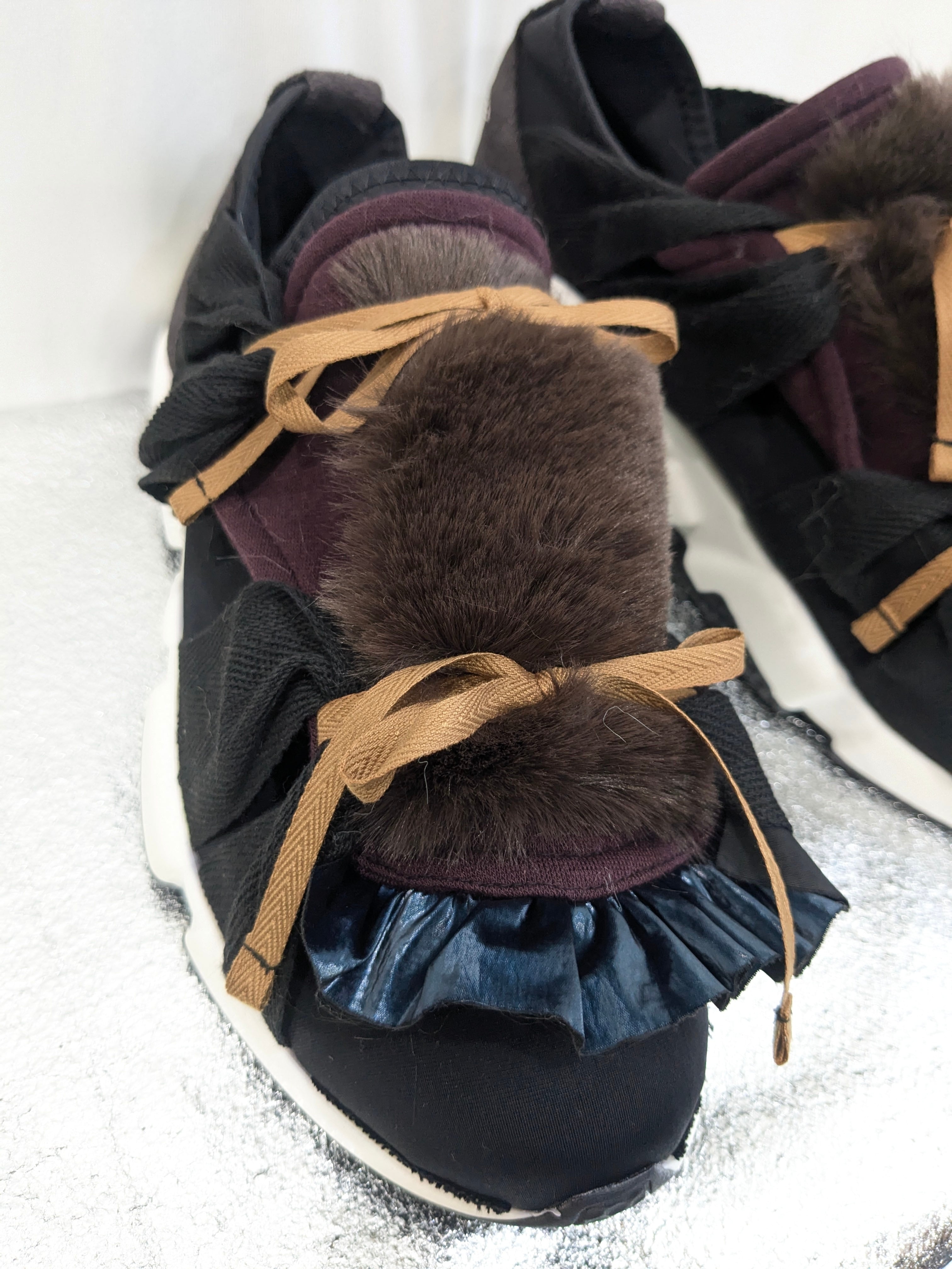 取り外し可能のファーパーツが付いたボリューミーな可愛らしさ満点のスニーカー。