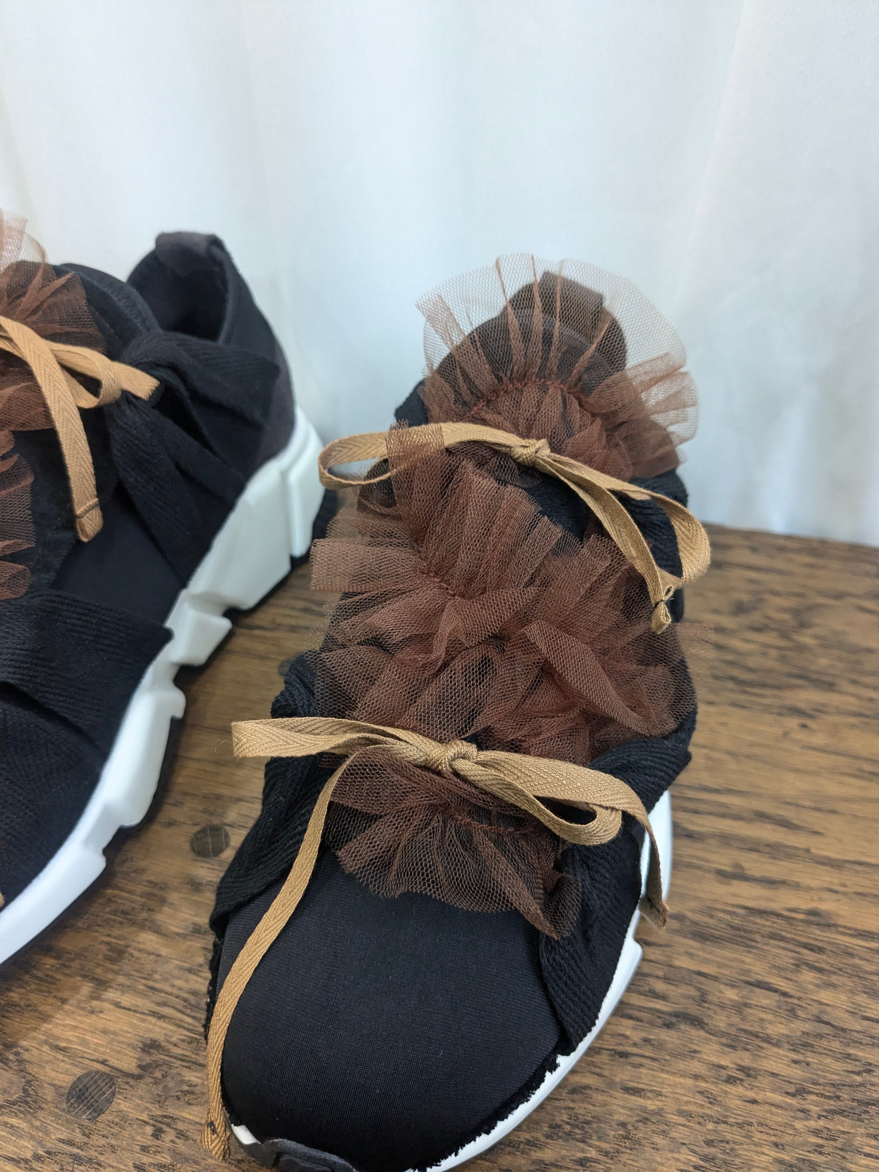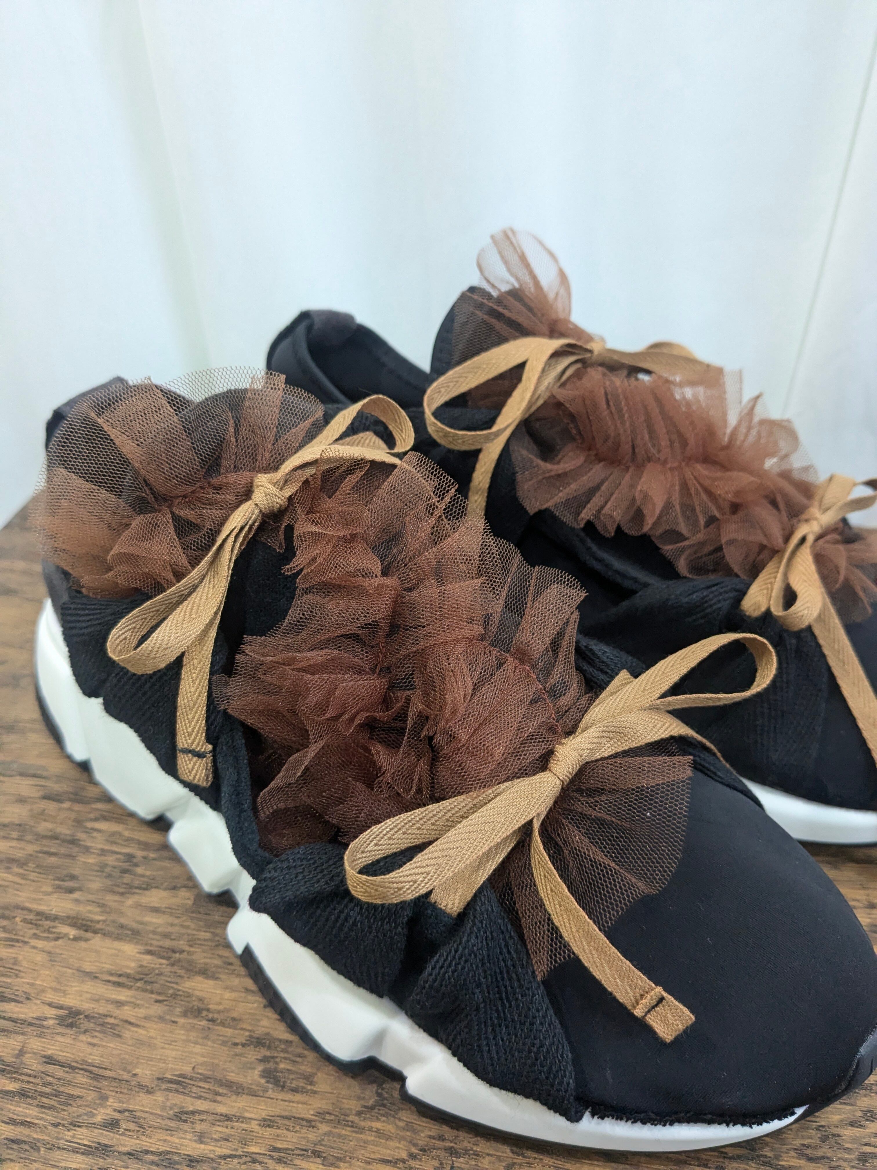 WAKEARIチュールモチーフスニーカー BRN【リハーズオール】tulle motif sneakers【RehersalL】