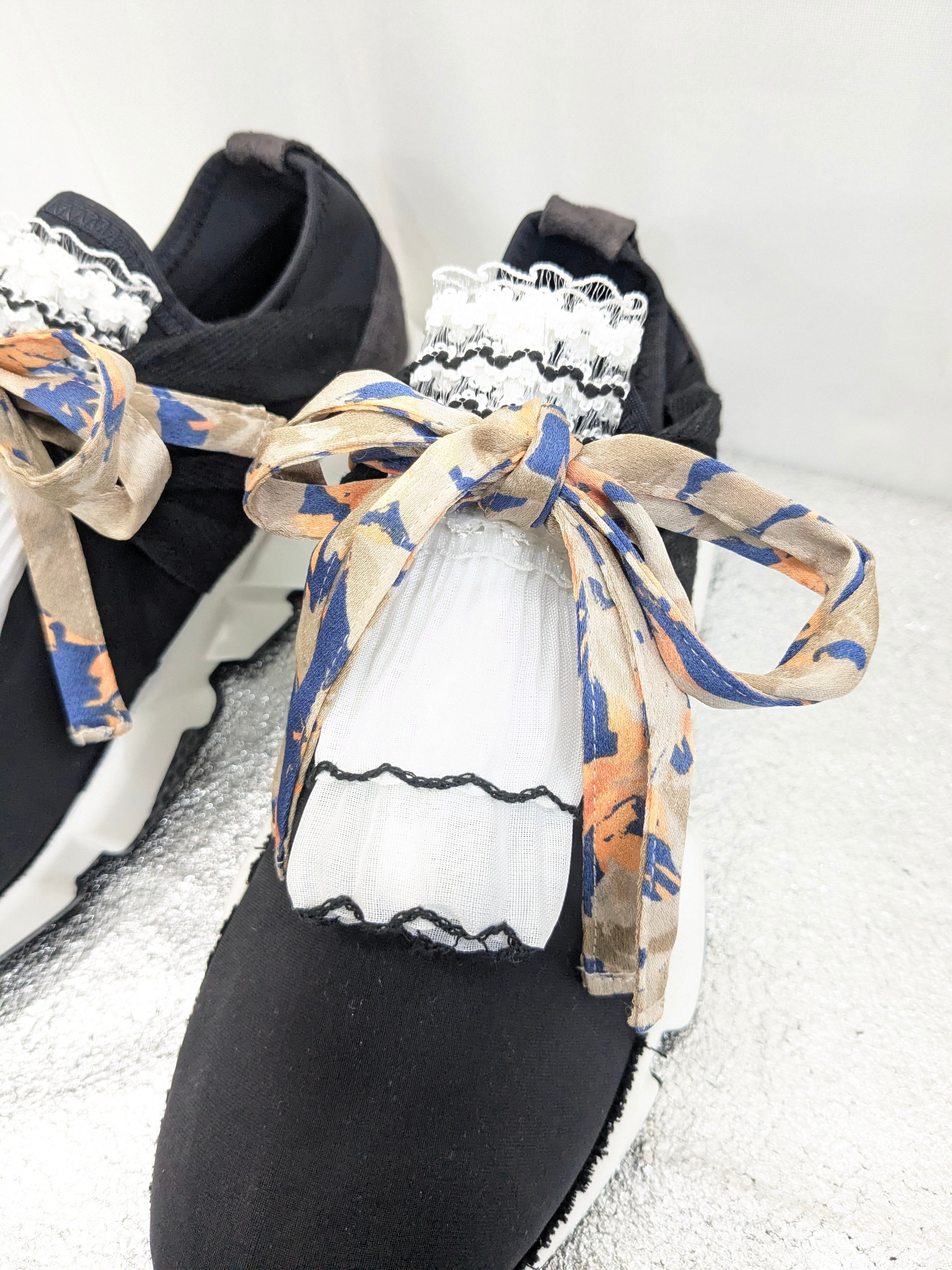 お手入れの際は、フリル部分を取り外して揉み洗い、スニーカー部分はお持ちのスニーカー同様洗っていただいて問題ありません!