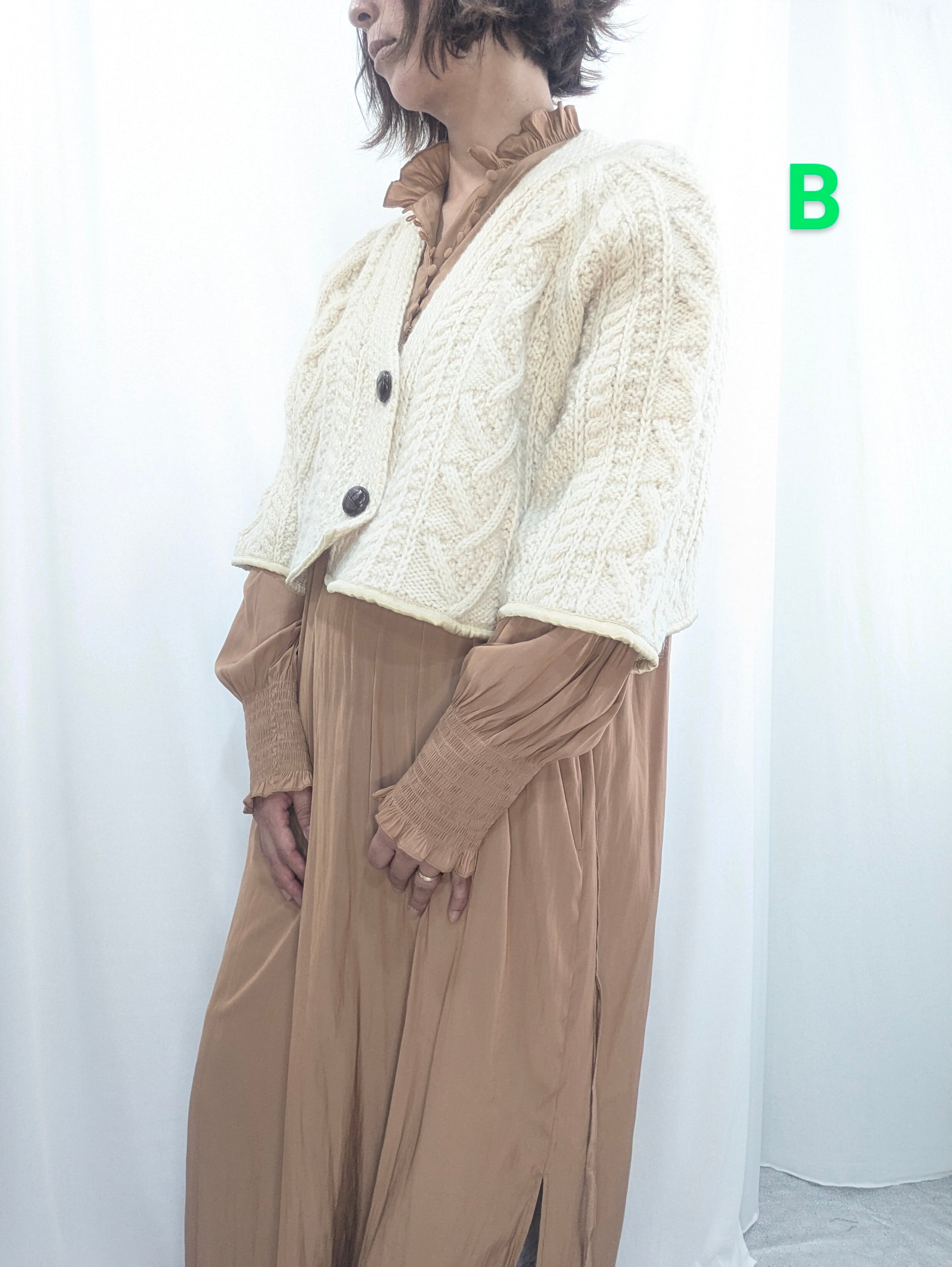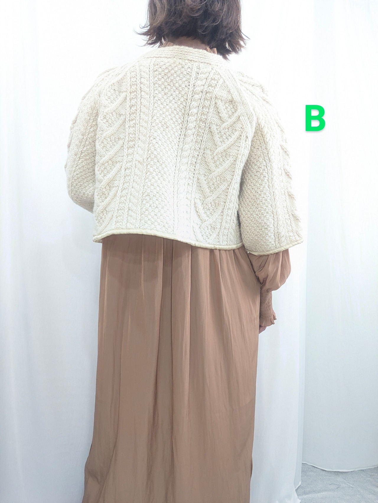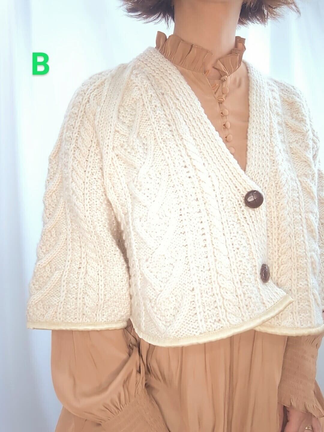 »デザインーフィッシャーマンズセーターの原型ともいわれている独特の編み柄である「アラン模様」のセーターをボレロ丈にリカスタムしたニットです。