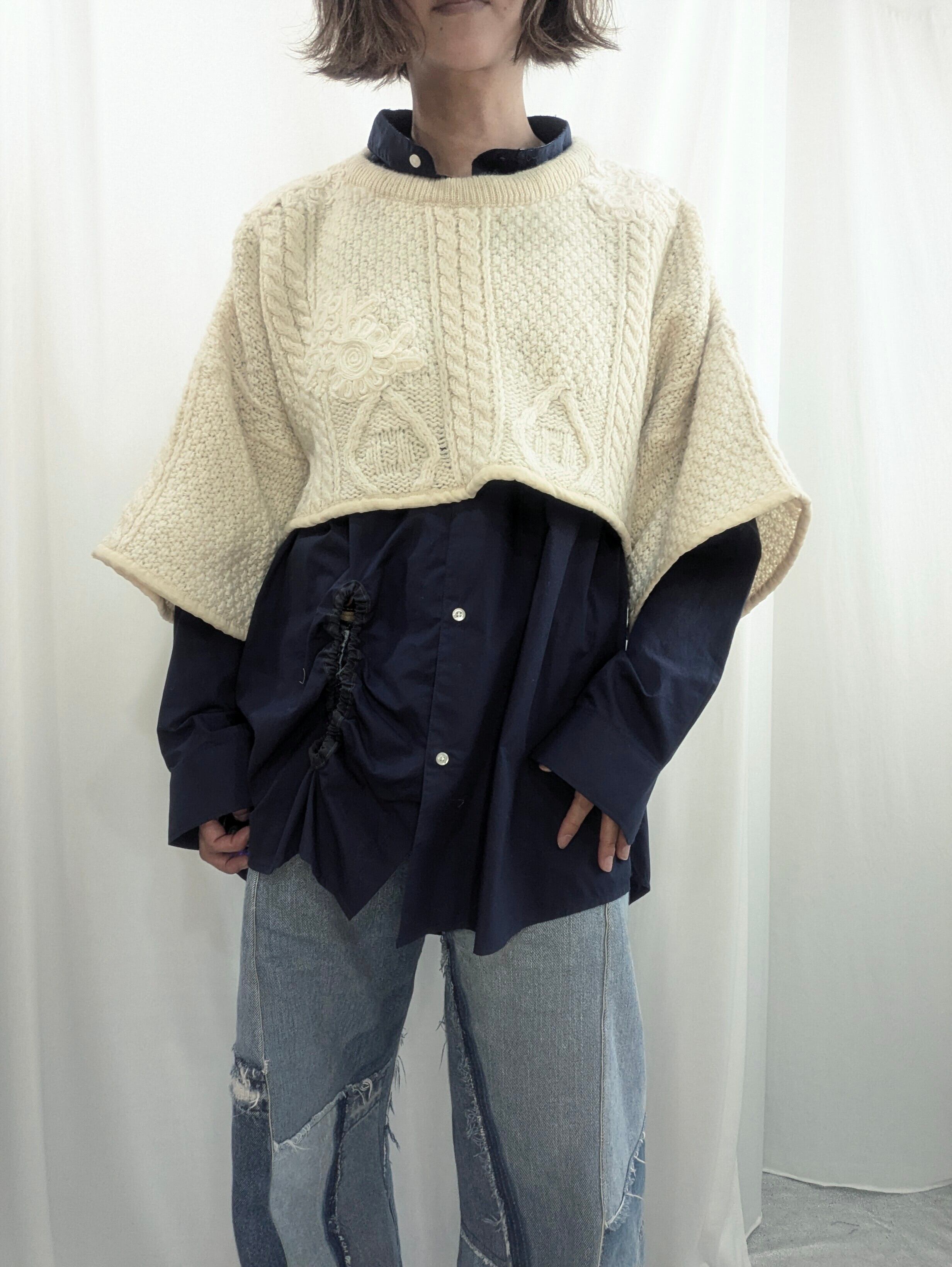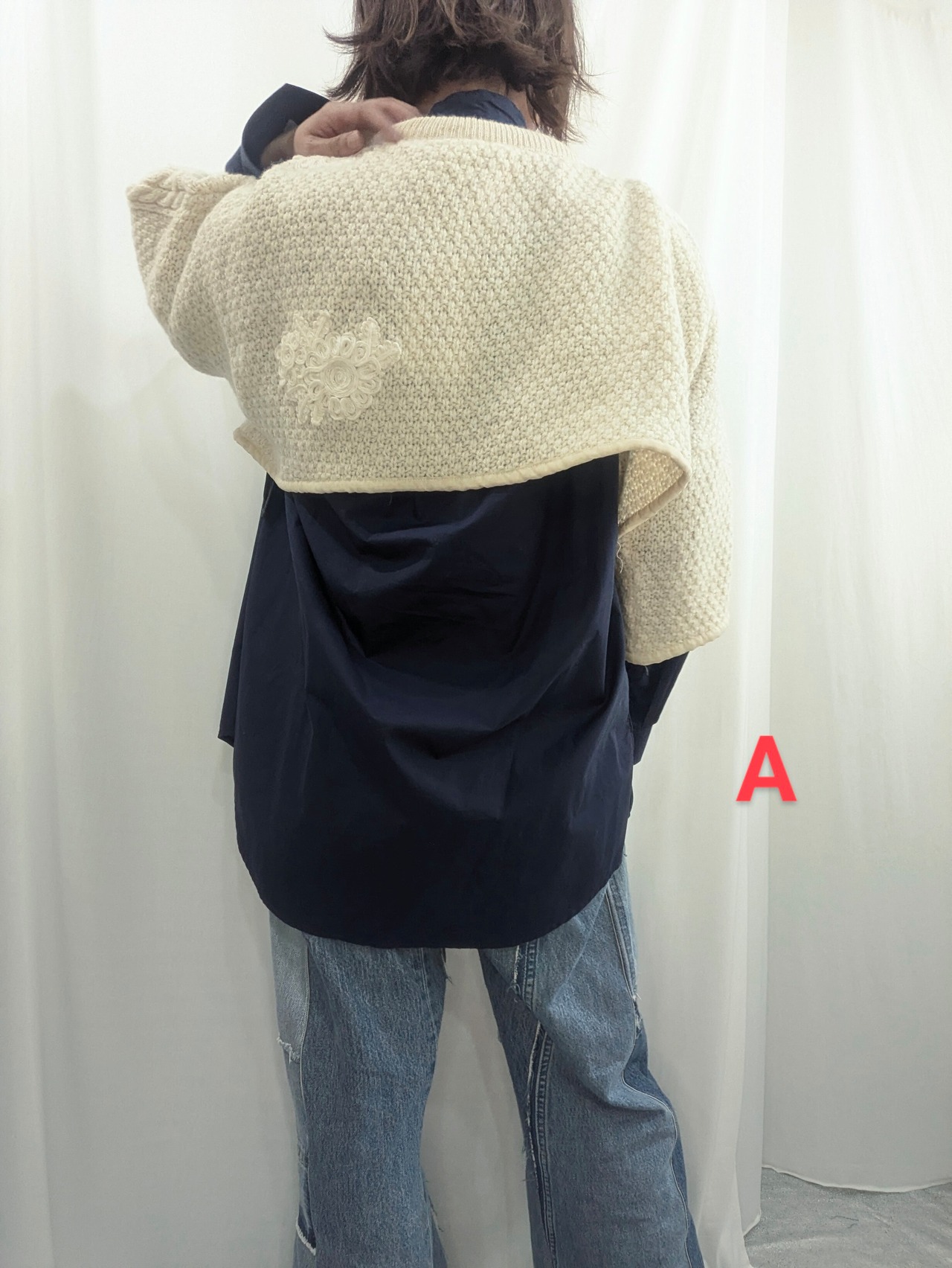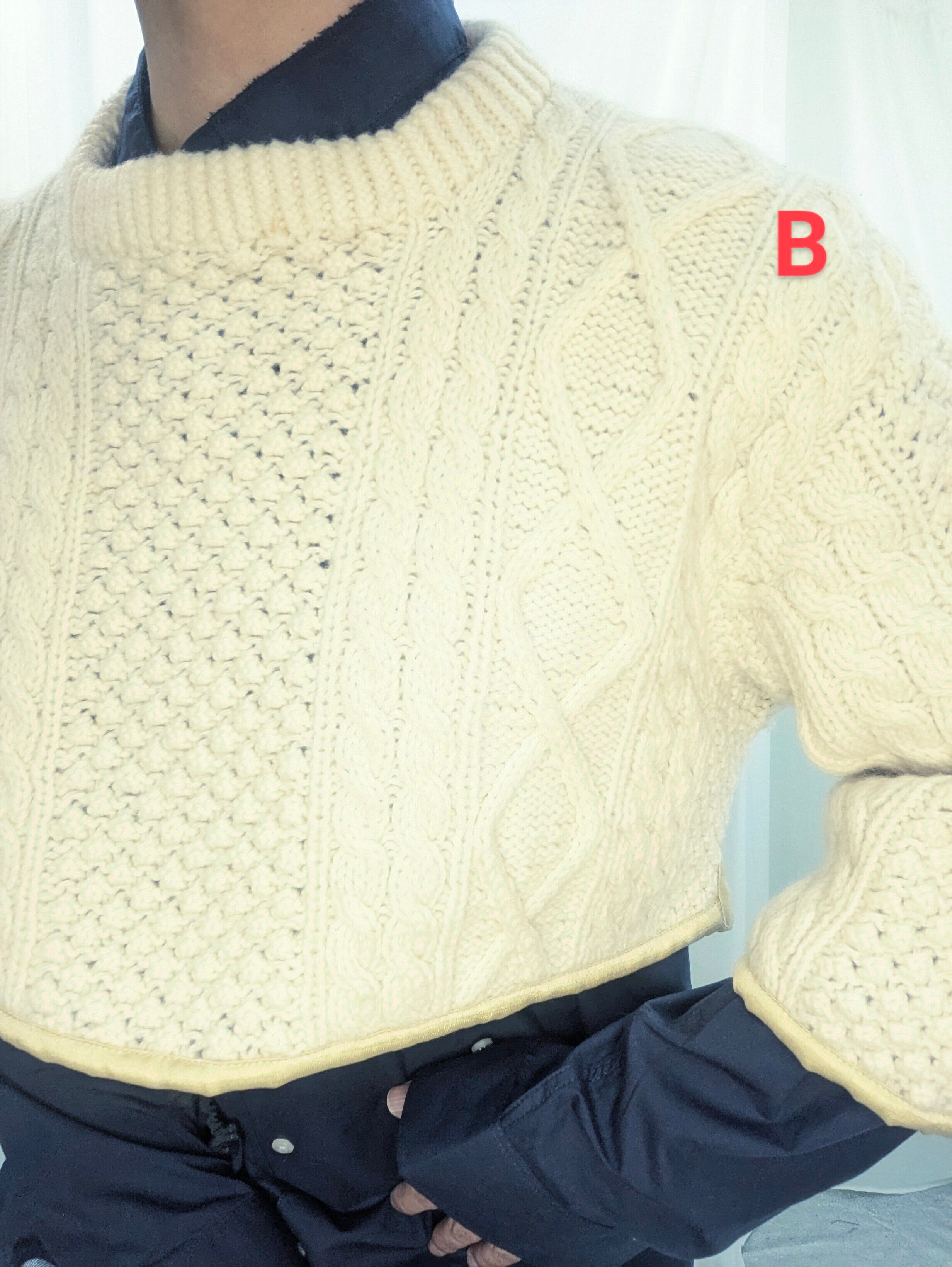 »デザインーフィッシャーマンズセーターの原型ともいわれている独特の編み柄である「アラン模様」のセーターをボレロ丈にリカスタムしたニットです。