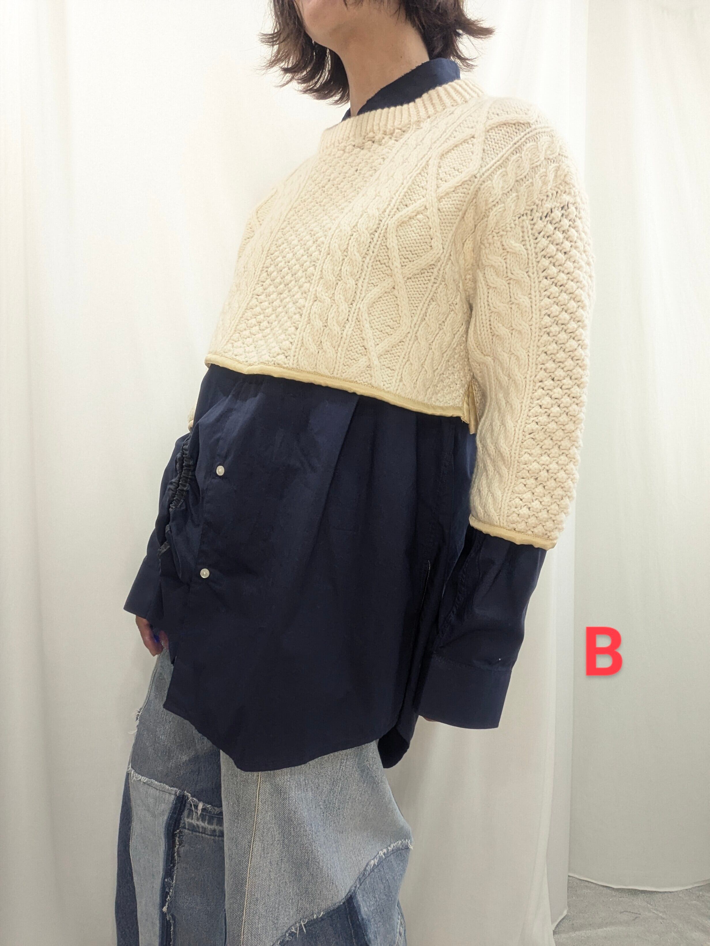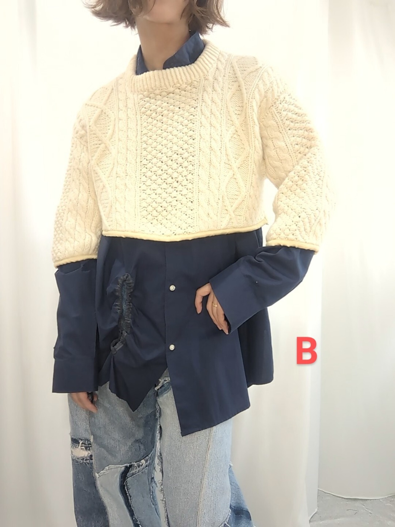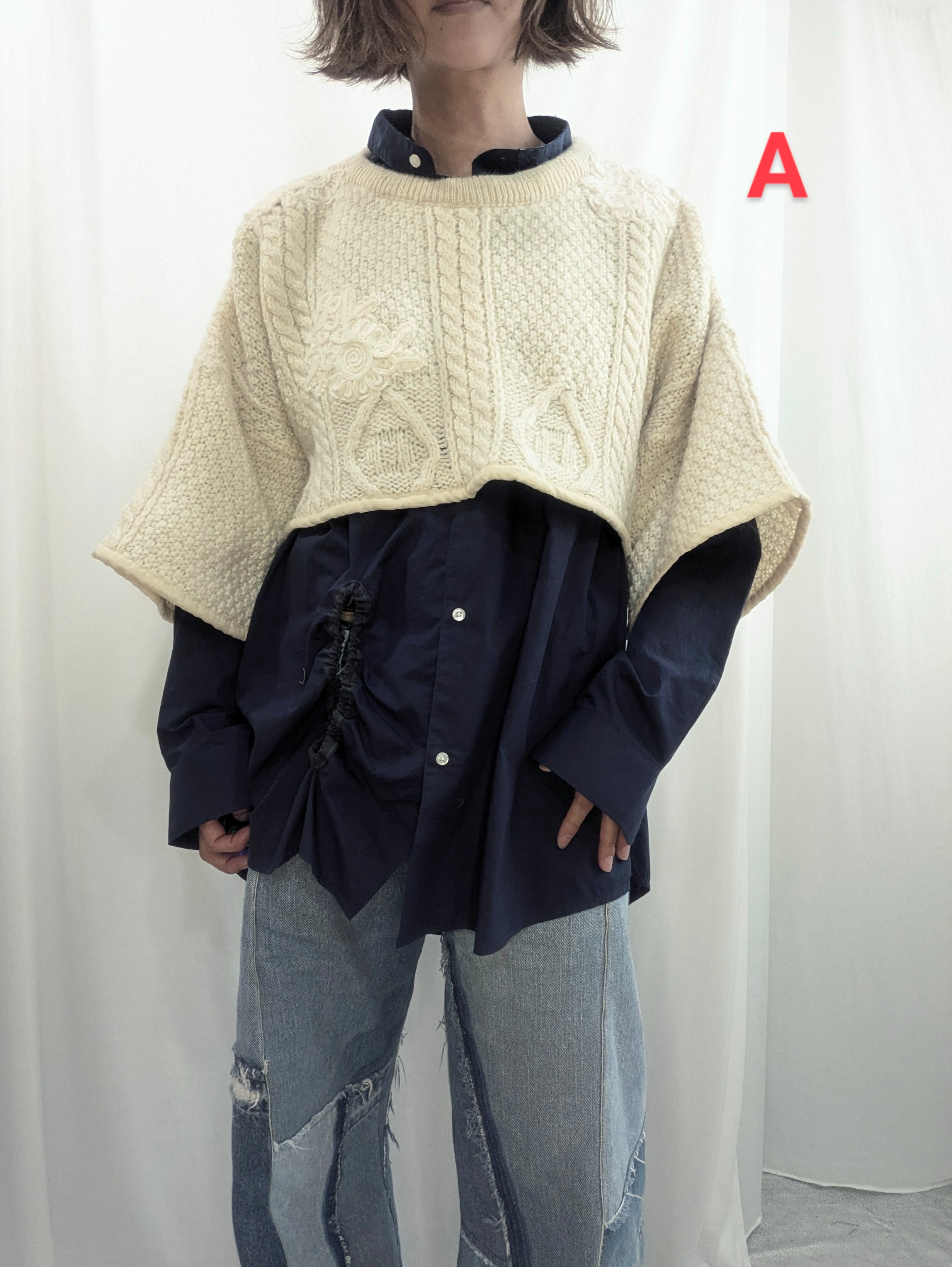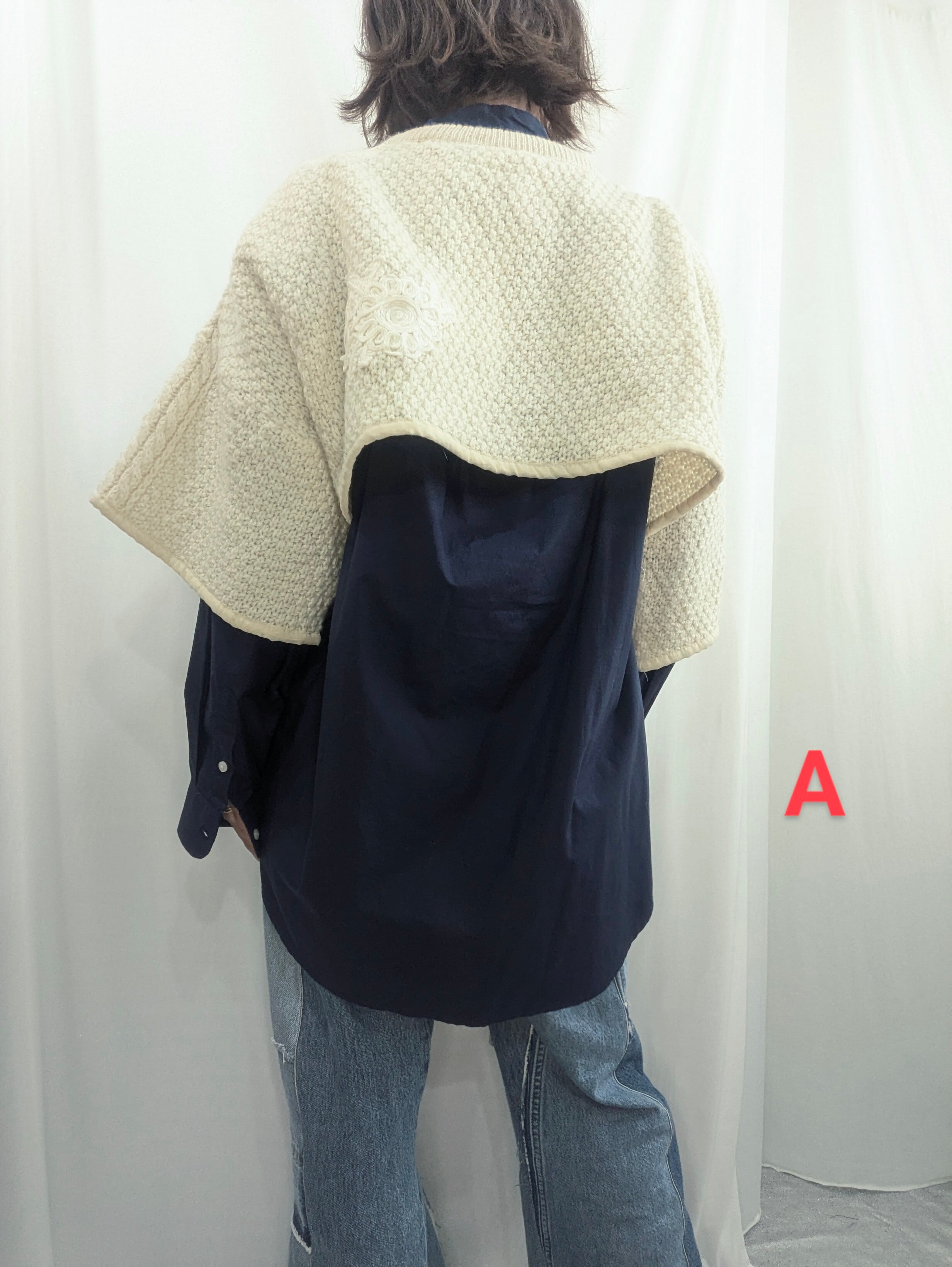 »デザインーフィッシャーマンズセーターの原型ともいわれている独特の編み柄である「アラン模様」のセーターをボレロ丈にリカスタムしたニットです。