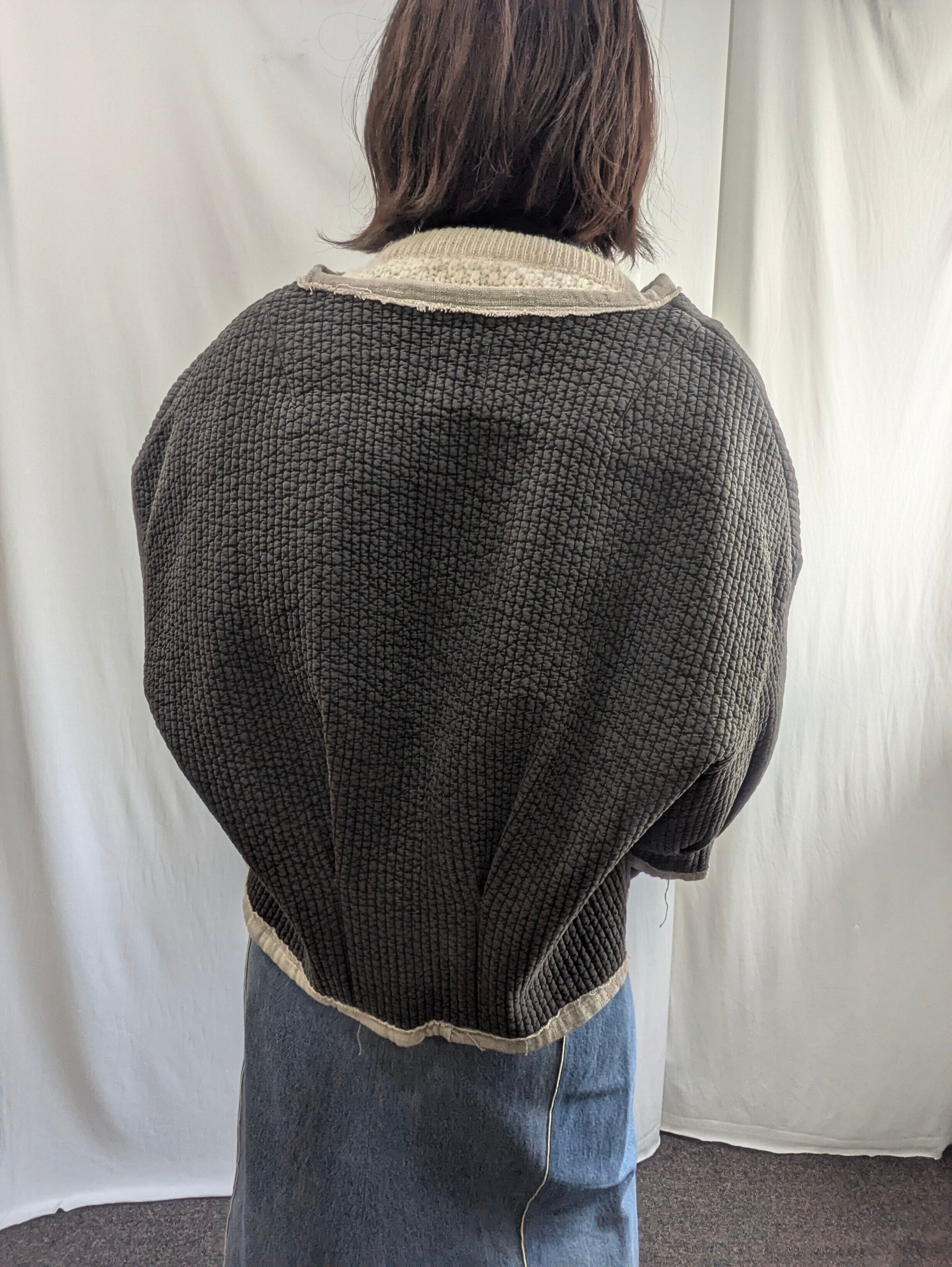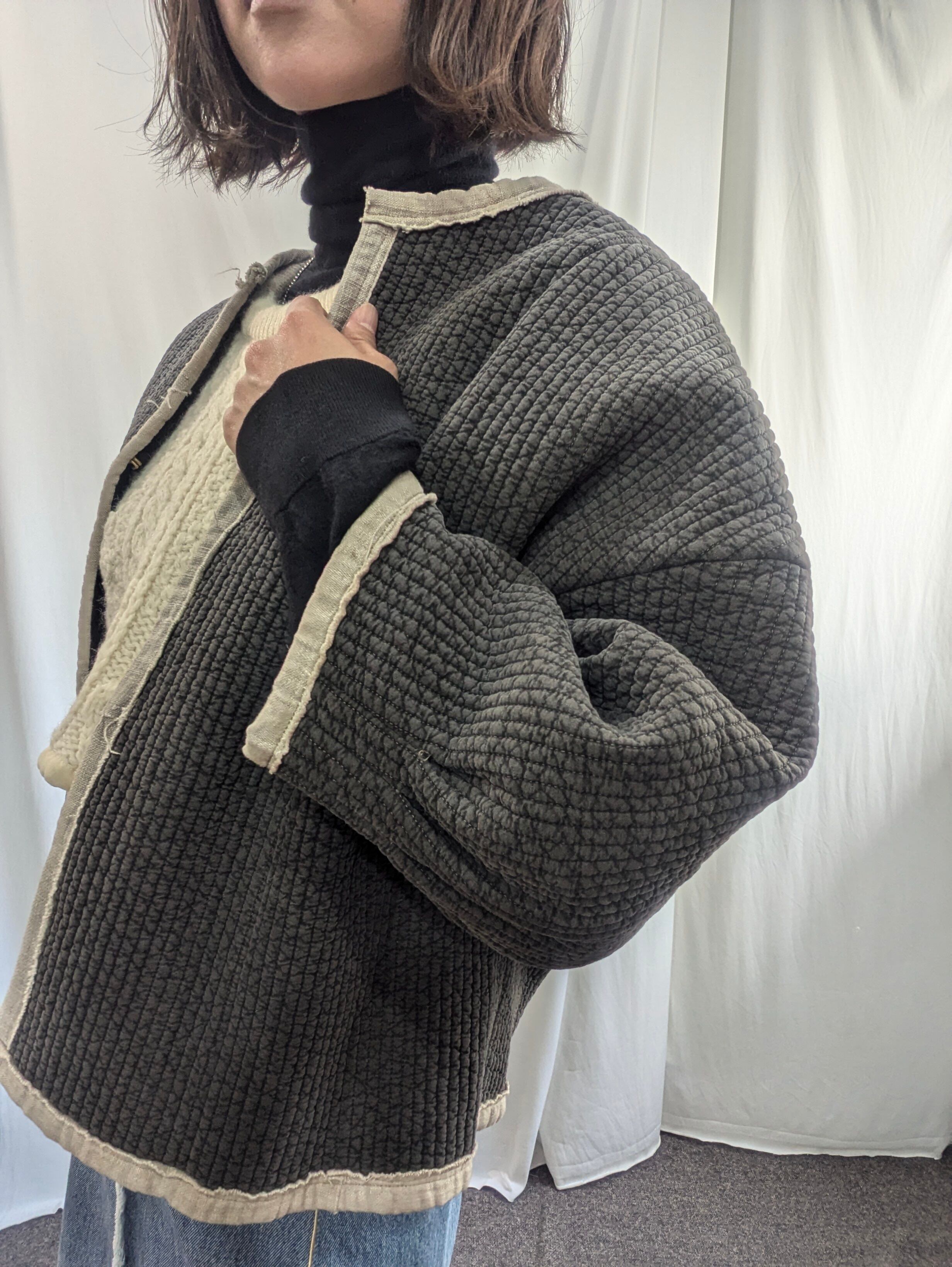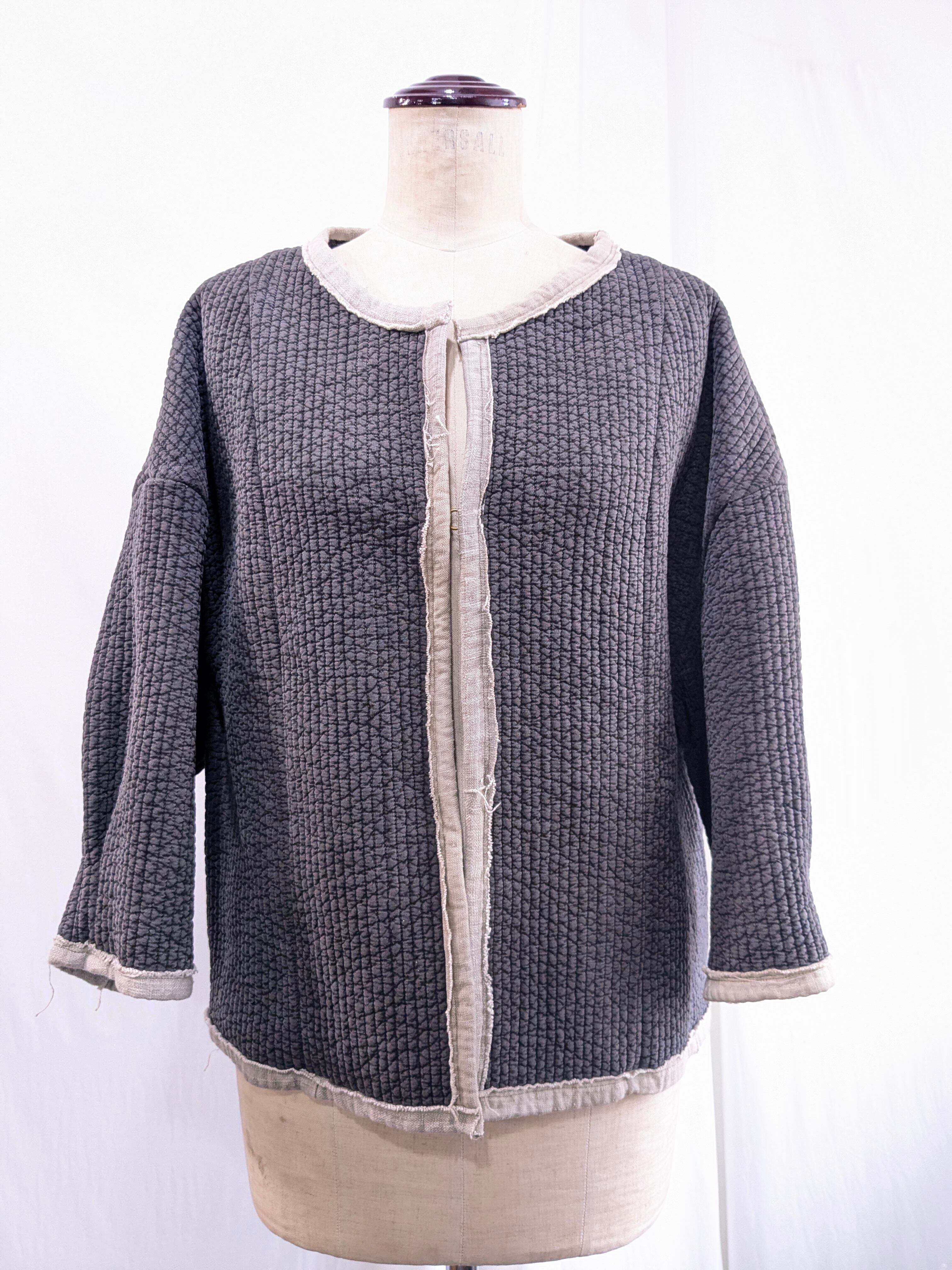 »デザインー薄〜い綿が挟まれた生地に縦ラインのステッチが施されたイブル生地のジャケットです。