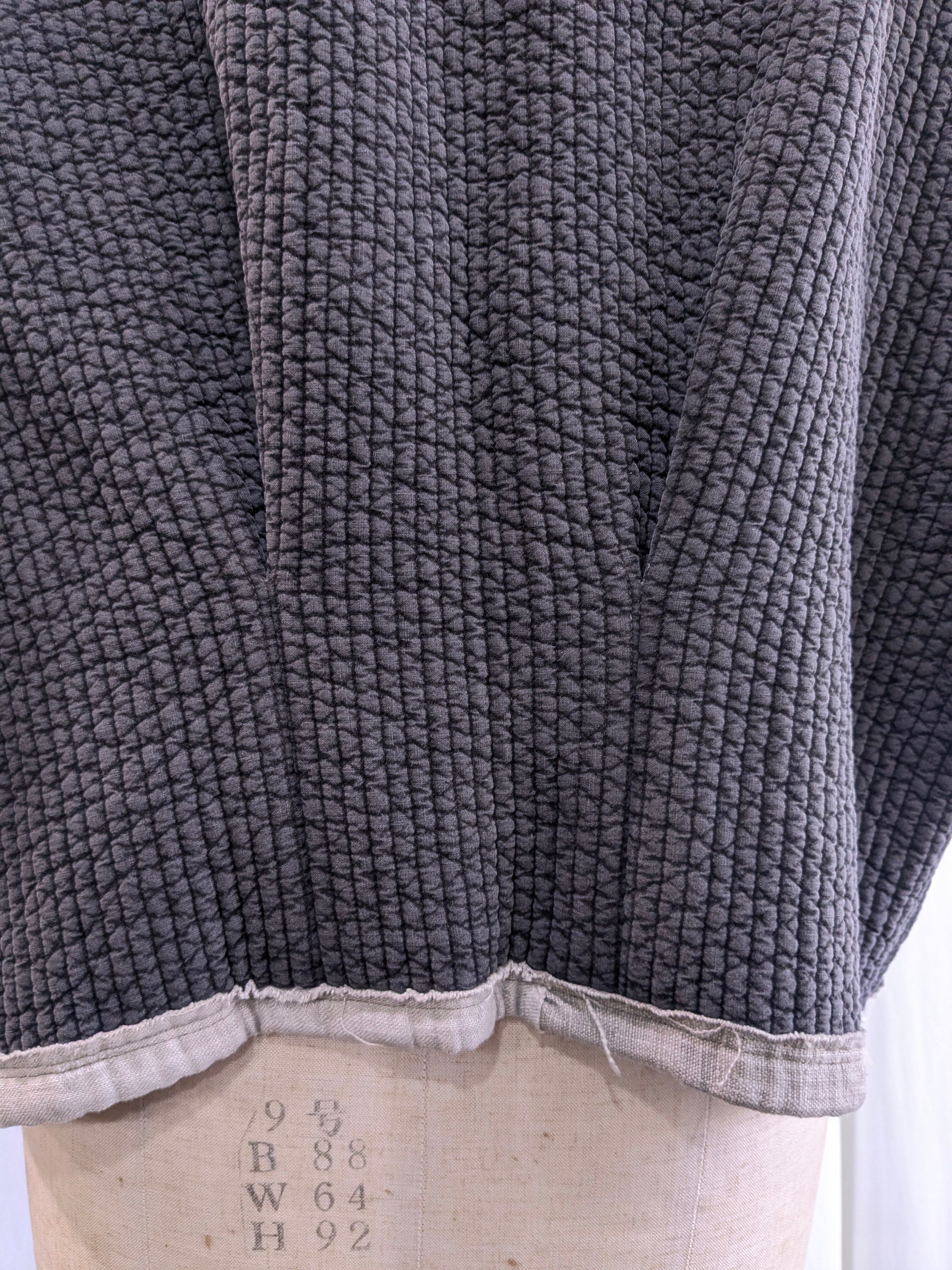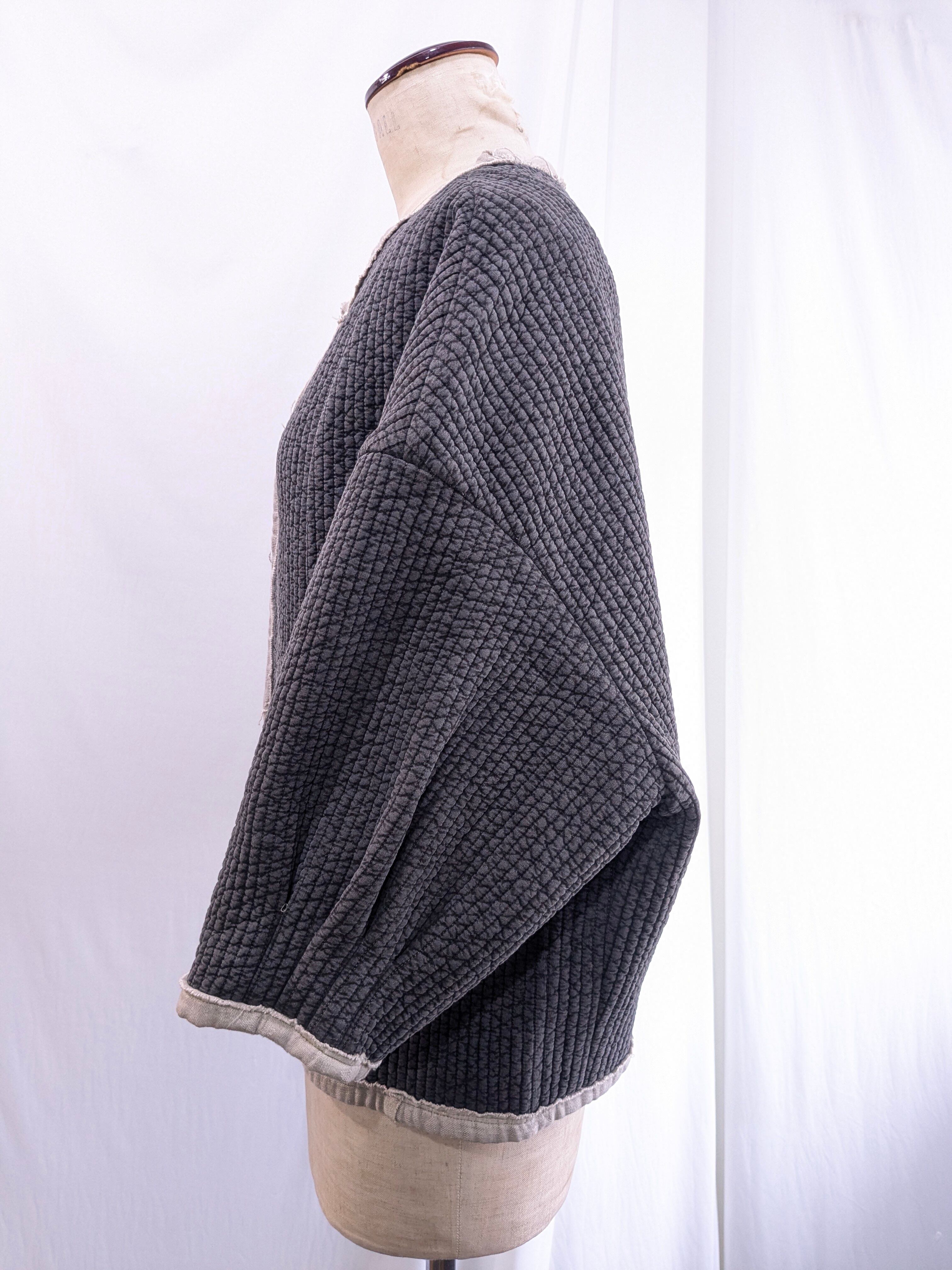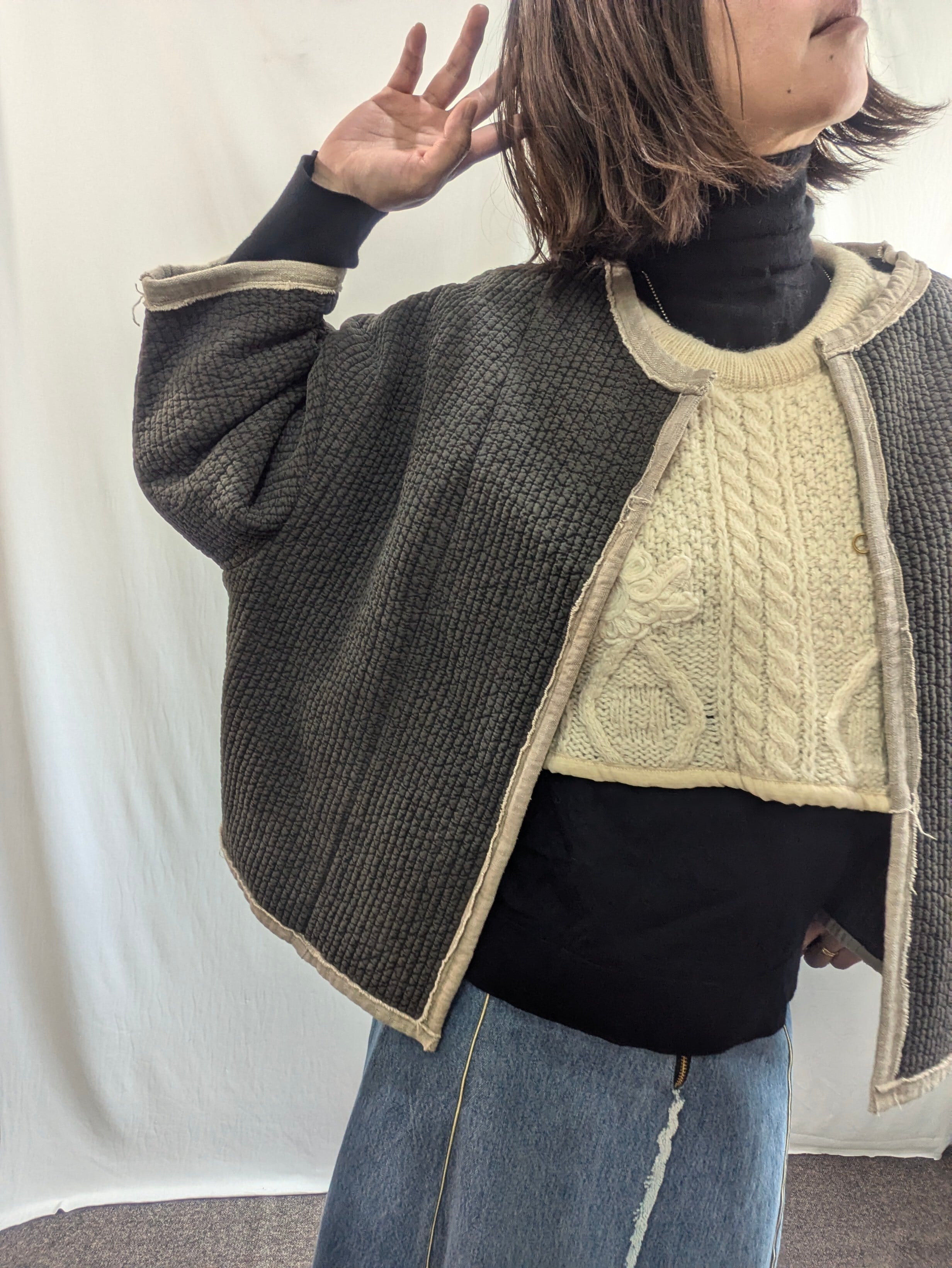 »デザインー薄〜い綿が挟まれた生地に縦ラインのステッチが施されたイブル生地のジャケットです。