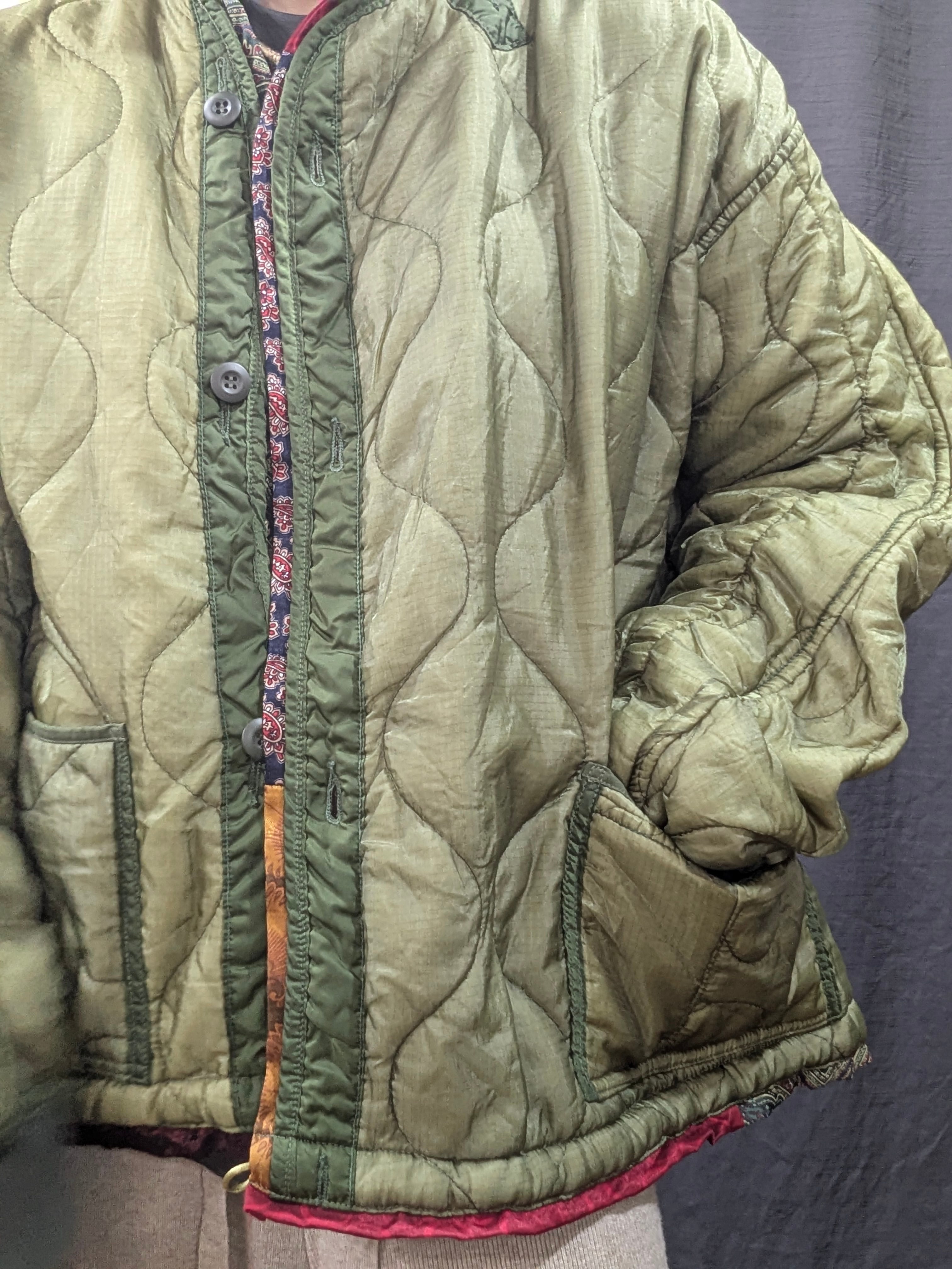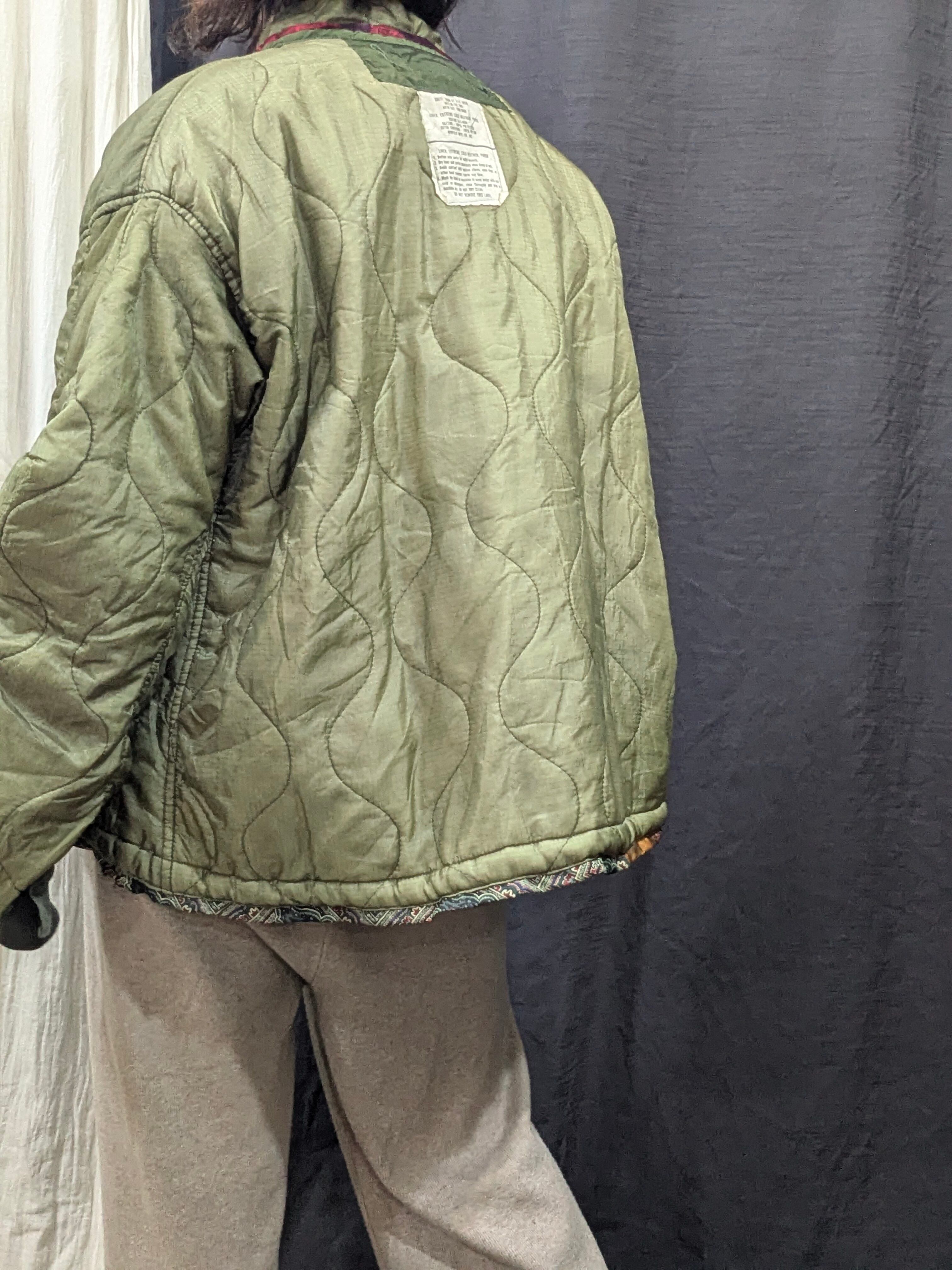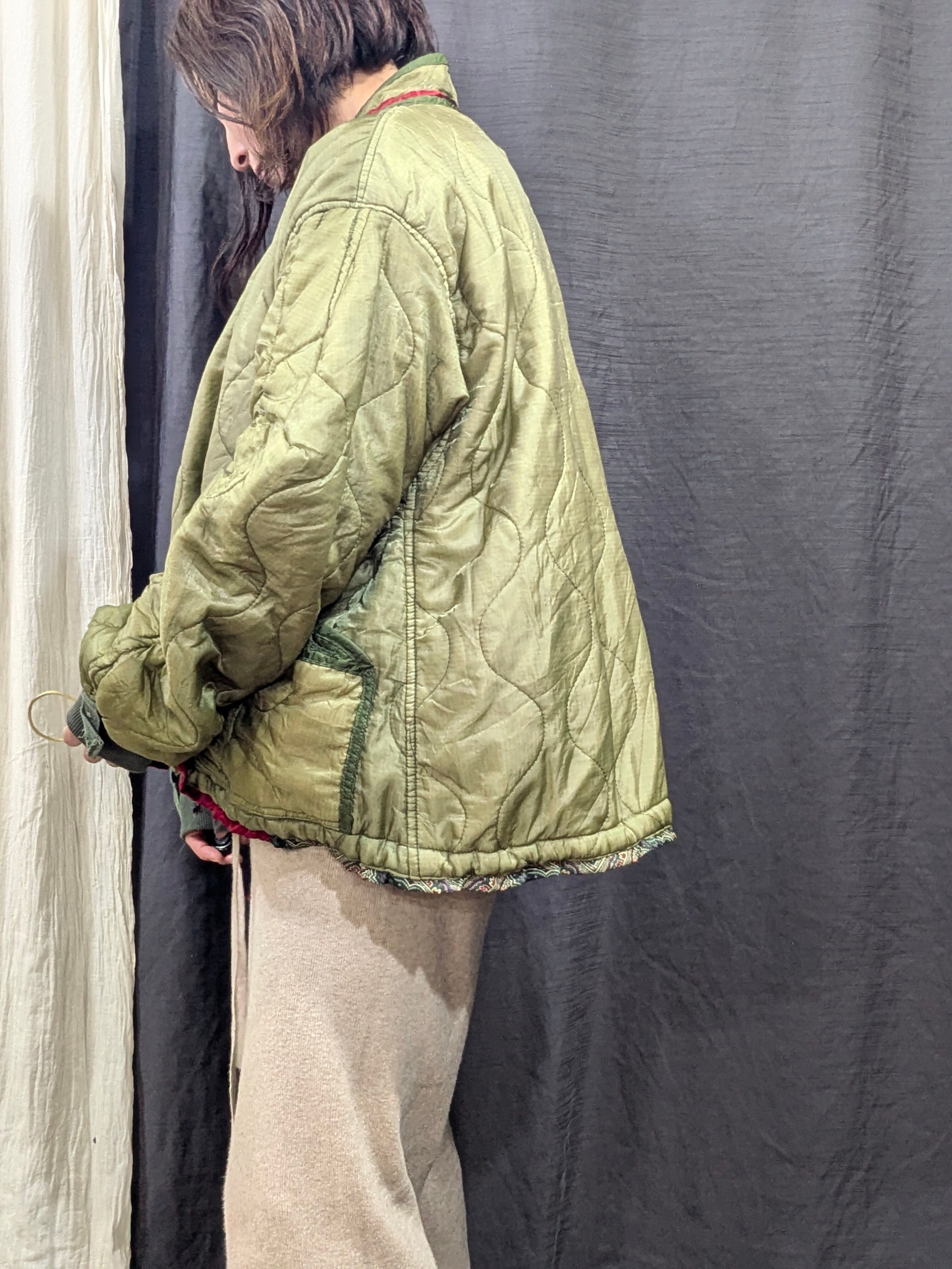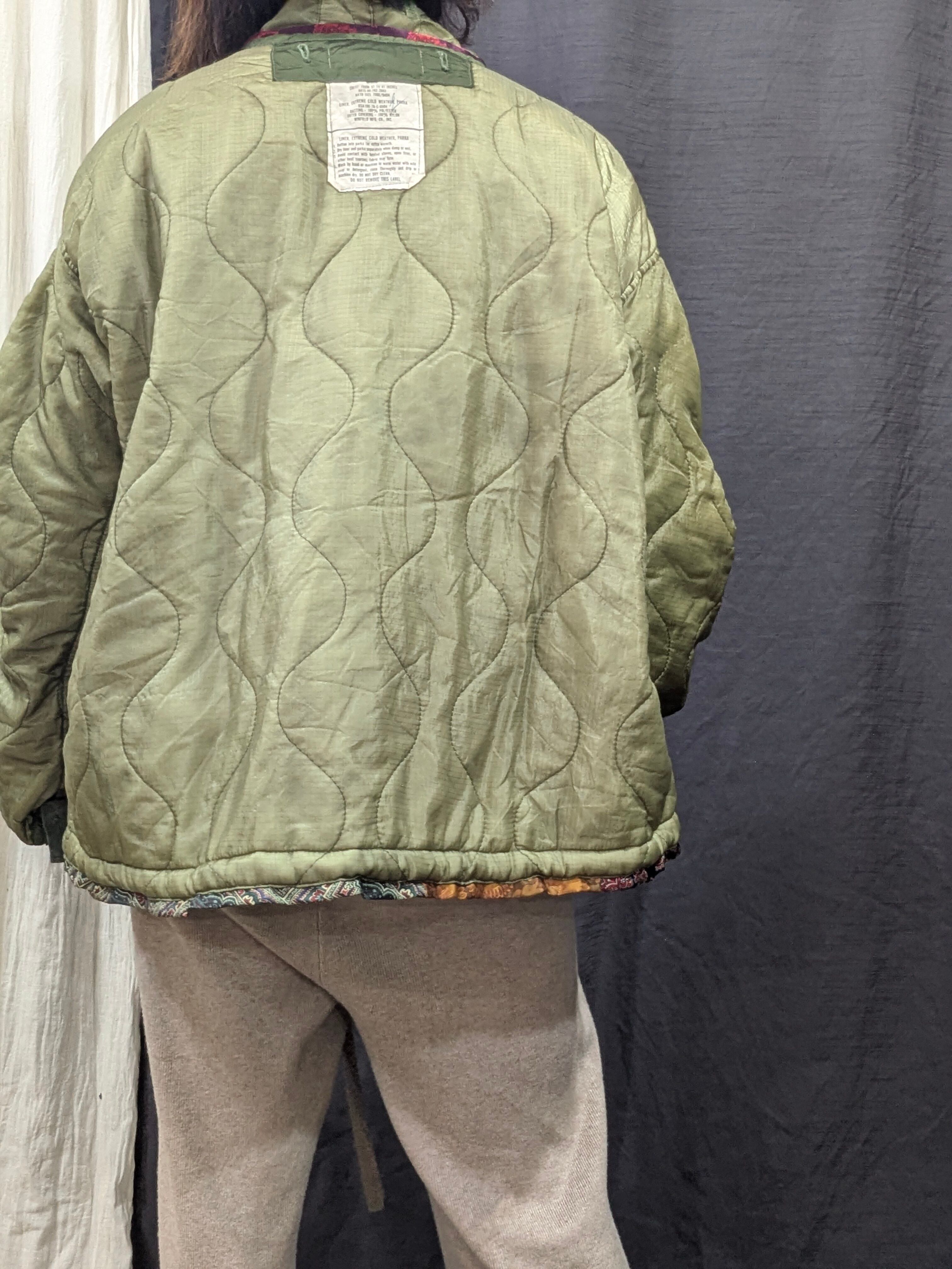 古着のライナーを1着丸っとリメイクしたジャケットです。