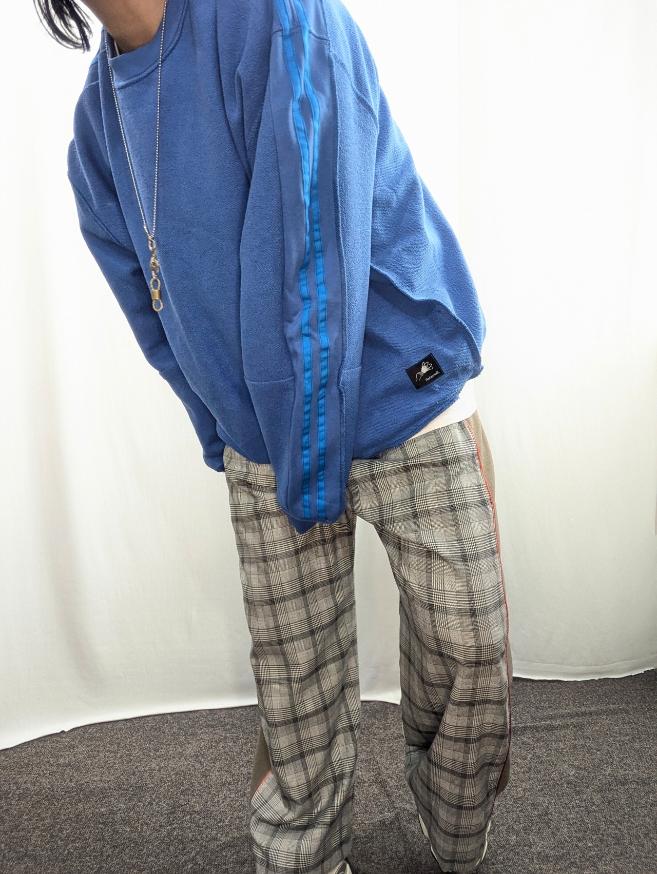 パイルラインスリーブスウェットBLU【リハーズオール】pile line sleeve sweat【rehersall】